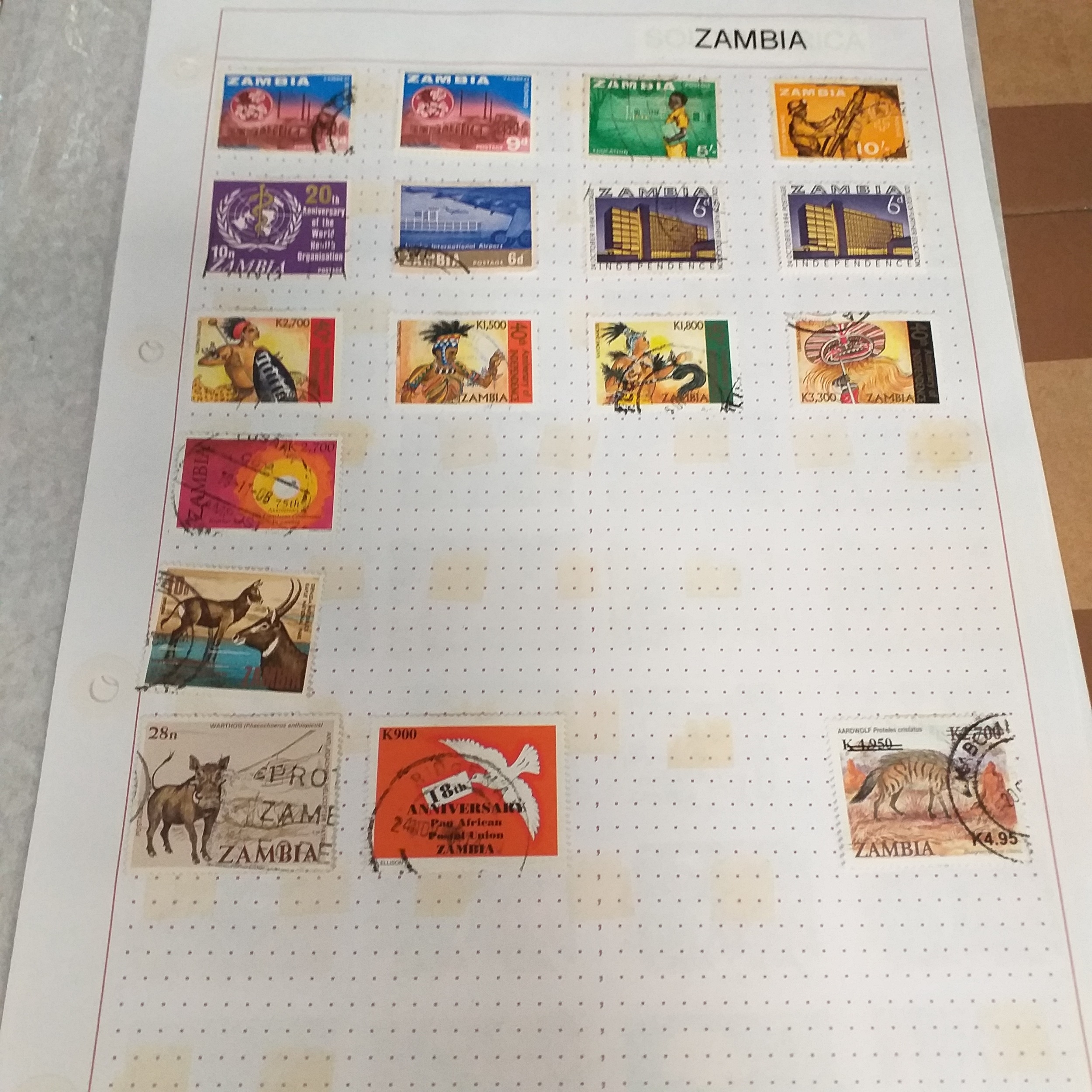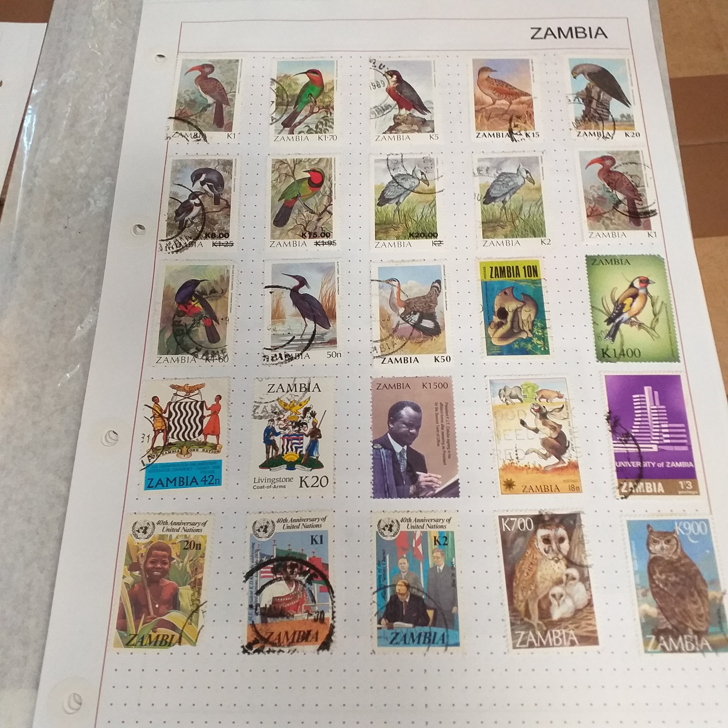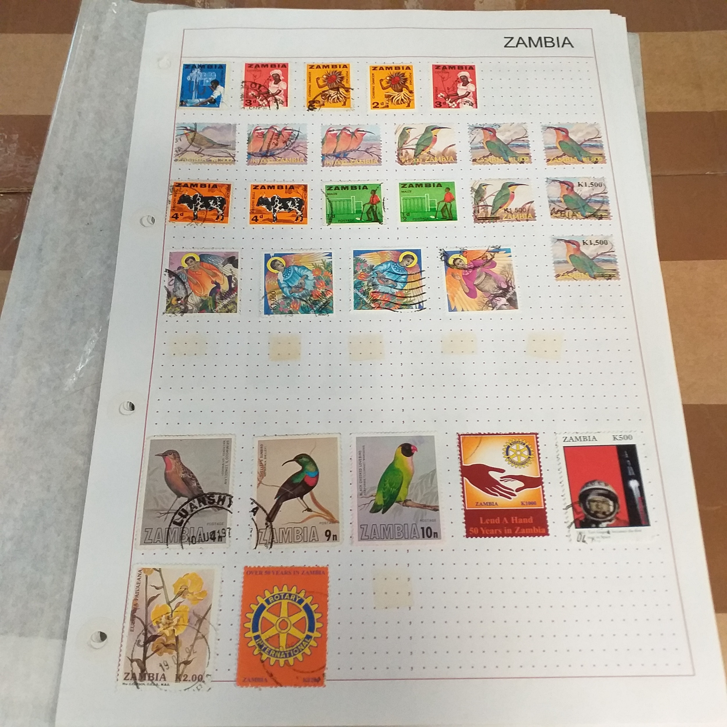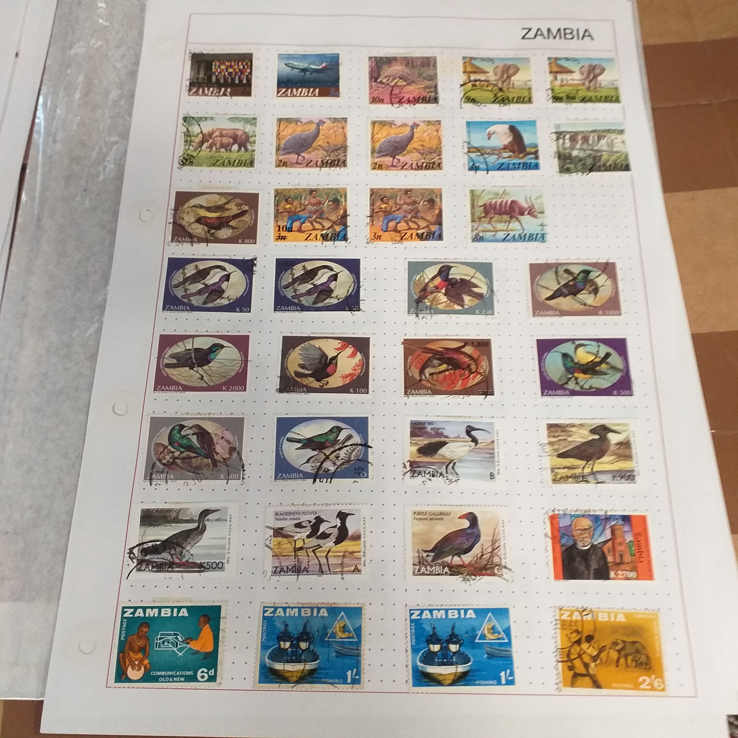 Zambia small collection on 12+ album pages / stock cards from independence to late 1990's, strong thematic interest (Birds & Animals ect)