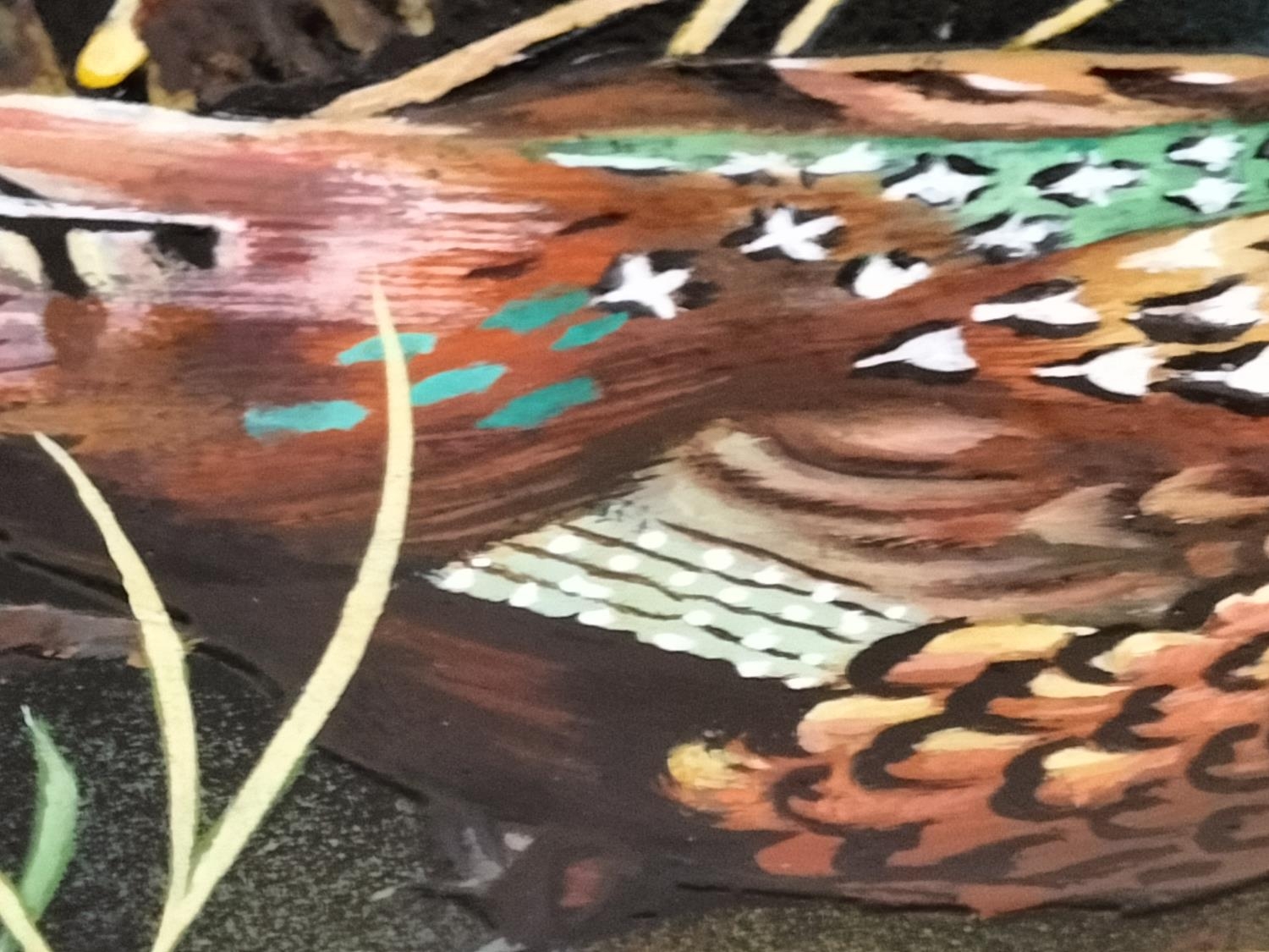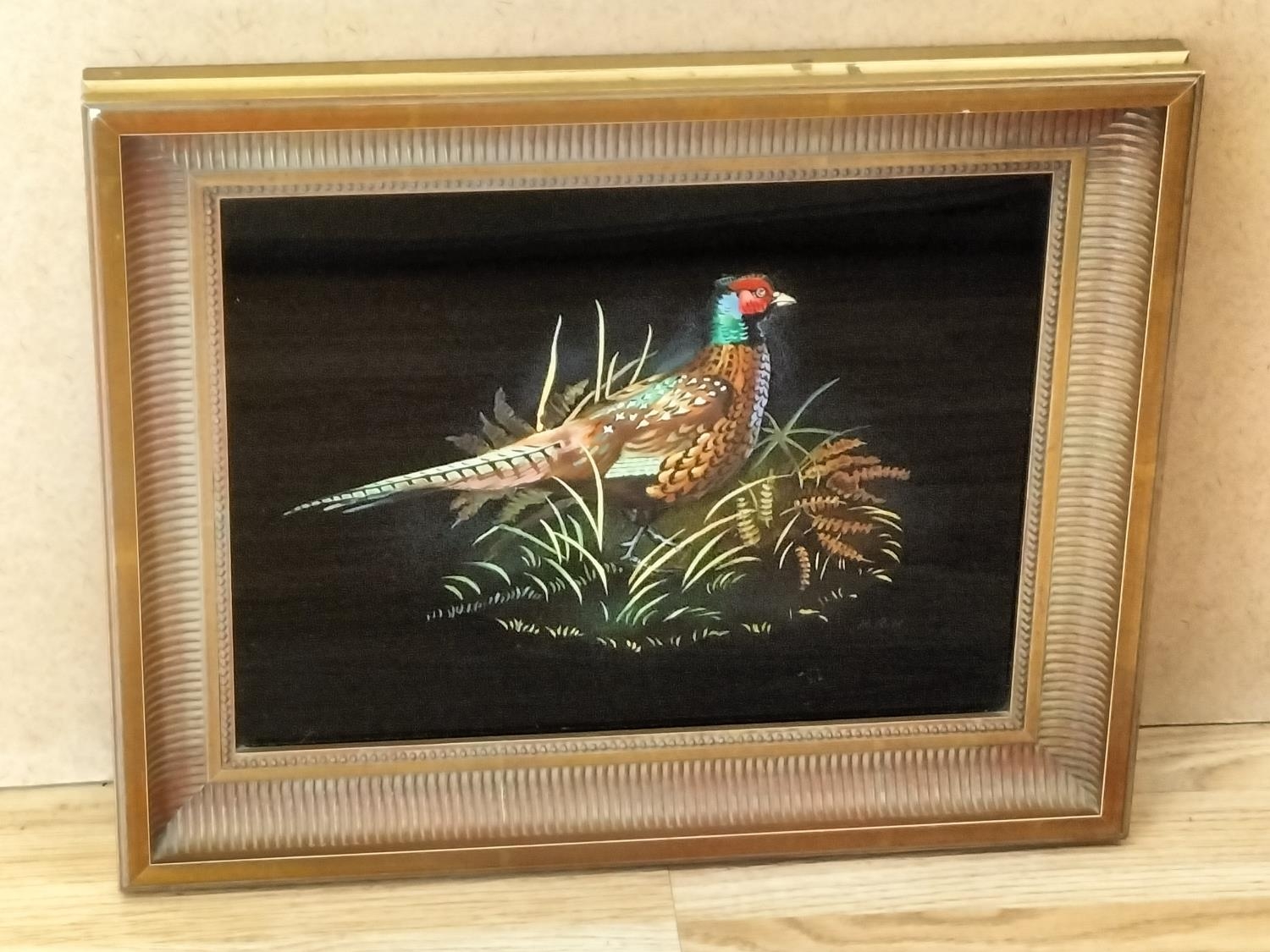 Framed Original Acrylic on Glass 'Pheasant' by H.R.Heatcote 1974. Signed and Dated to Back. 41cm x 33.5cm.