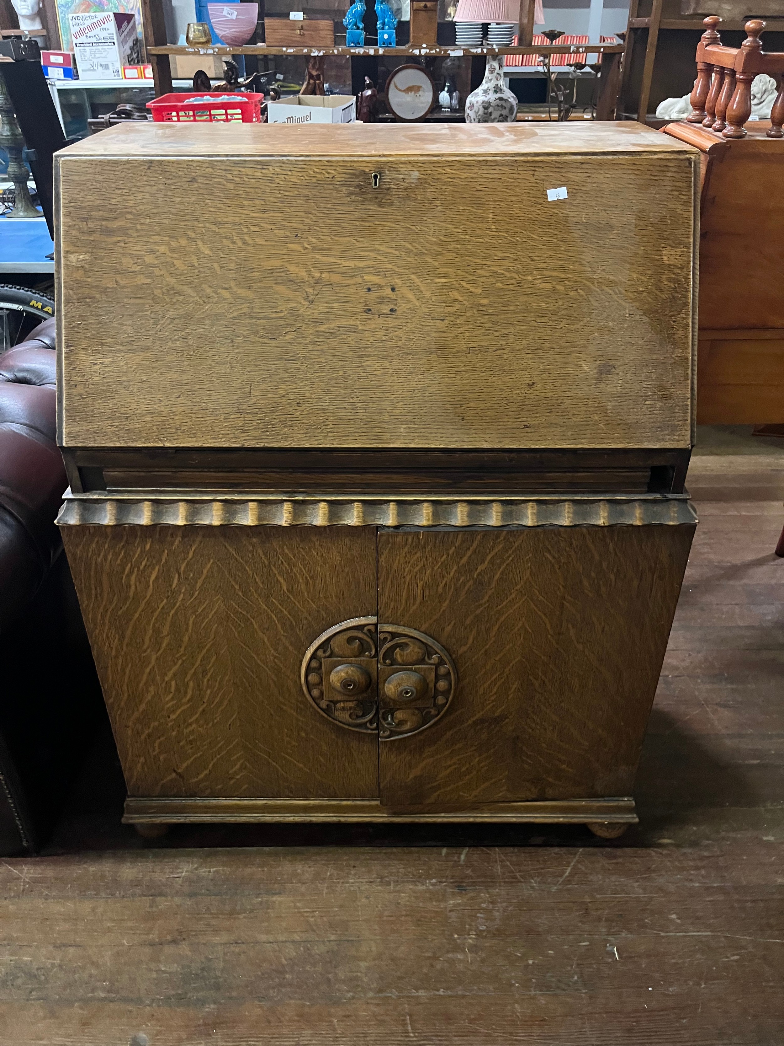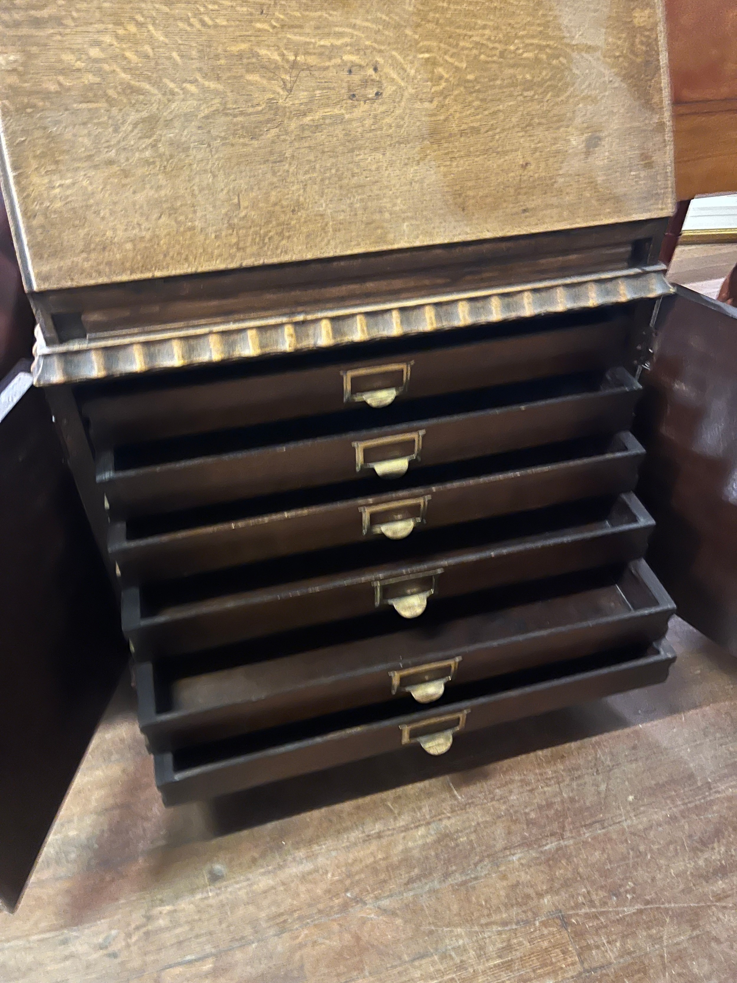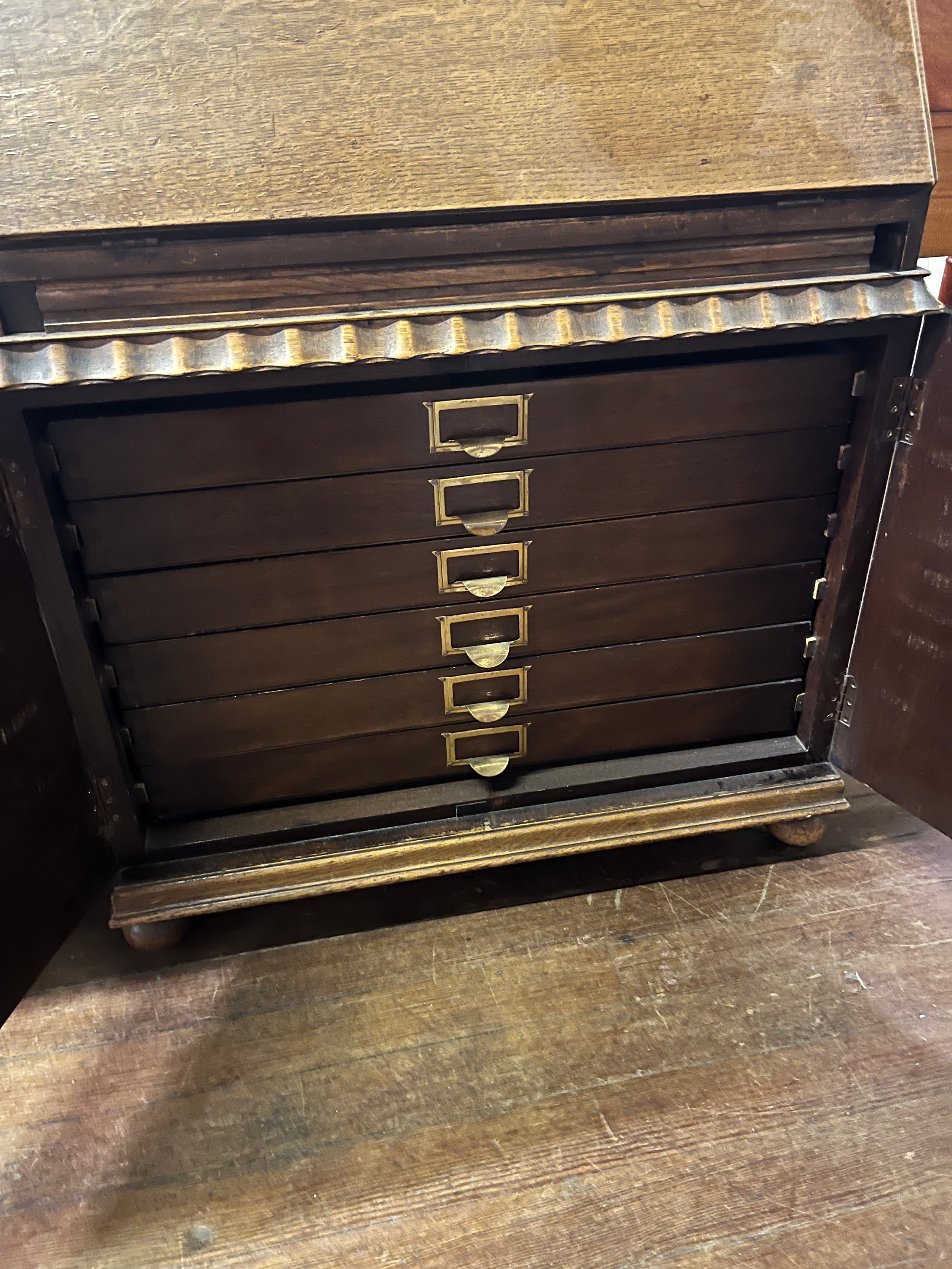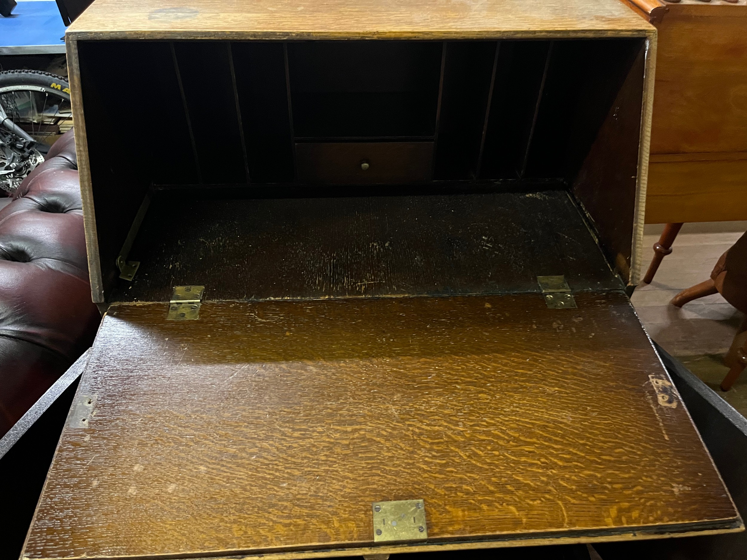 vintage oak writing bureau with 6 drawers100cm x 77cm