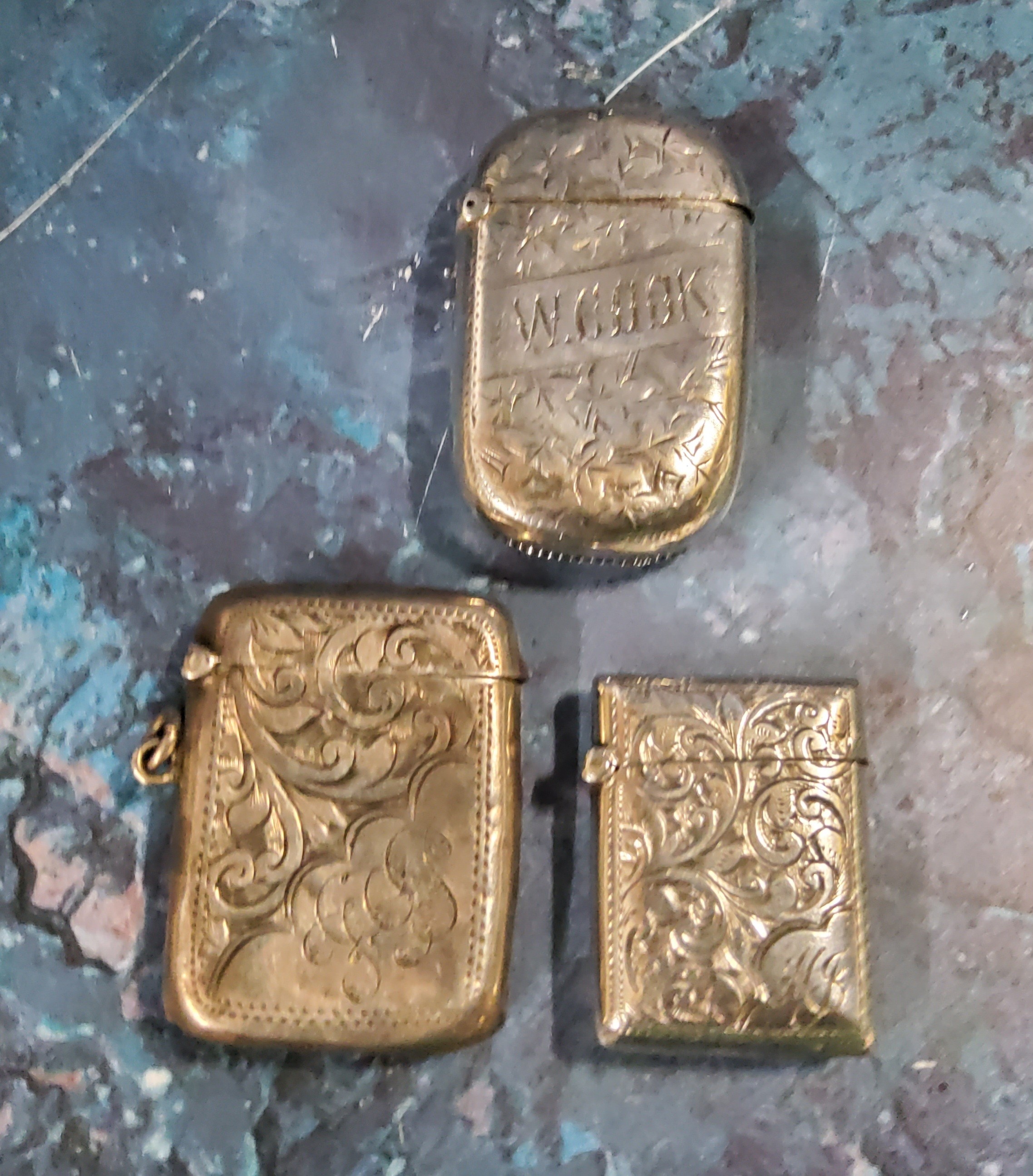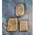 A Victorian silver rectangular vesta case, engraved and chased with foliage, 3.75cm high, Birmingham 1899; others, Birmingham 1894; Birmingham 1905 (3)