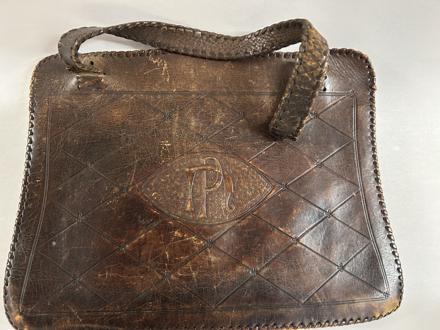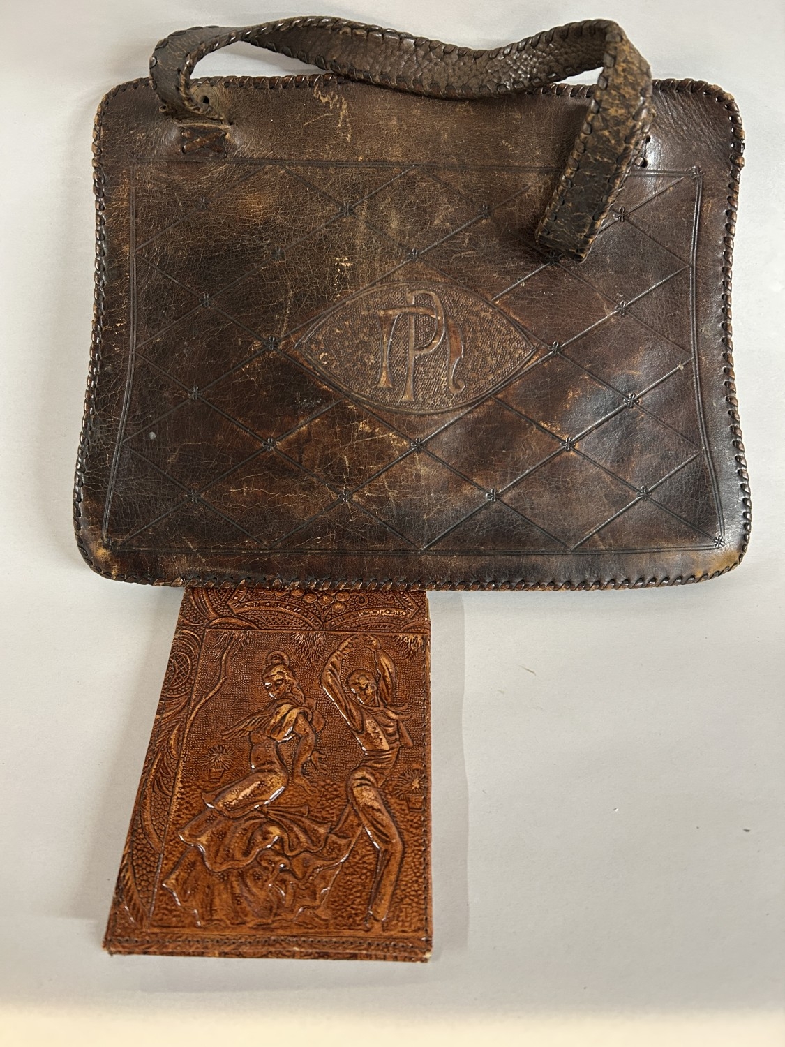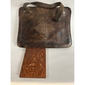 Vintage Spanish 'Flamenco' Wallet & Arts & Crafts Tooled Leather Bag - Handles Slightly Worn