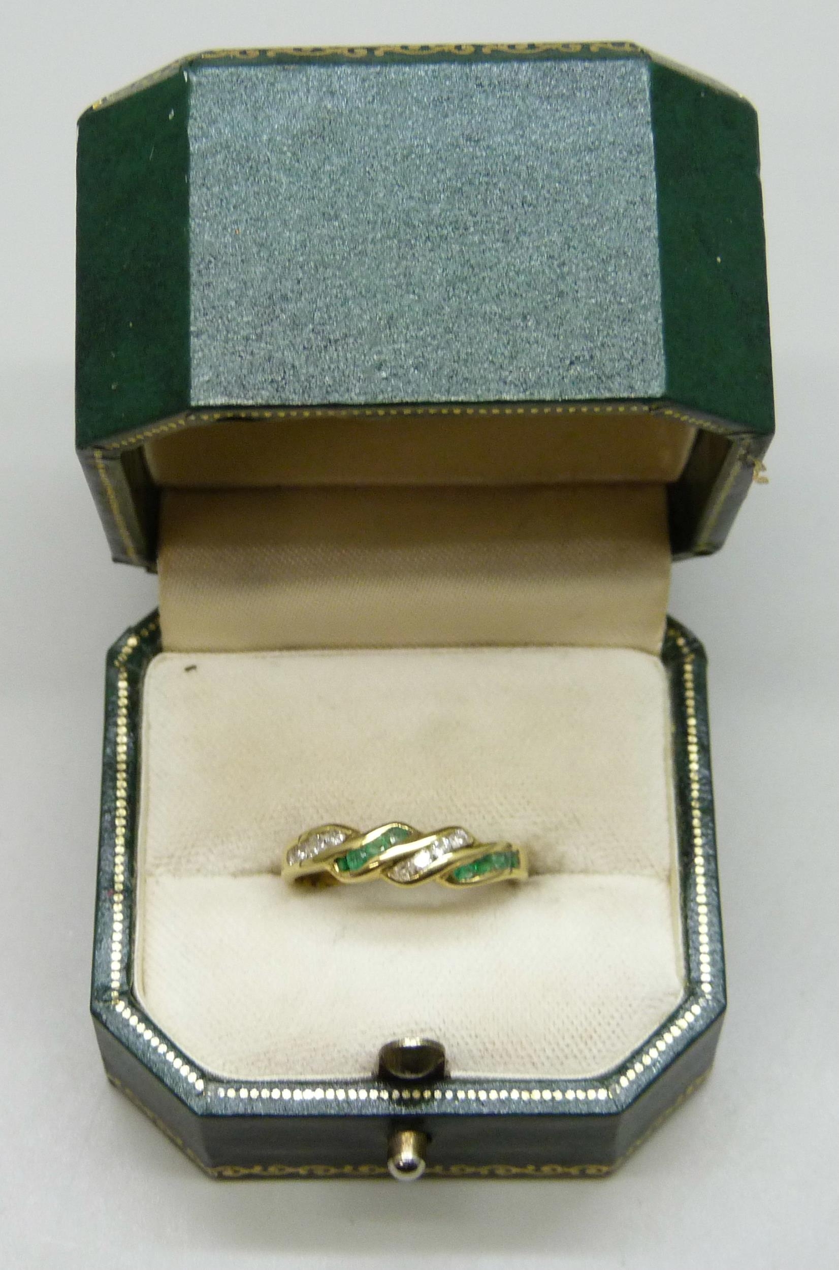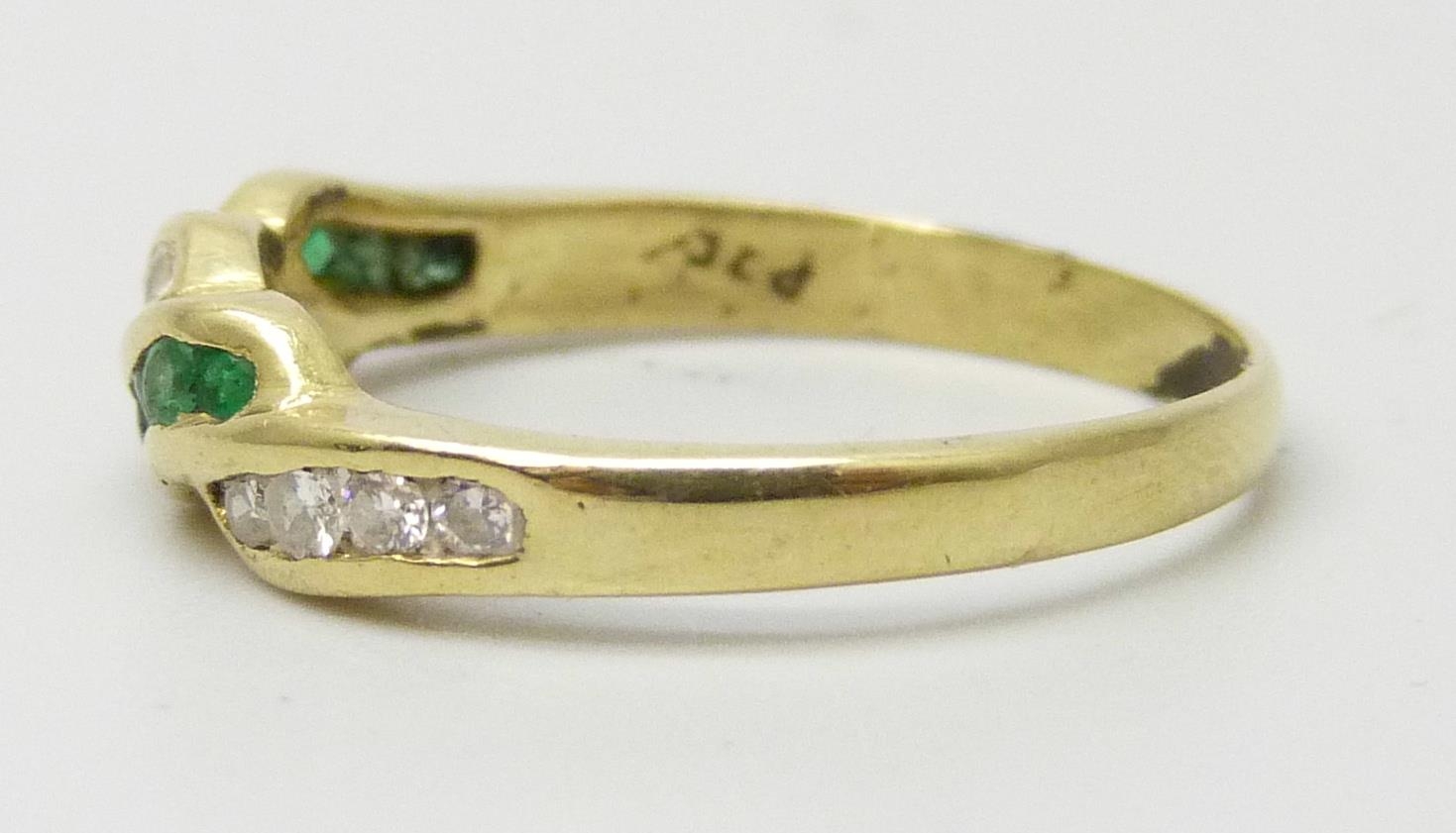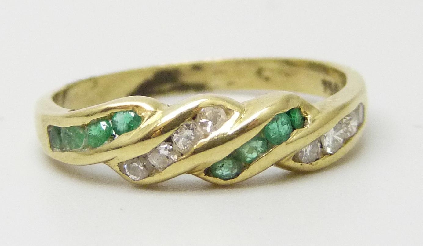 A yellow metal, emerald and diamond ring, marked 750, 2.5g, N