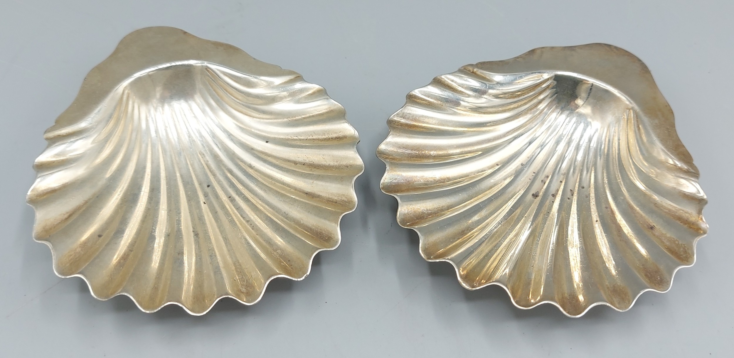 A pair of Victorian silver butter dishes of Scallop form, London 1886, maker Francis Higgins III, 5ozs