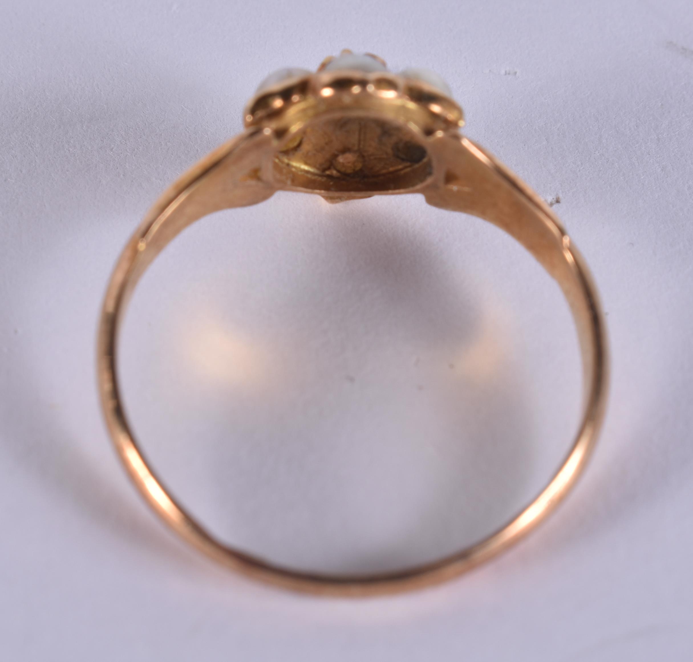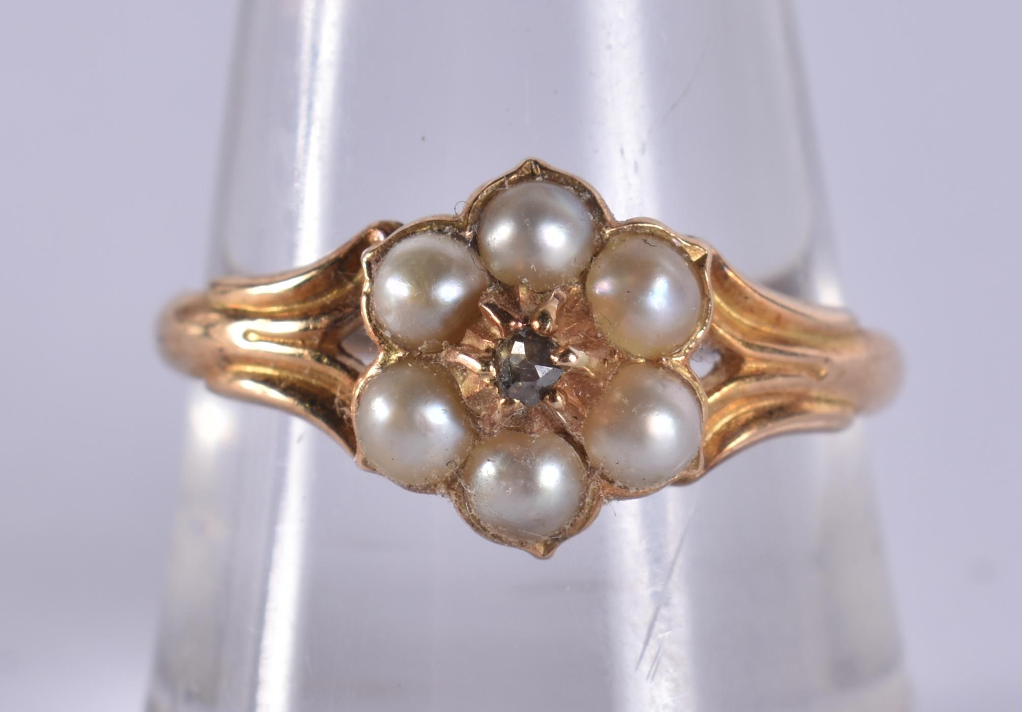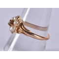 AN 18CT GOLD PEARL AND DIAMOND RING. 2.4 grams.
