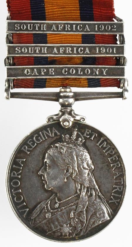 QSA with bars CC/SA01/SA02 named (3433 Pte W Bates Coldstream Guards). With copy medal roll