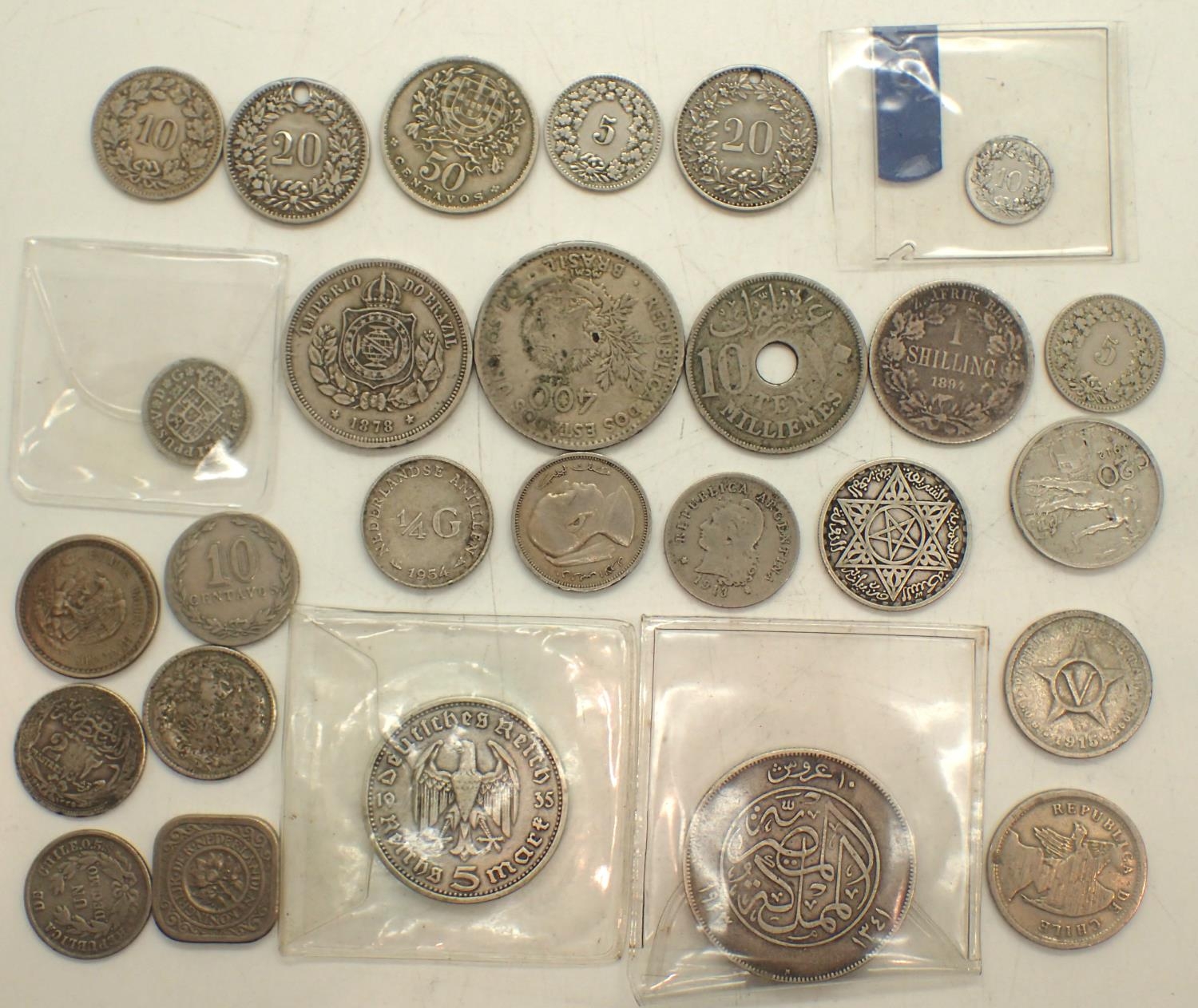 19th and 20th century silver denominations of world countries including Switzerland, Brazil, Italy, South Africa and others (27). P&P Group 1 (£14+VAT for the first lot and £1+VAT for subsequent lots)