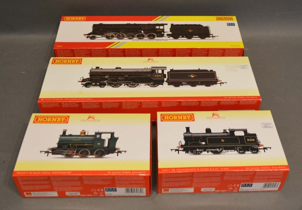 A Hornby OO Gauge Locomotive BR Late Class 9F Crosti Boiler 92023 R3274 within original box, together with three other Hornby OO gauge locomotives within boxes R3000, R3631 and R3694