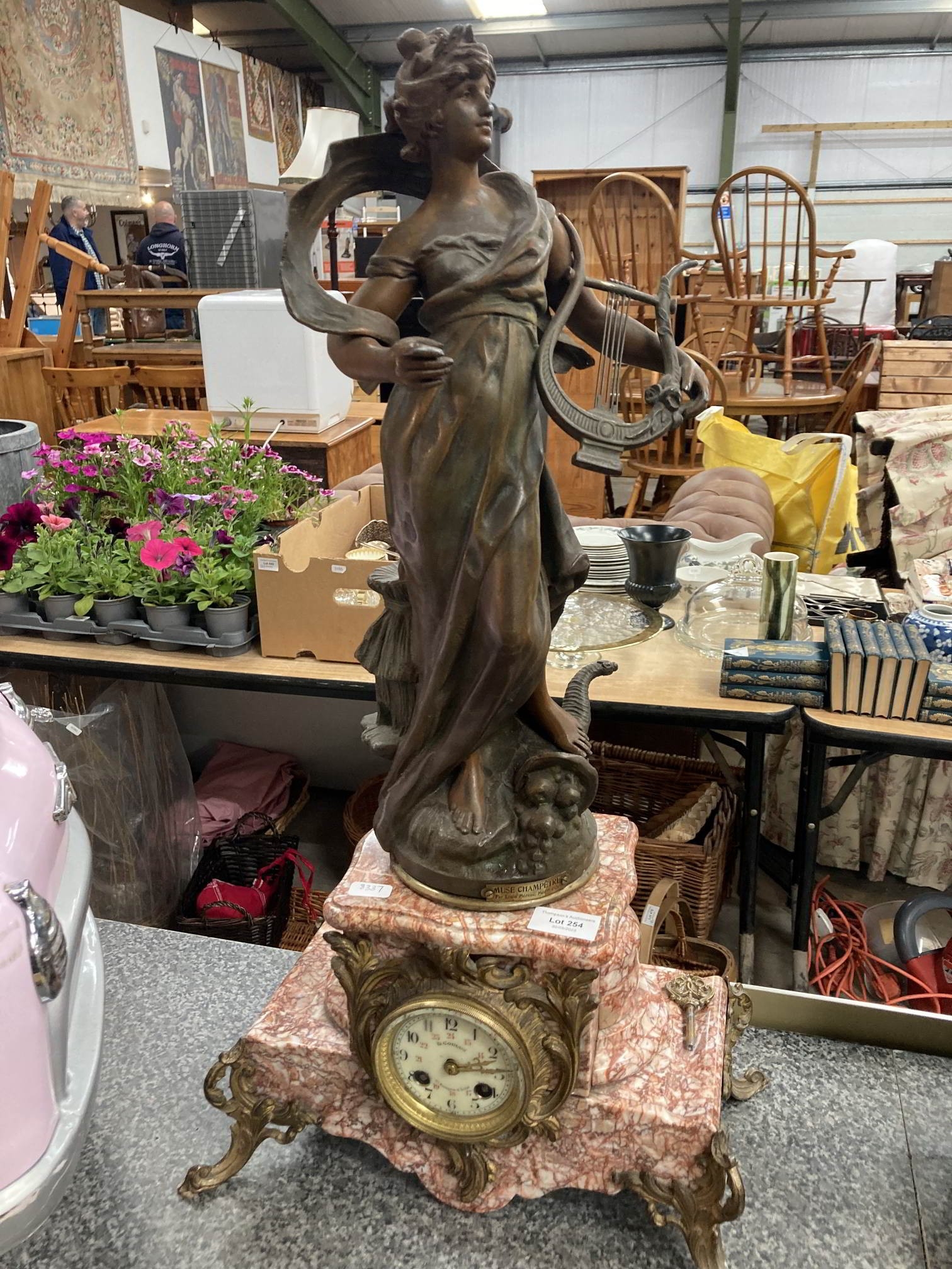 Muse Champetre, Par Louis Moreau. Med d'Or French mantel clock with key and pendulum 70H