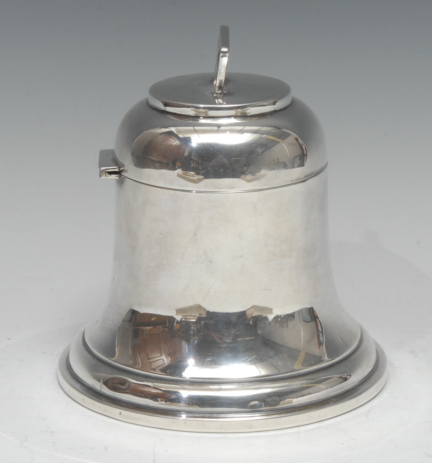 A large George V silver novelty inkwell, as a bell, hinged cover, gilt interior, 15.5cm high, A & J Zimmermann Ltd, Birmingham 1919