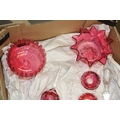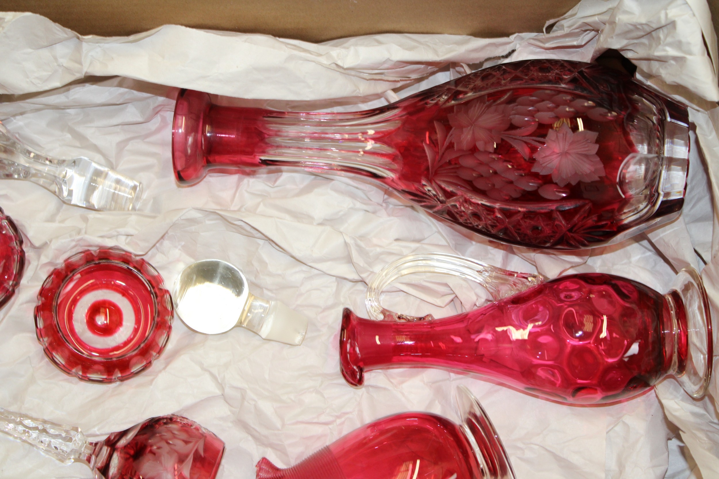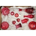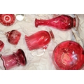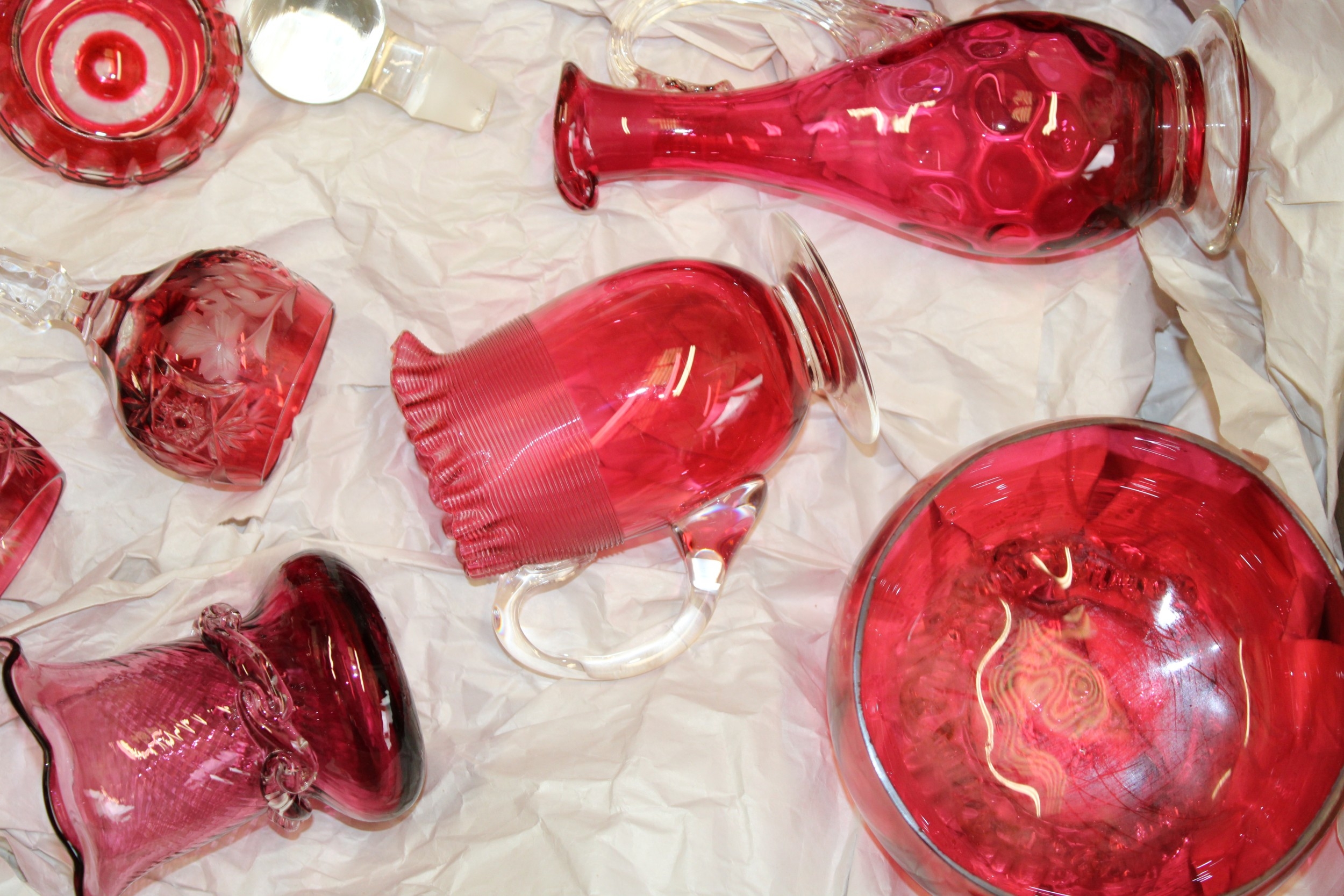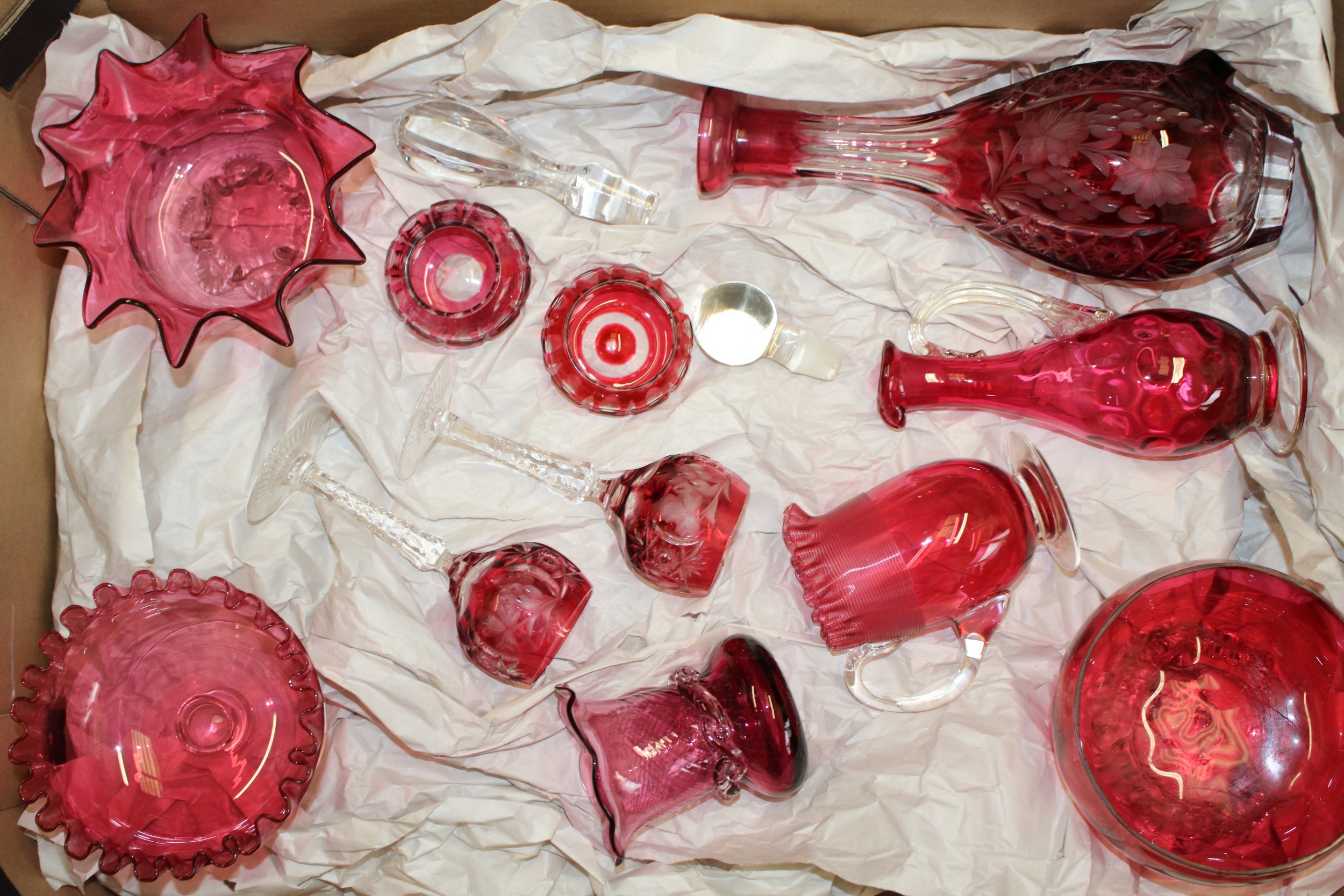 A collection of cranberry glass to include bon bon dishes, glasses and other similar items, (Qty).