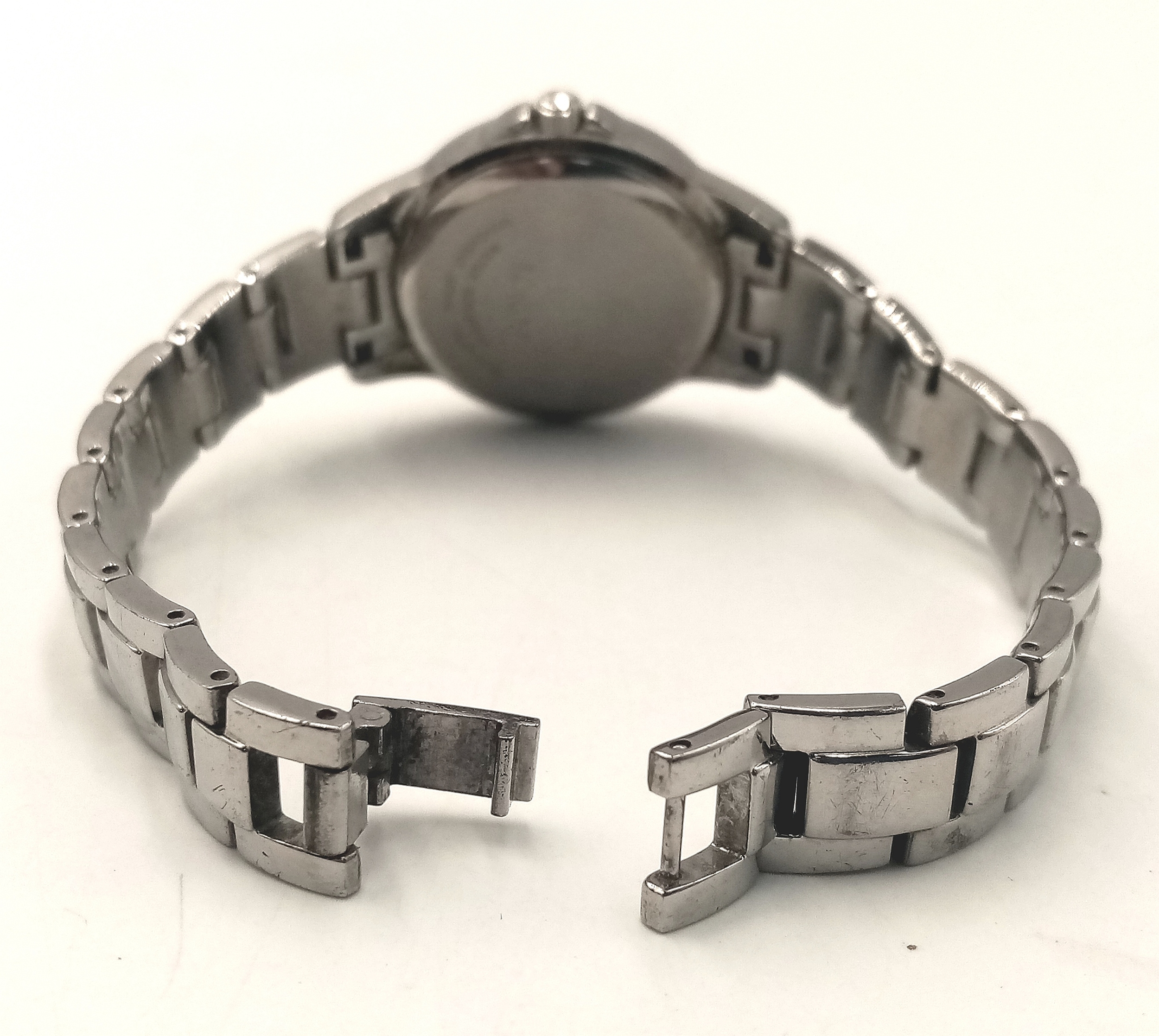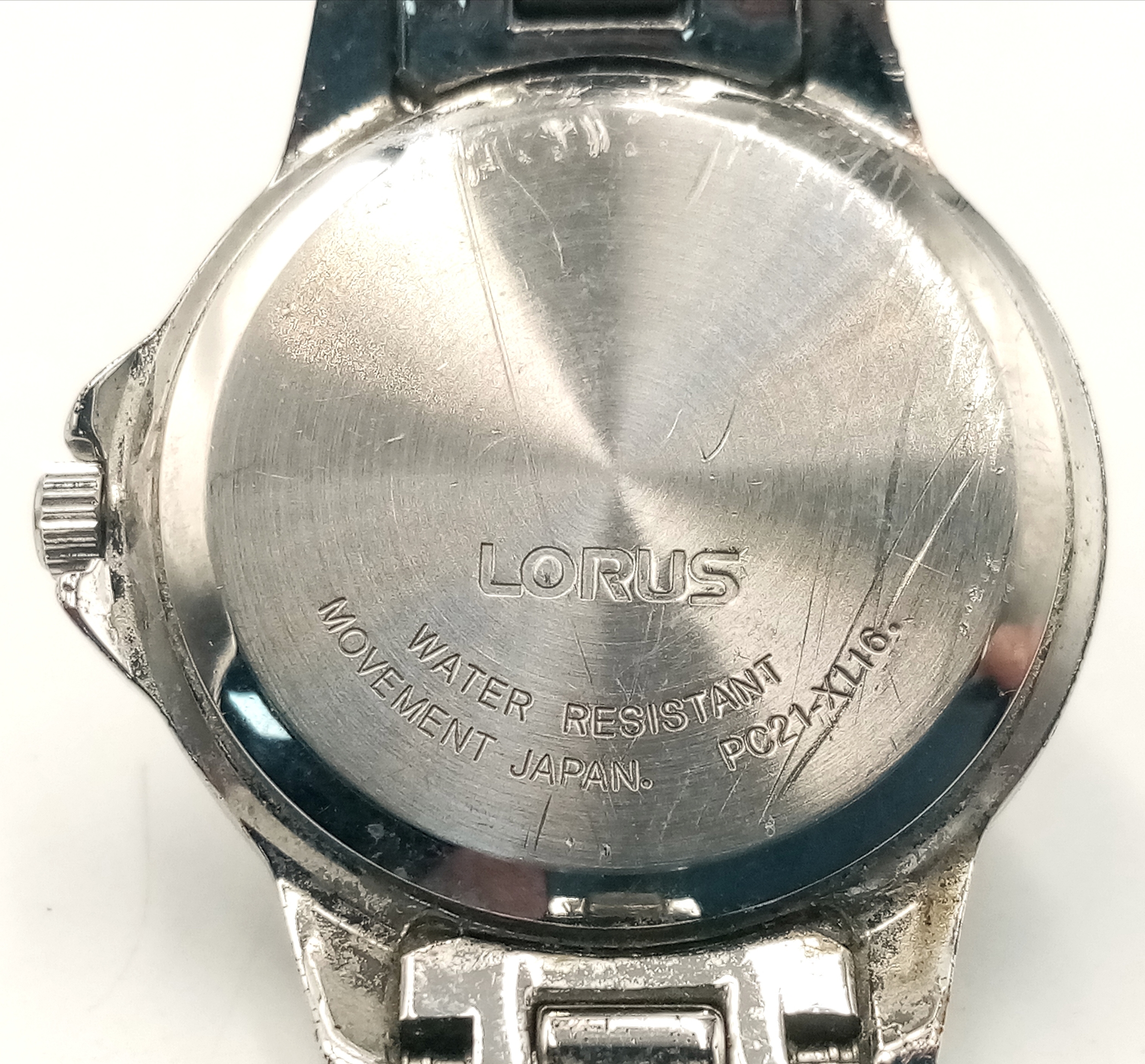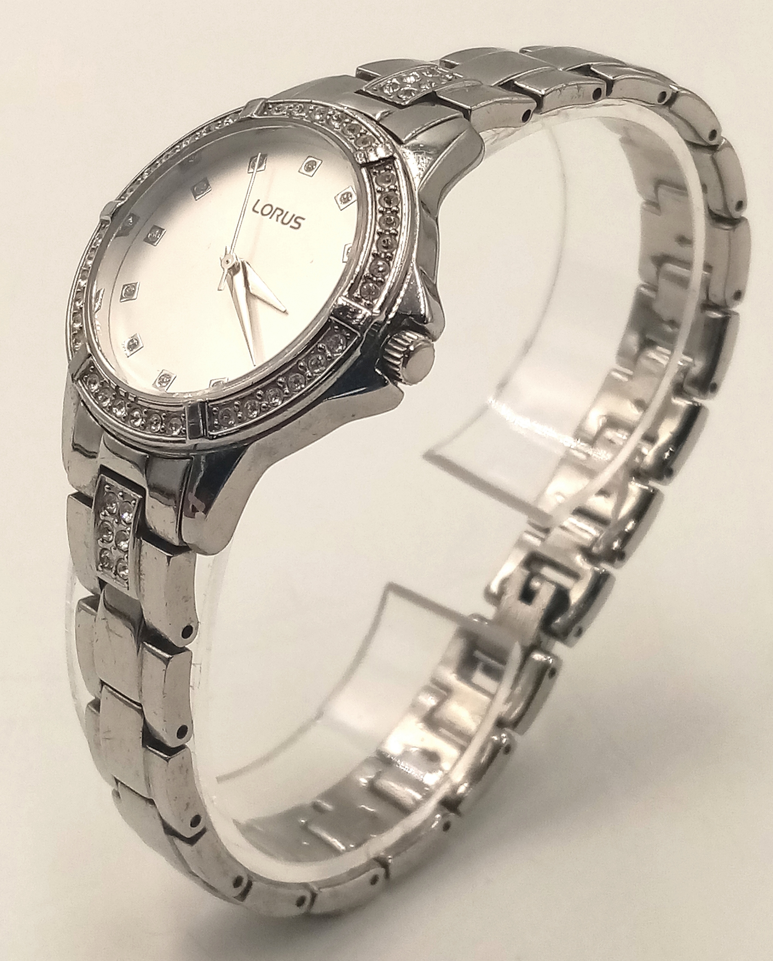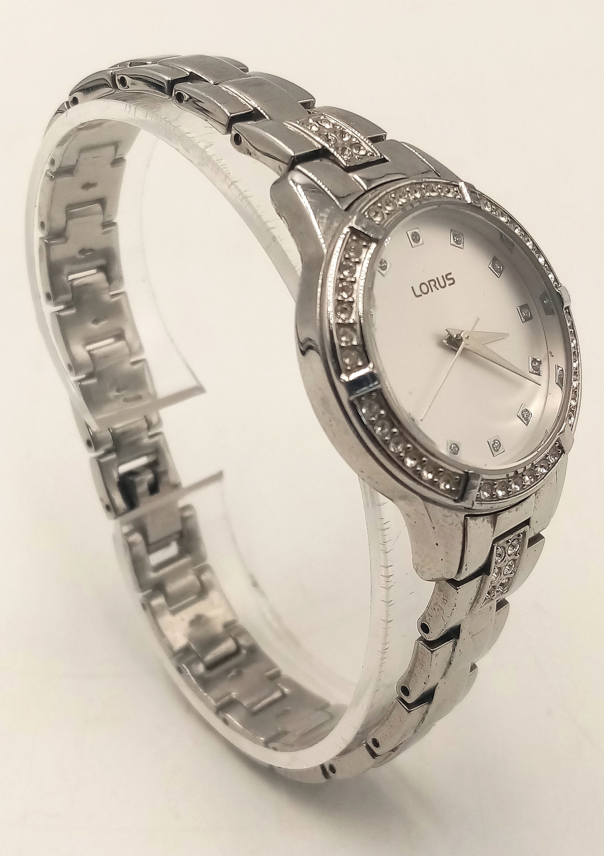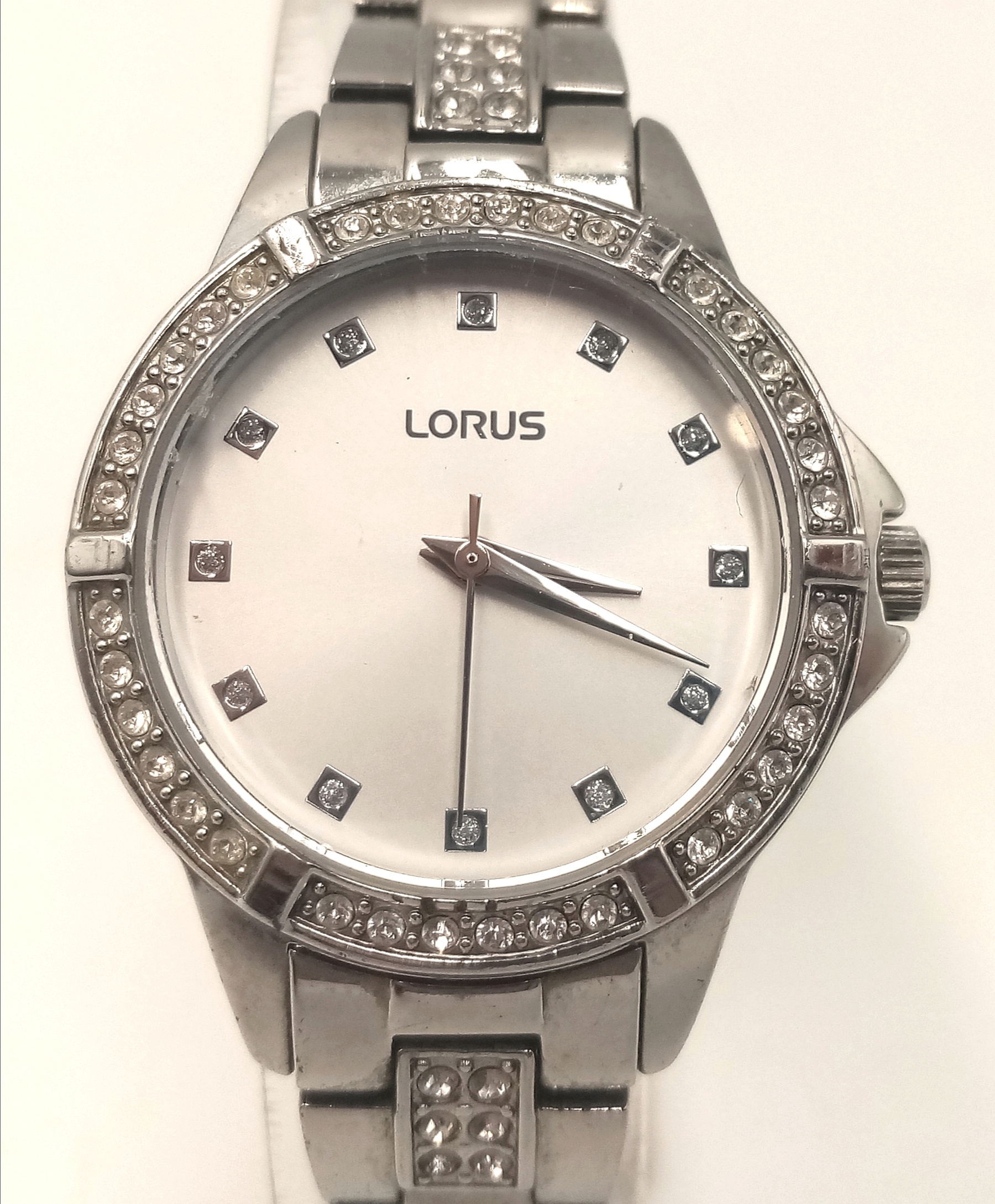 A LORUS, STONE SET, WHITE DIAL, STEEL BRACELET WATCH. IN FULL WORKING ORDER. S/A 1268 - 1