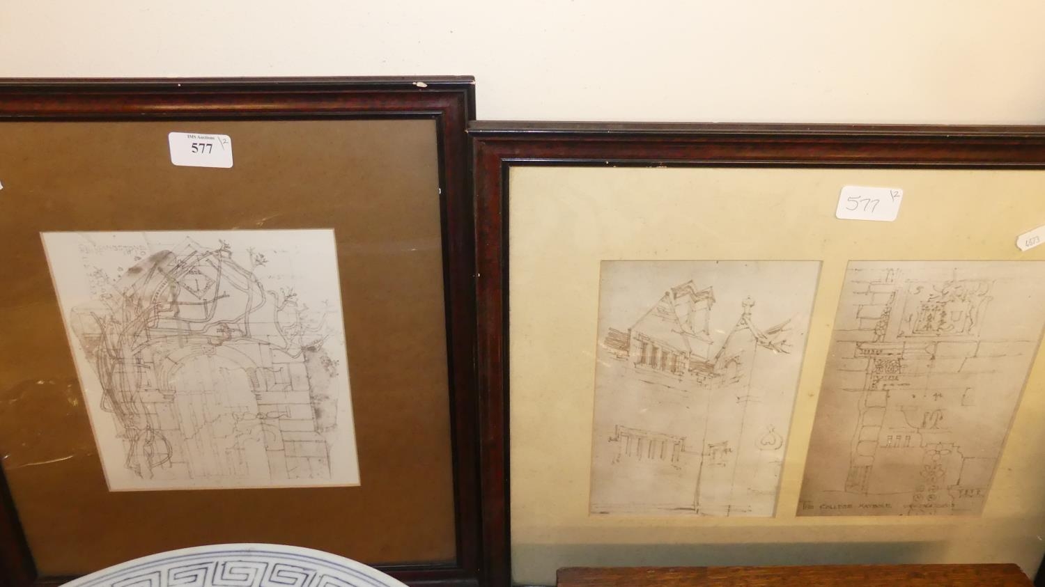3 x Framed Architectural Pencil Drawings