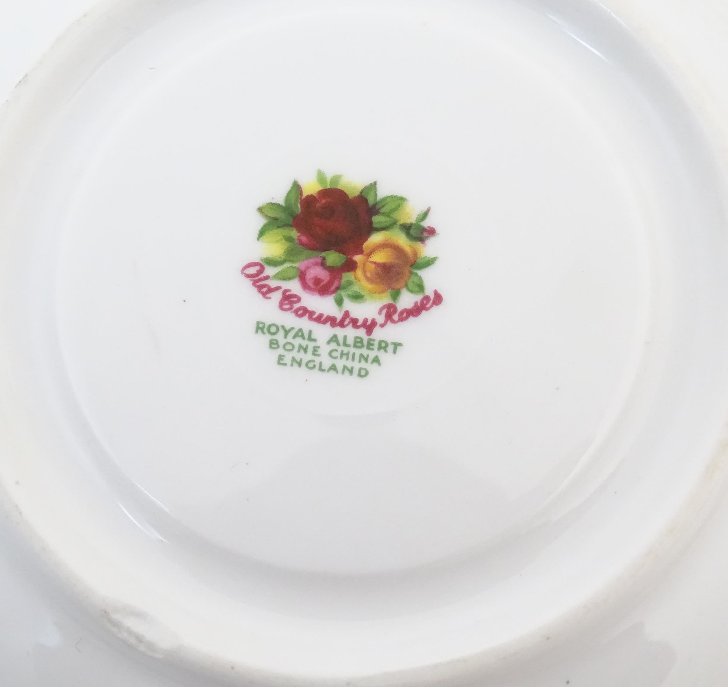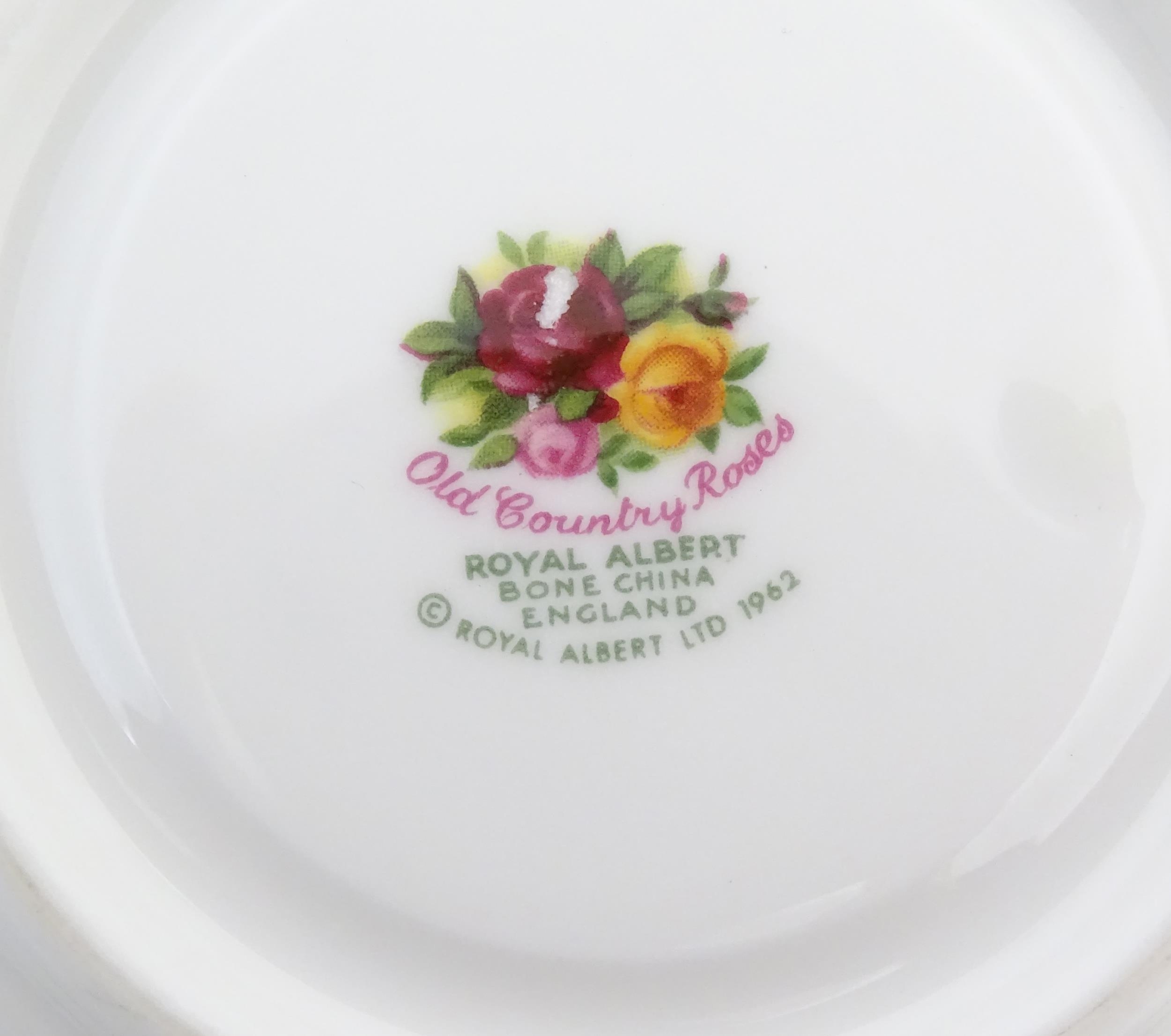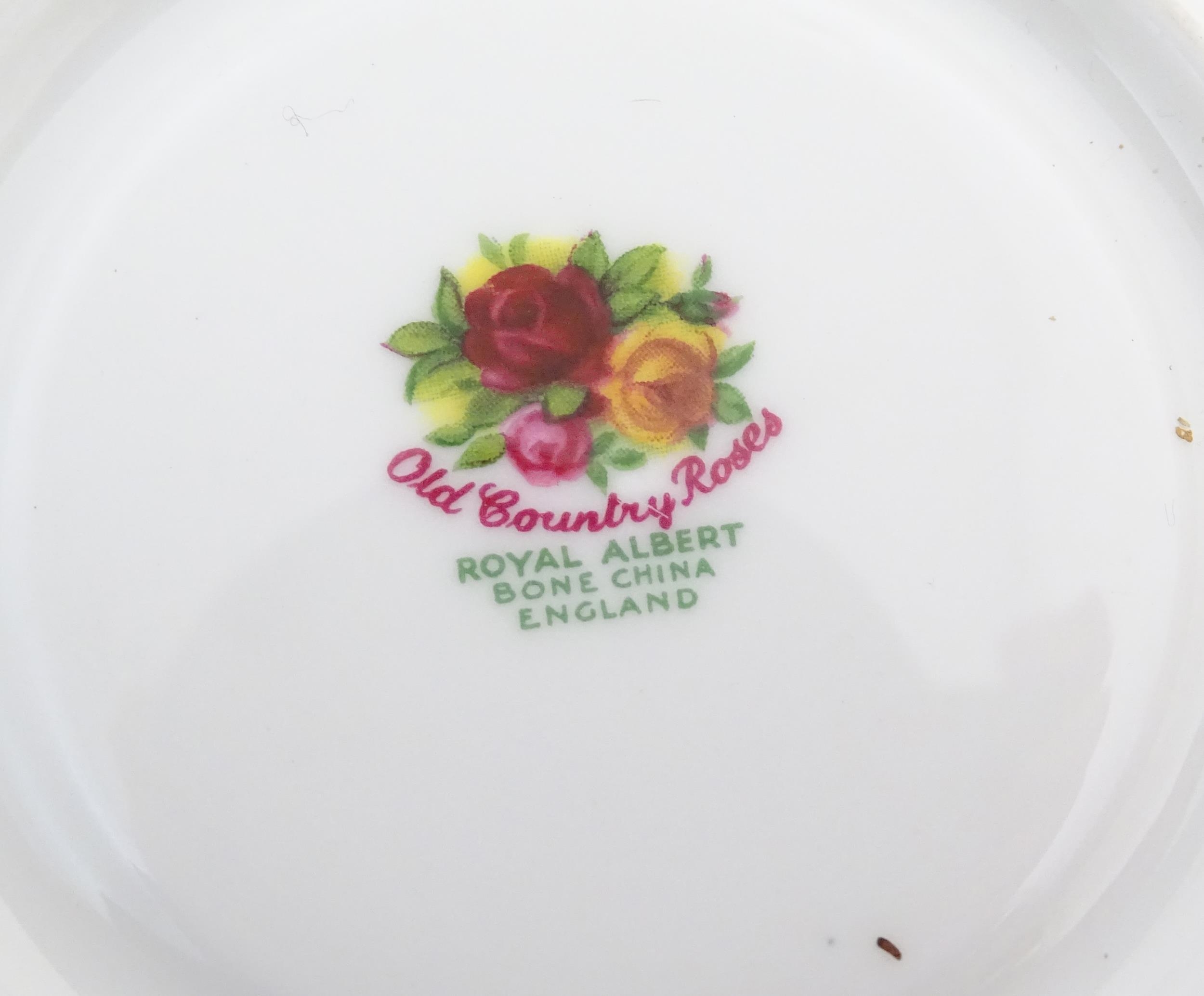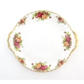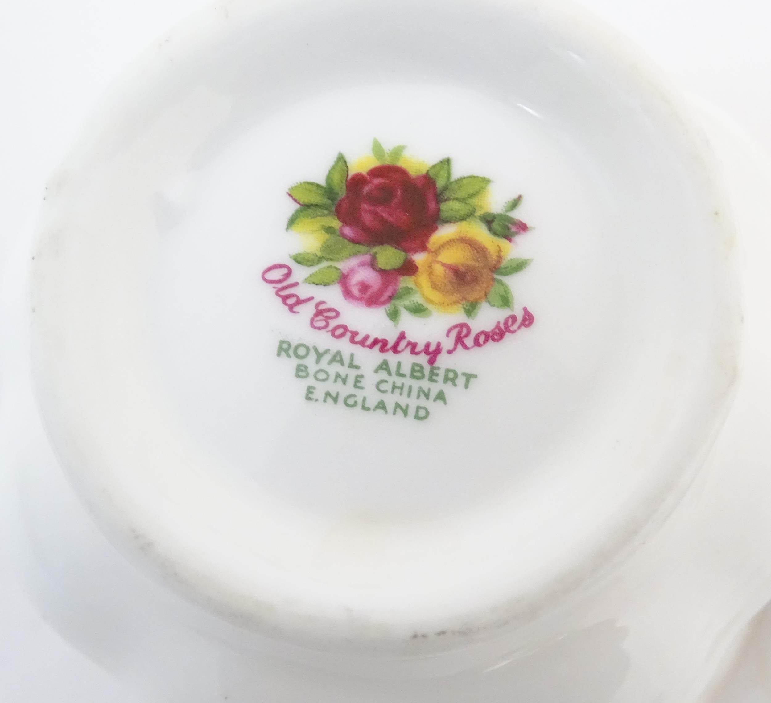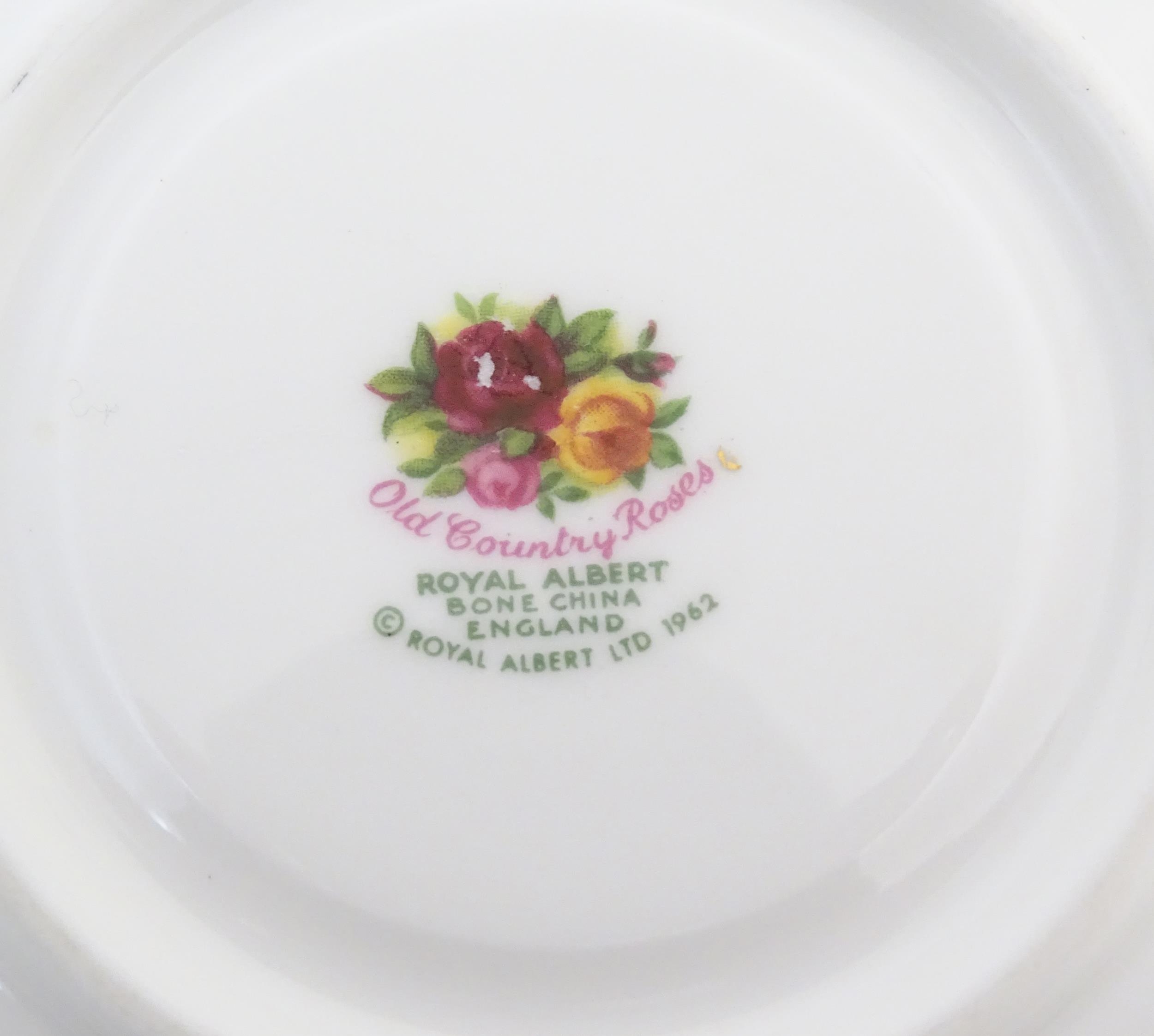 A quantity of Royal Albert tea wares in the Old Country Roses pattern, to include cake plate, tea cups and saucers, plates, pepperettes, three tier cake stand, etc. Marked under. Cake plate approx. 10 1/2" wide (Approx. 20 pieces)