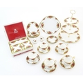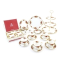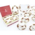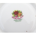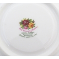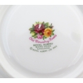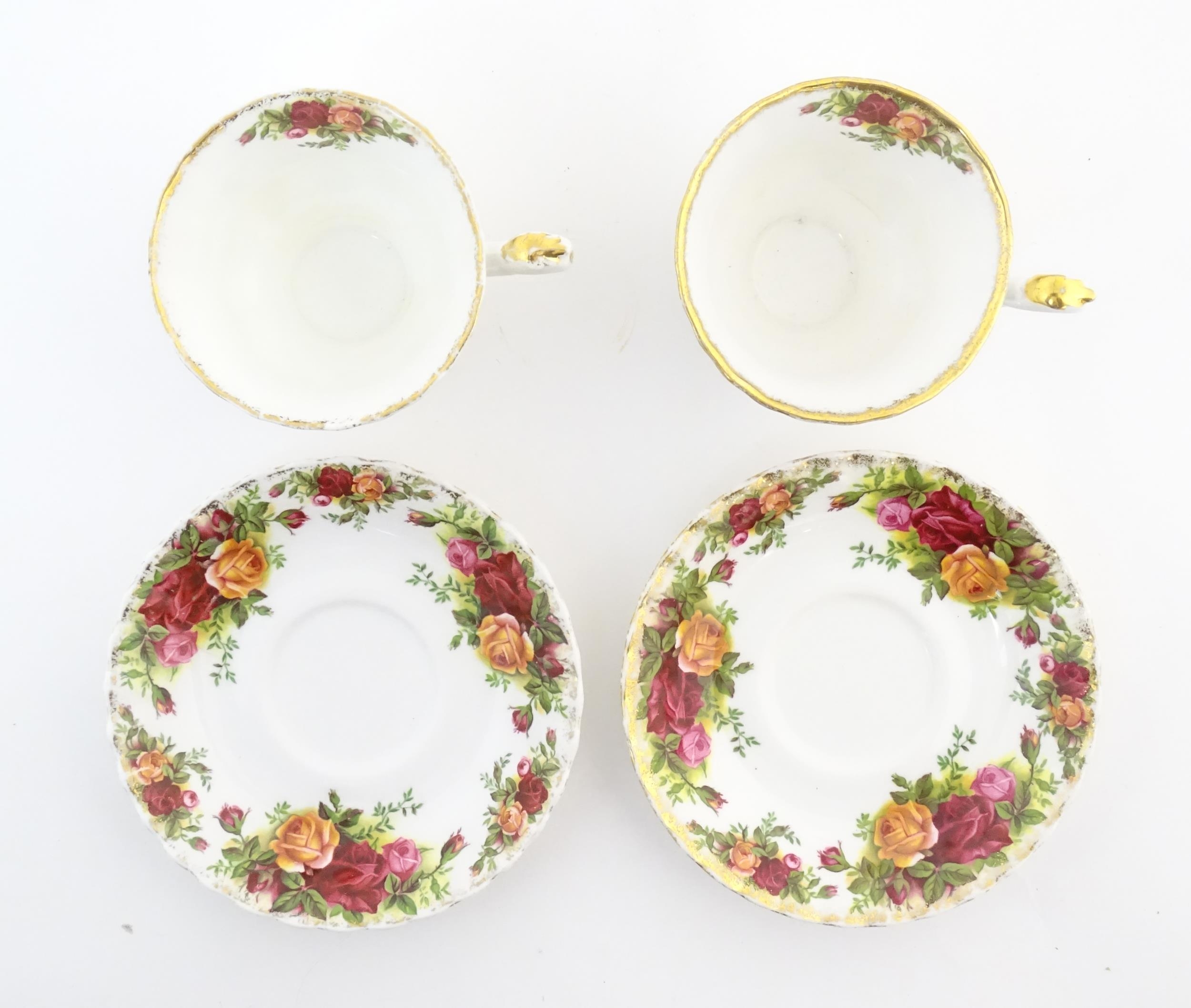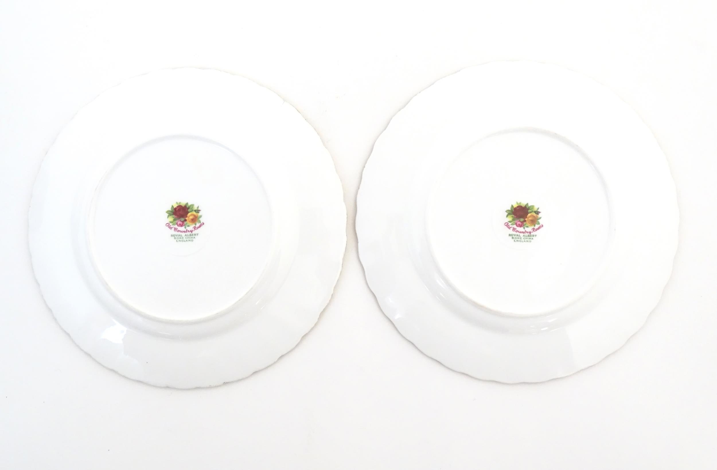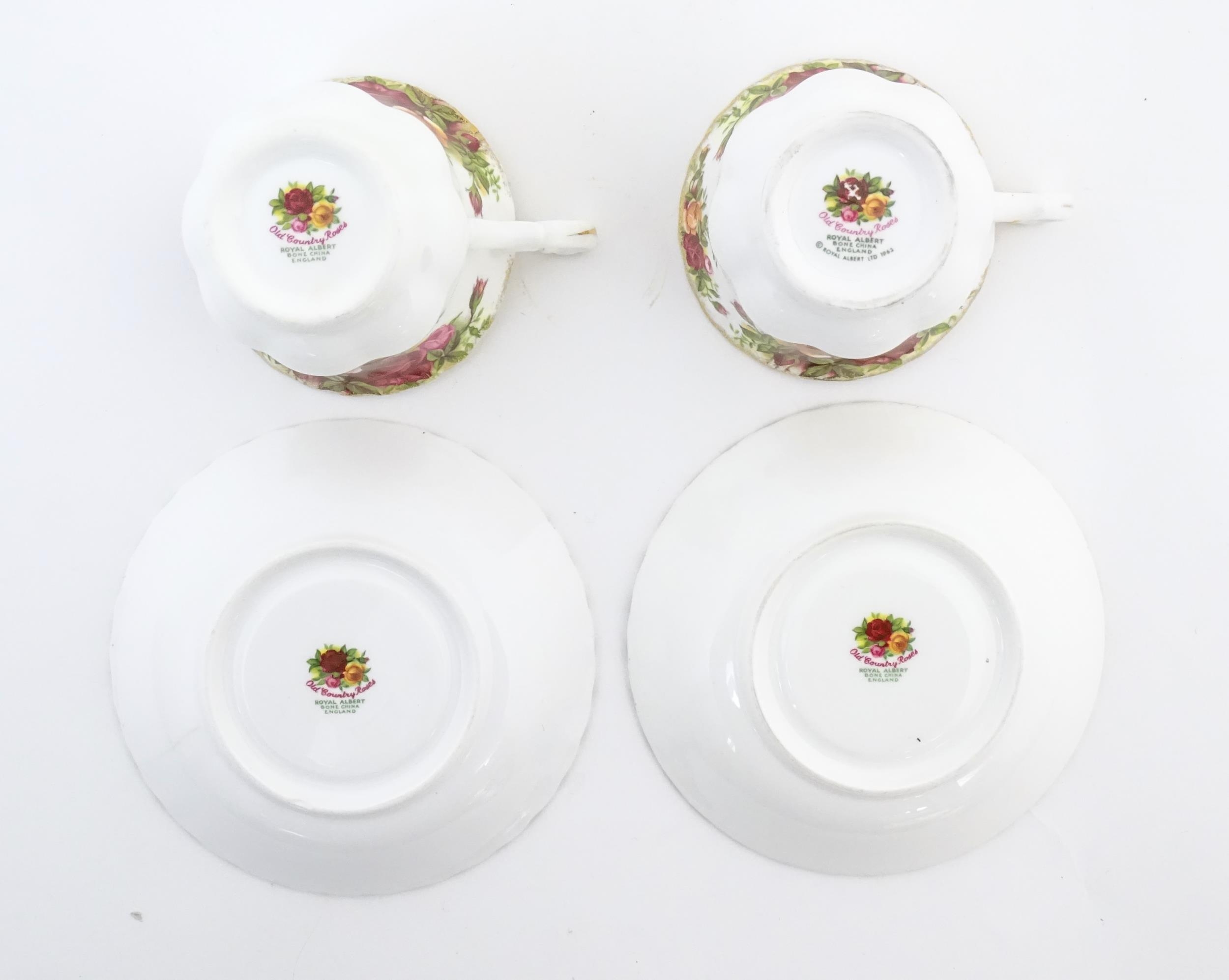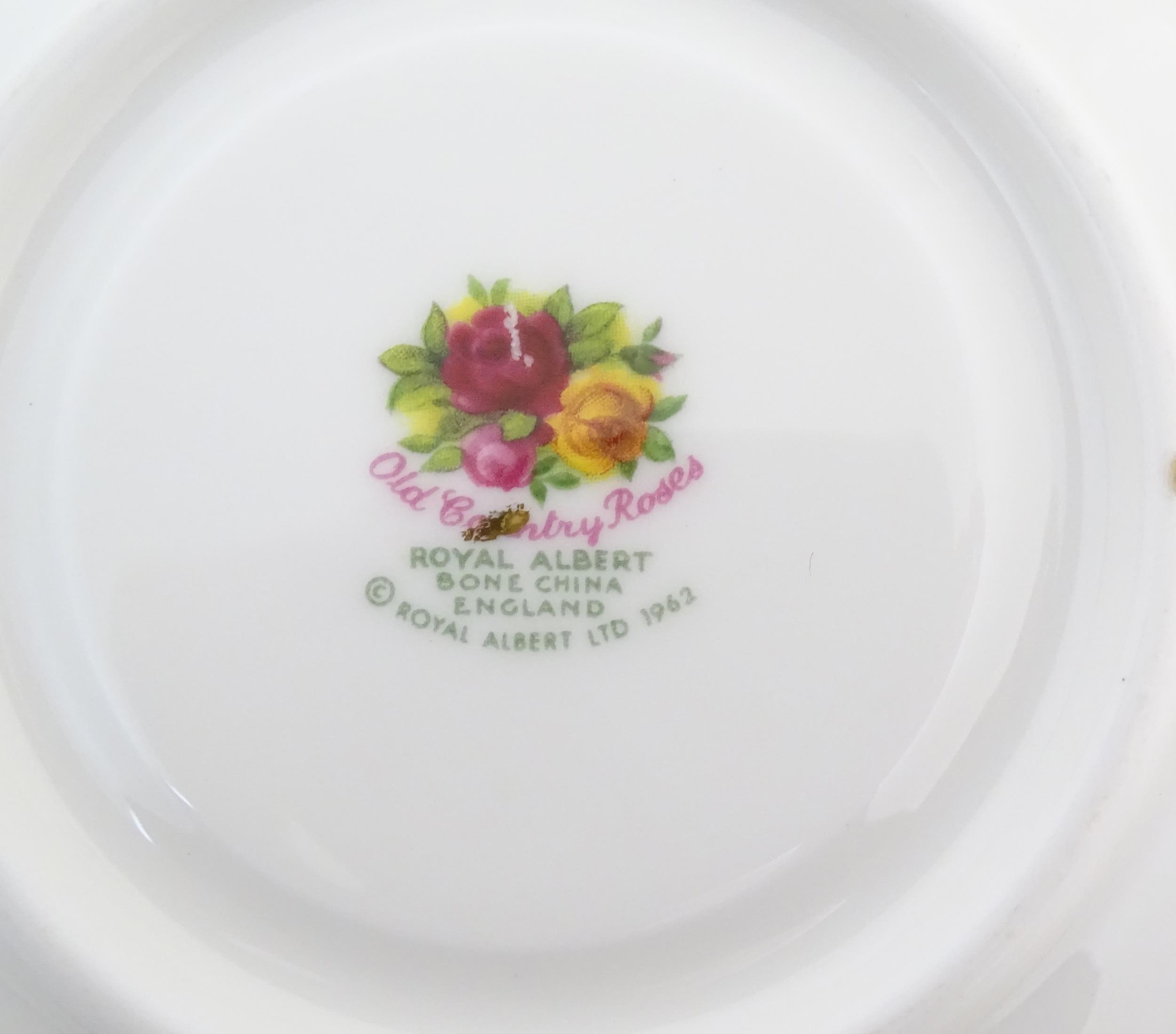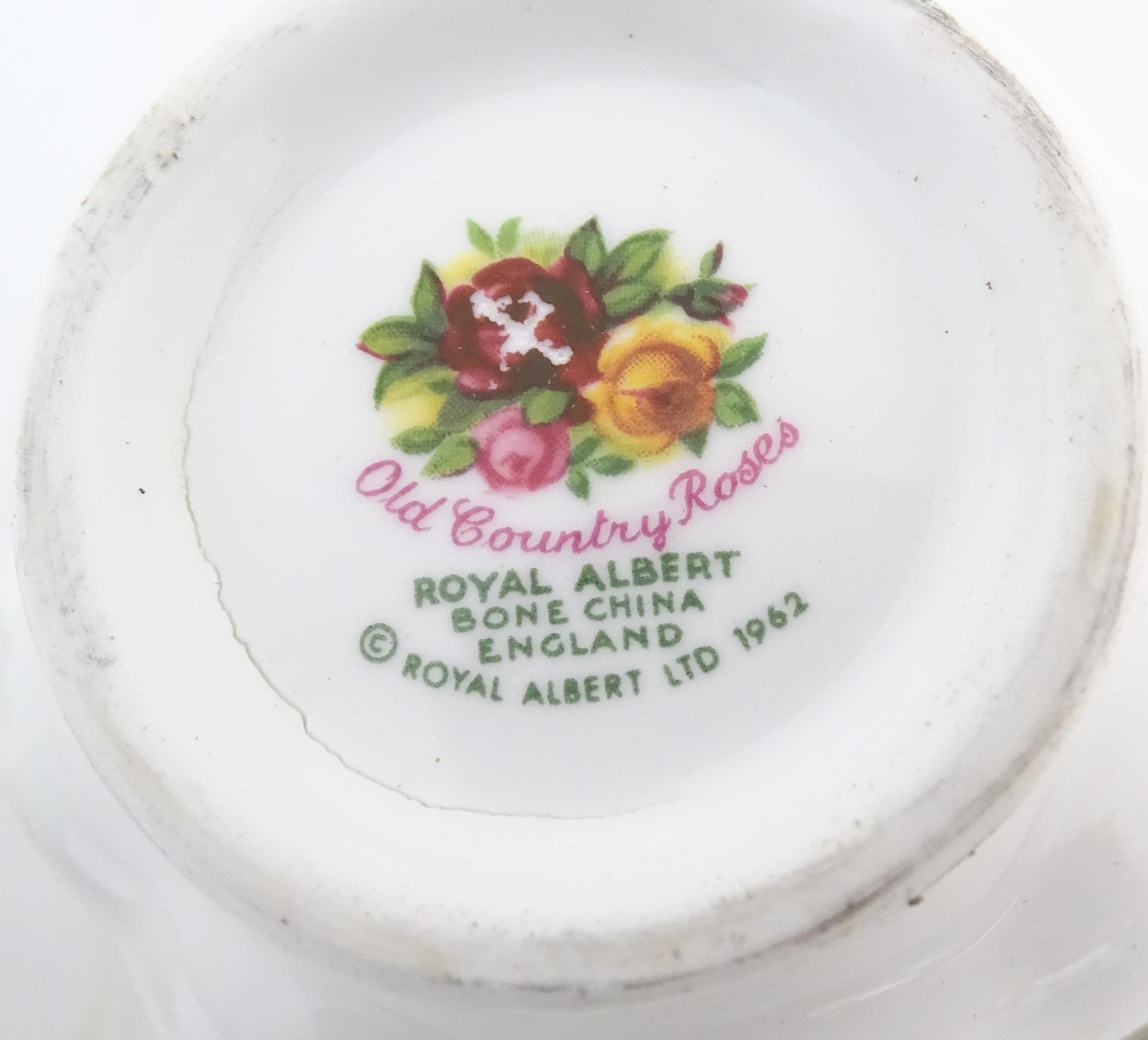 A quantity of Royal Albert tea wares in the Old Country Roses pattern, to include cake plate, tea cups and saucers, plates, pepperettes, three tier cake stand, etc. Marked under. Cake plate approx. 10 1/2" wide (Approx. 20 pieces)