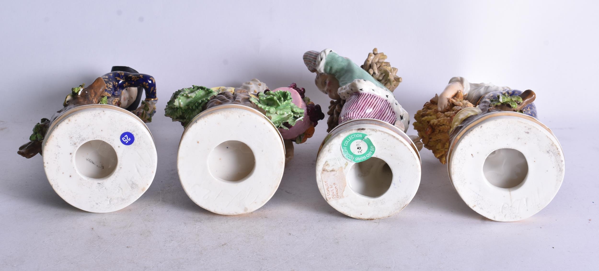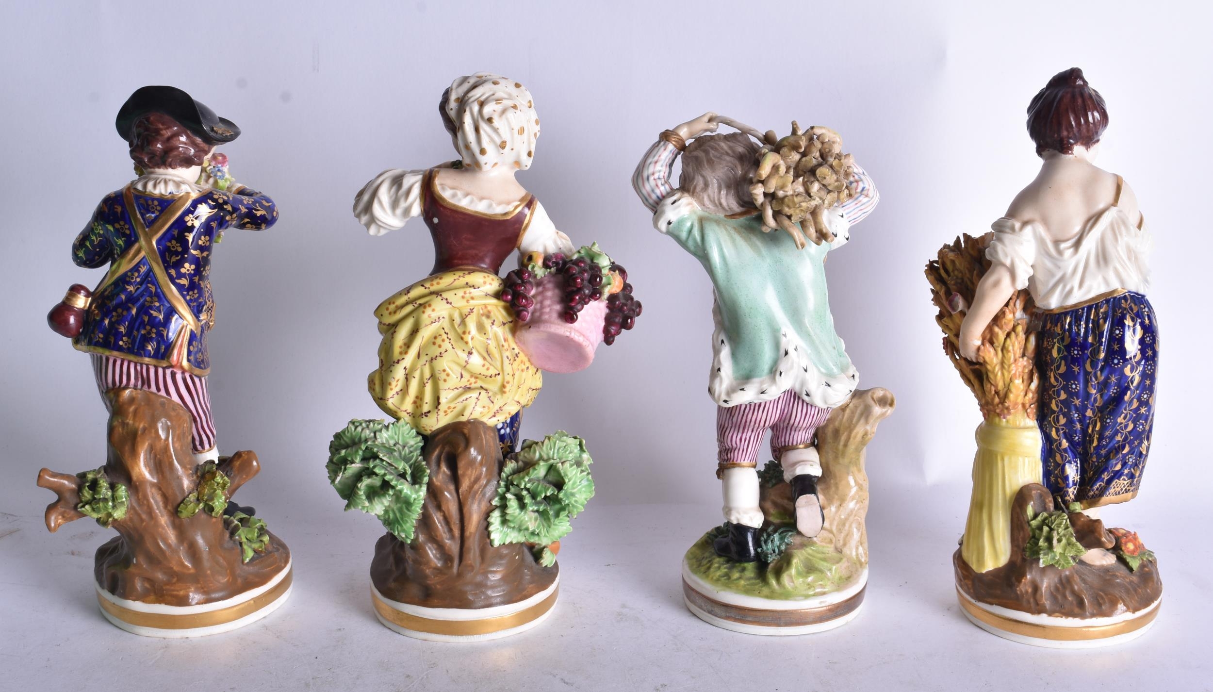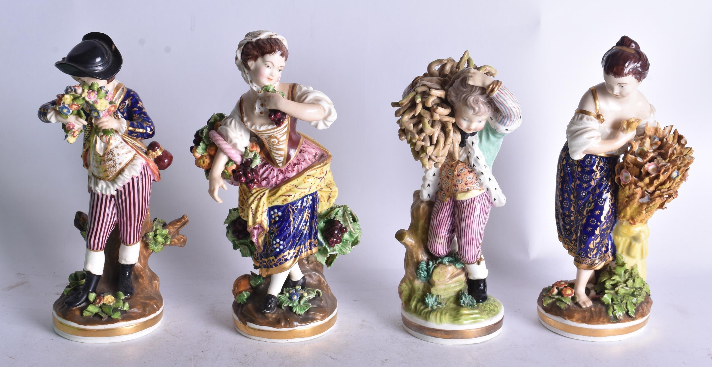 Early 19th century set of Derby figures of the four seasons, Winter with sticks, the Spring with flowers, Summer with wheat and Autumn with grape. Largest 18cm height (4)