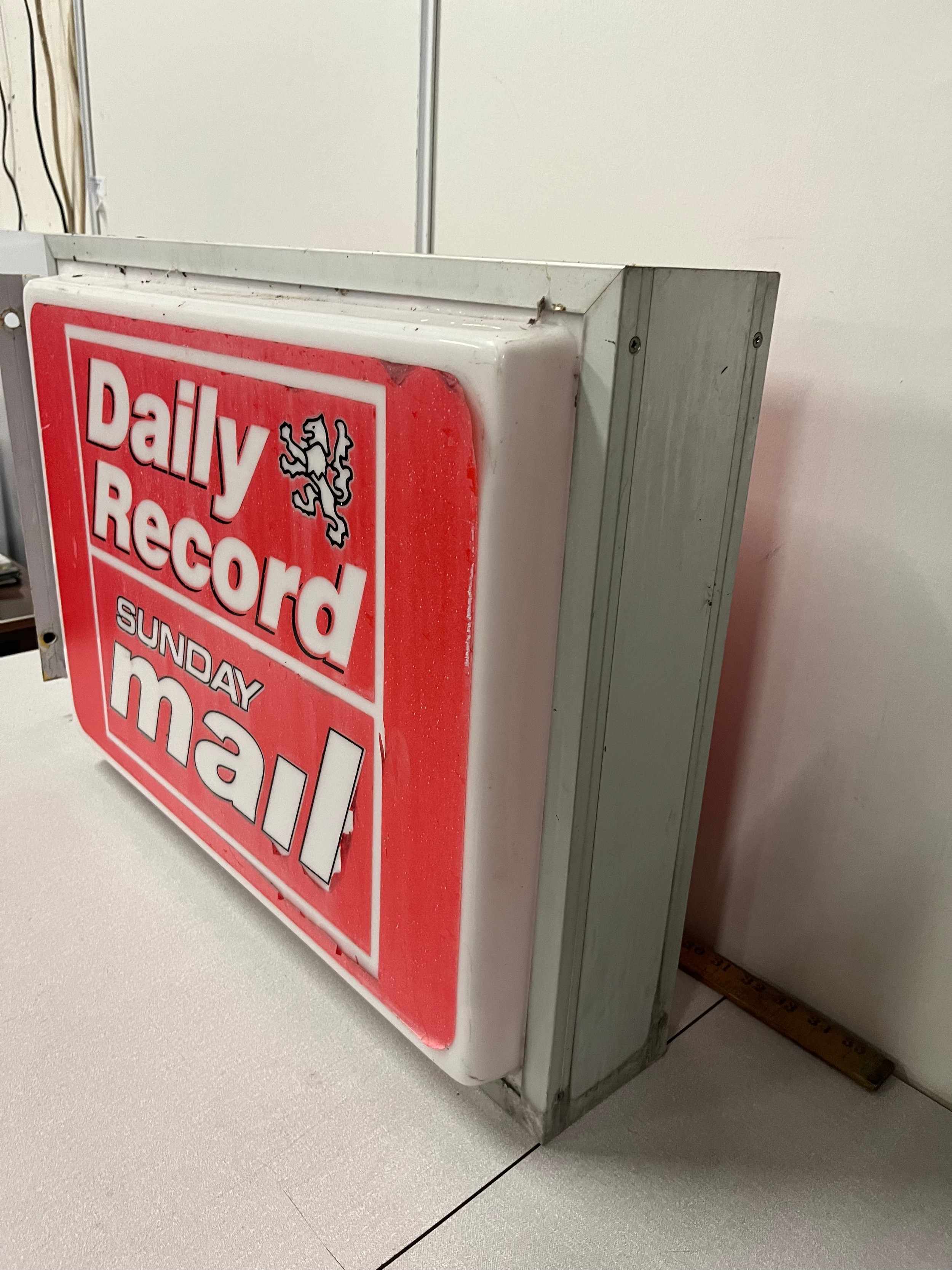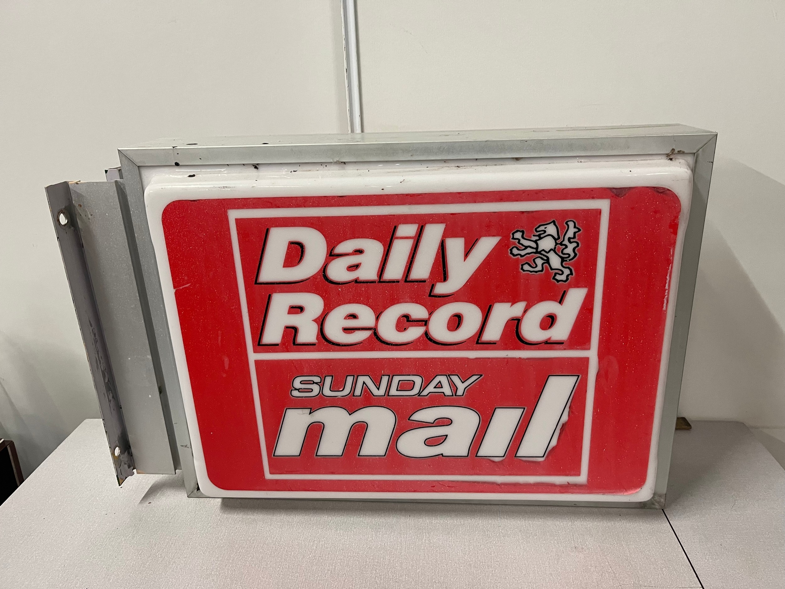 Large metal & plastic light up double sided Daily Record advertising sign 28" x 19"