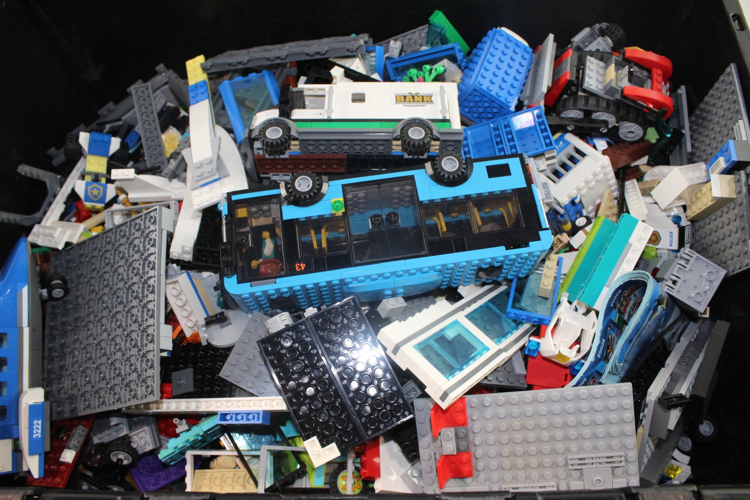 12kg of Lego bricks in different shapes, sizes and colours, may also include minifigures and vehicle accessories, not cleaned.