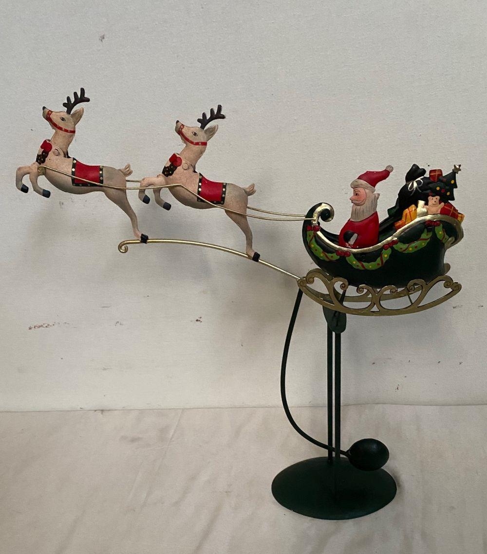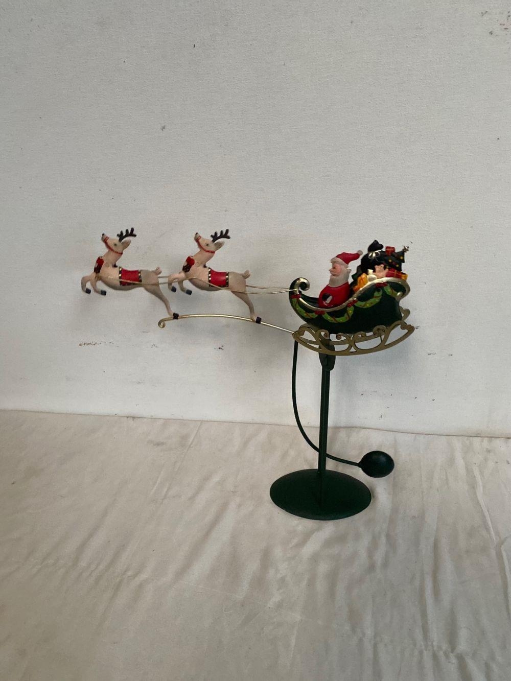 A ROCKING PENDULUM CHRISTMAS ORNAMENT, depicting Santa in sleigh, dimensions: 45cm x 44cm approx
