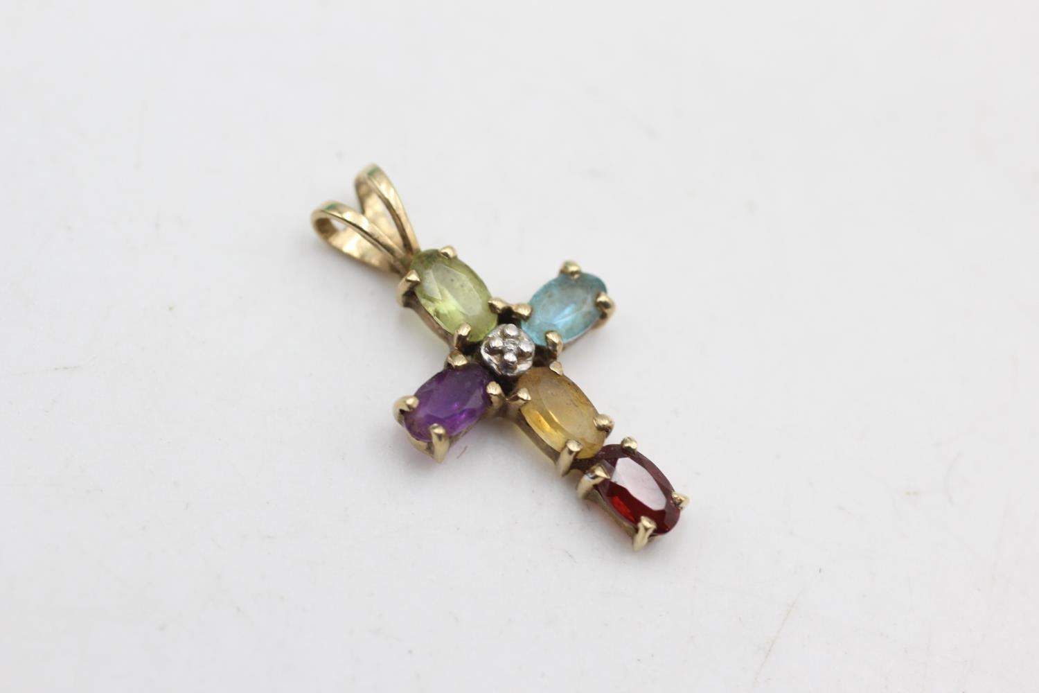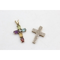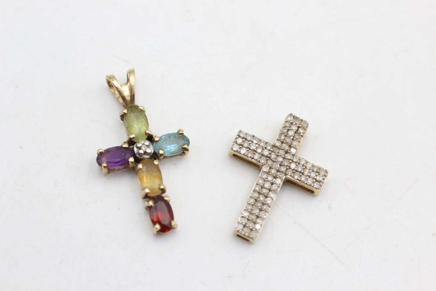 2 x 9ct gold cross pendants inc. Diamond, peridot, topaz, amethyst (2.2g)