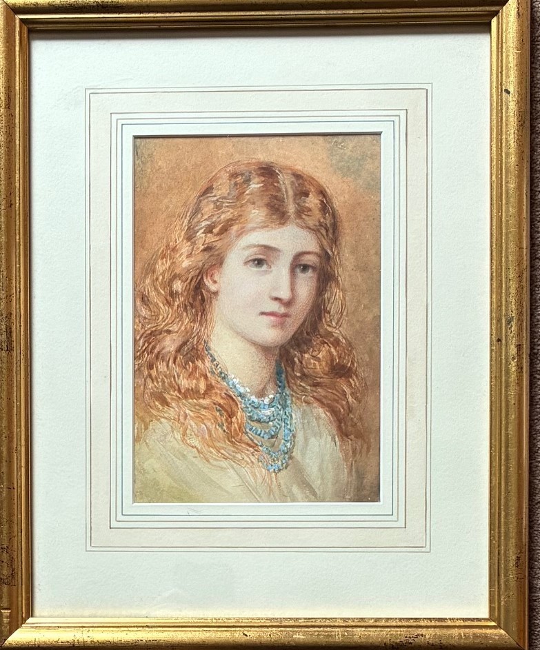 Isabel Naftel (British 1832-1912) Portrait of a young lady, watercolour heightened with white, 23 x 15cm.
