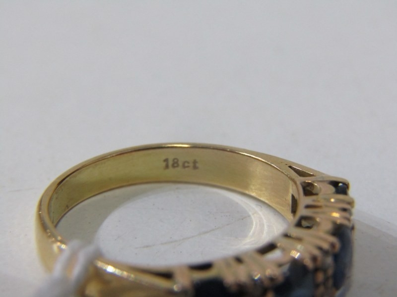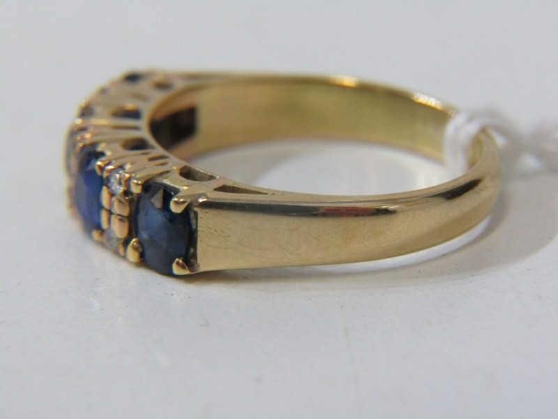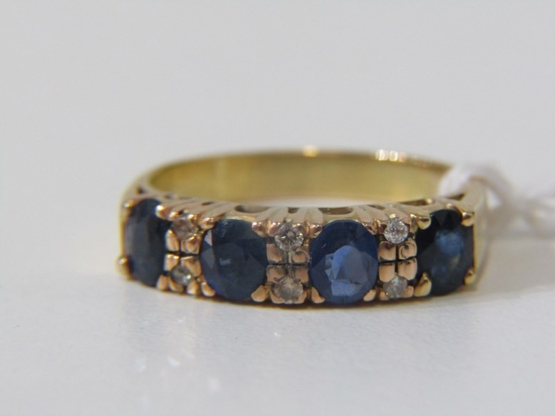 SAPPHIRE & DIAMOND RING, 18ct yellow gold ring, set 4 well matched oval sapphires, interspersed by diamonds, size P, 4.7 grams