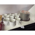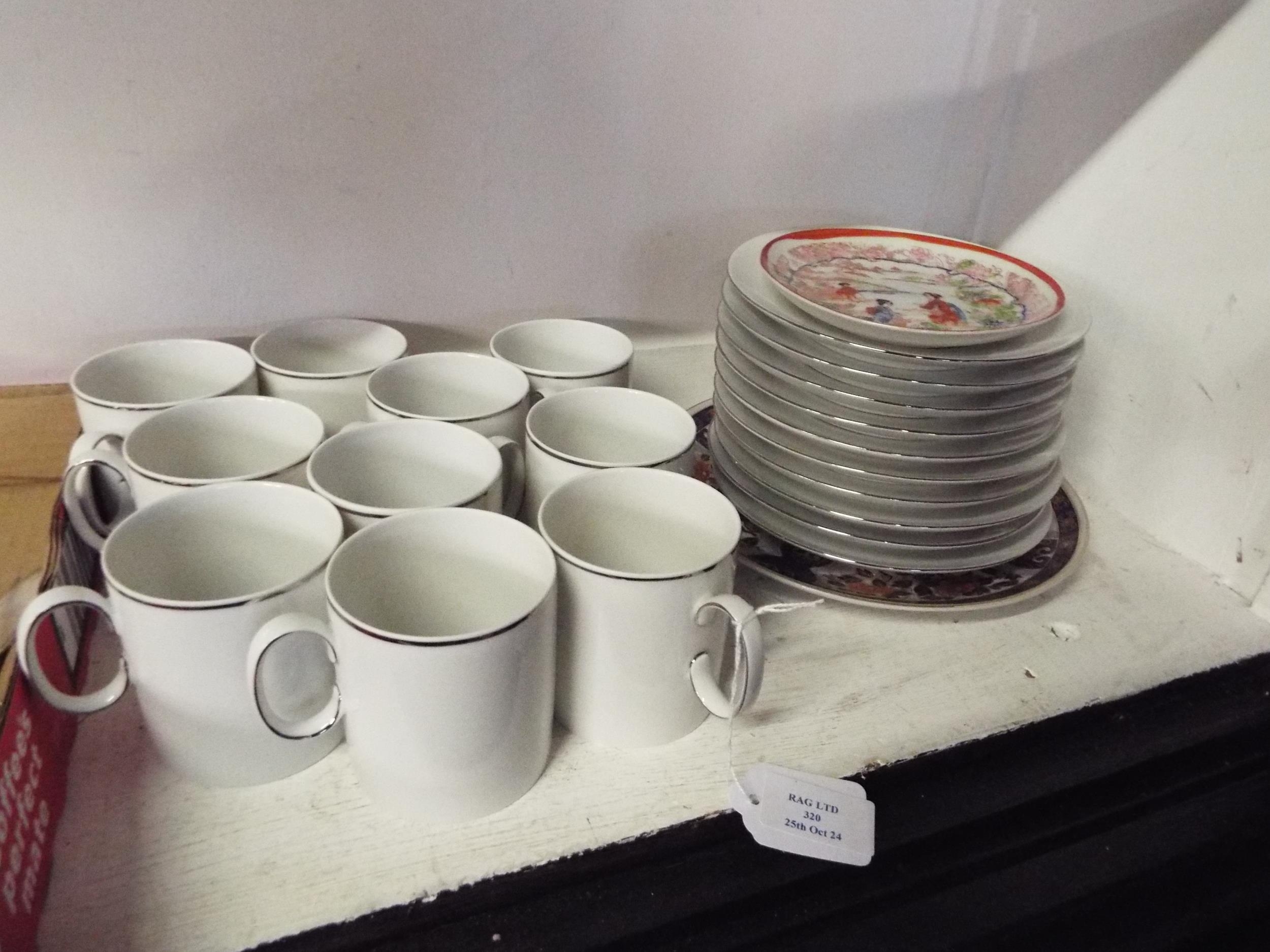 Two Oriental plates together with Thomas of Germany cups and saucers with silver coloured rim's