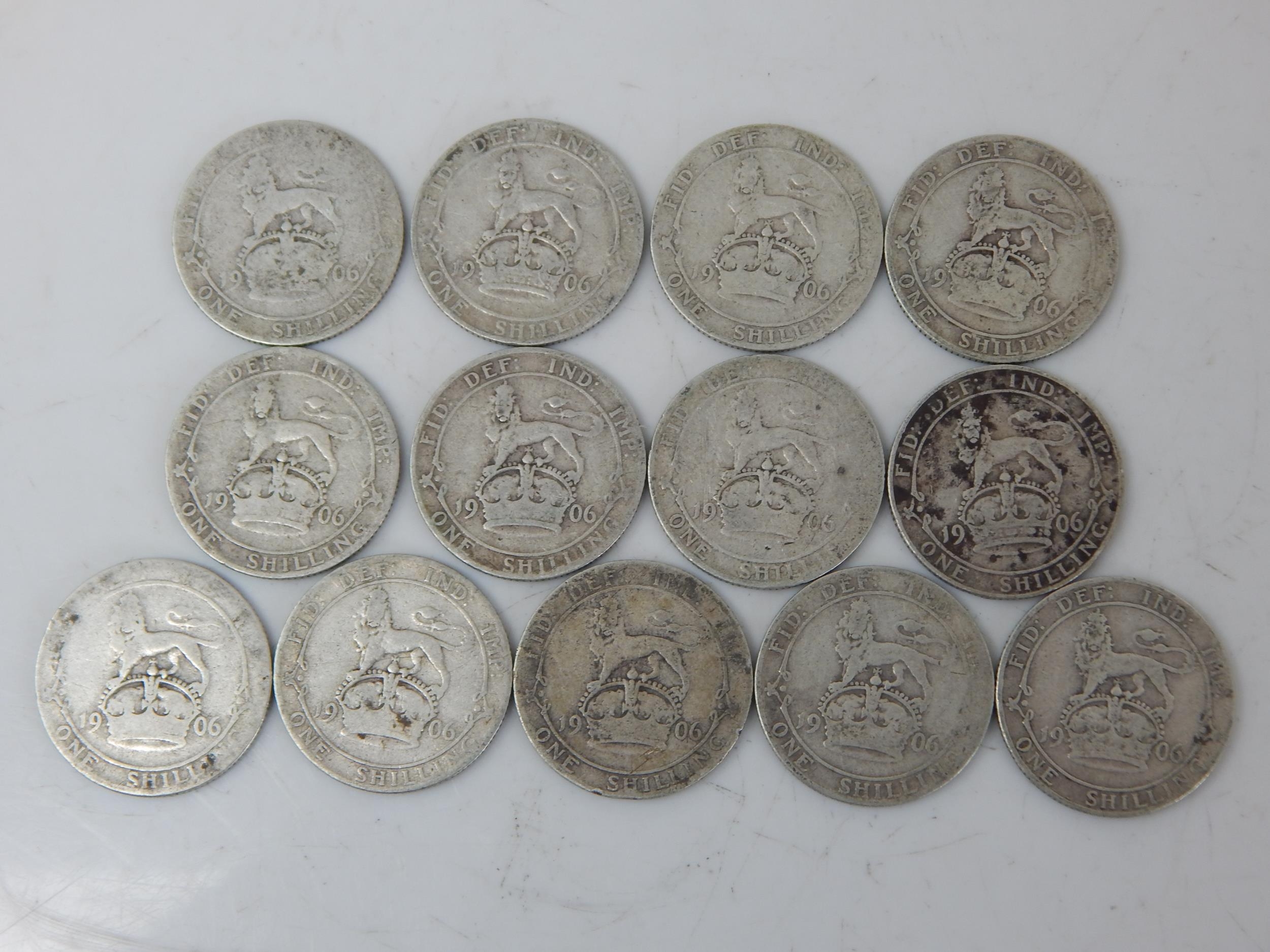 Hoard of 13 x Edward VII Silver Shillings all dated 1906 (lot)