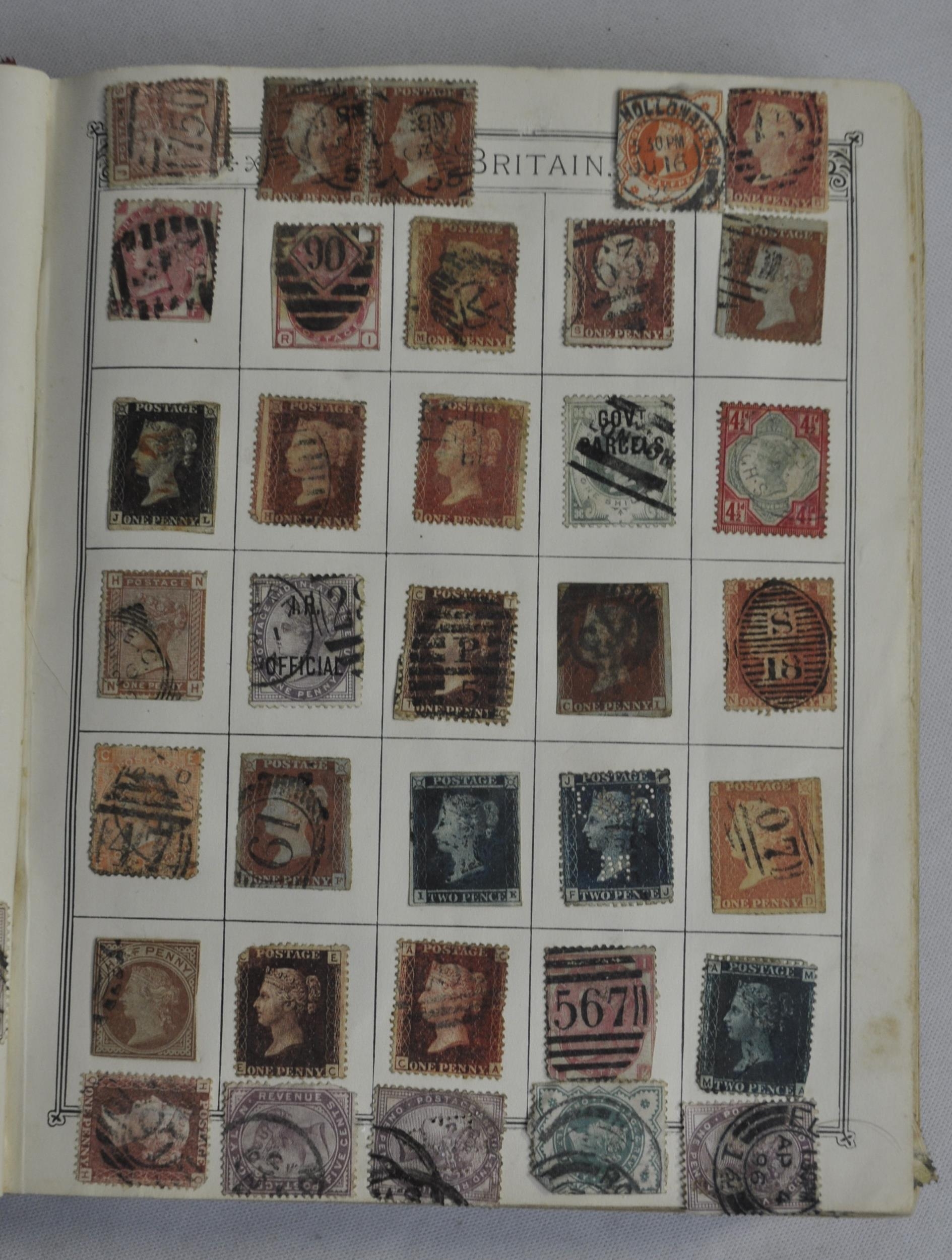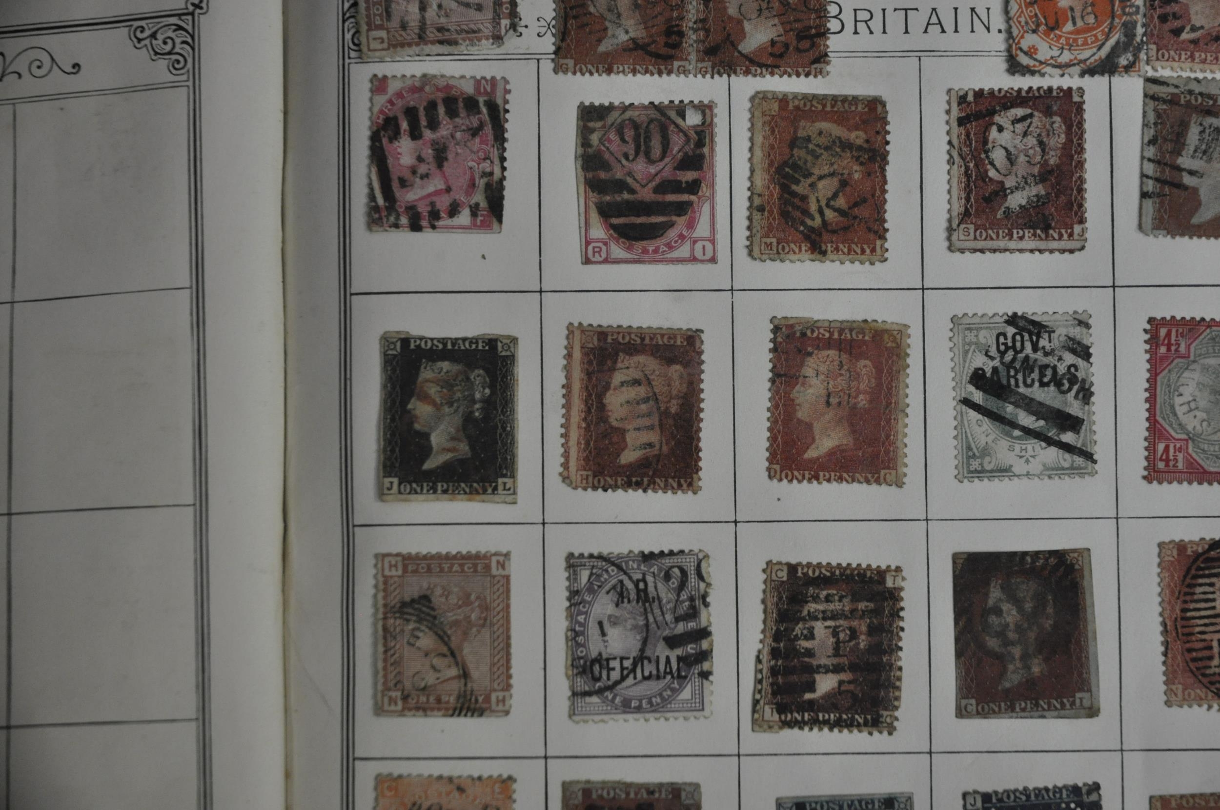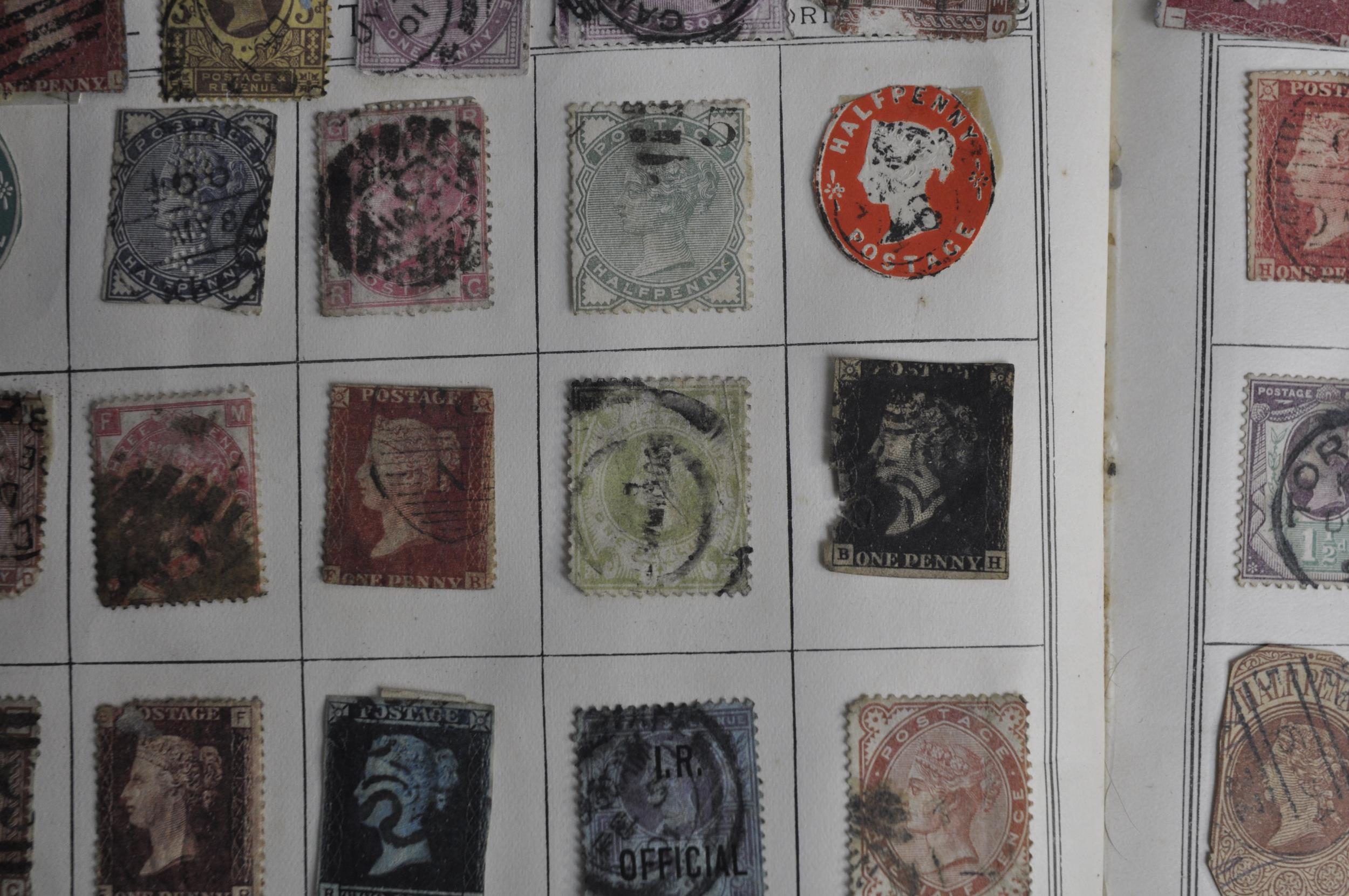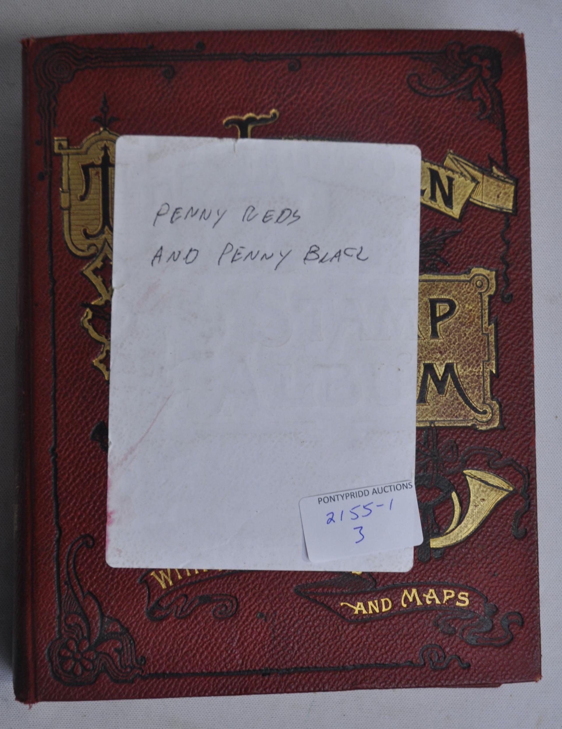 STAMP ALBUM AND STAMPS INCLUDING PENNY BLACK AND PENNY RED