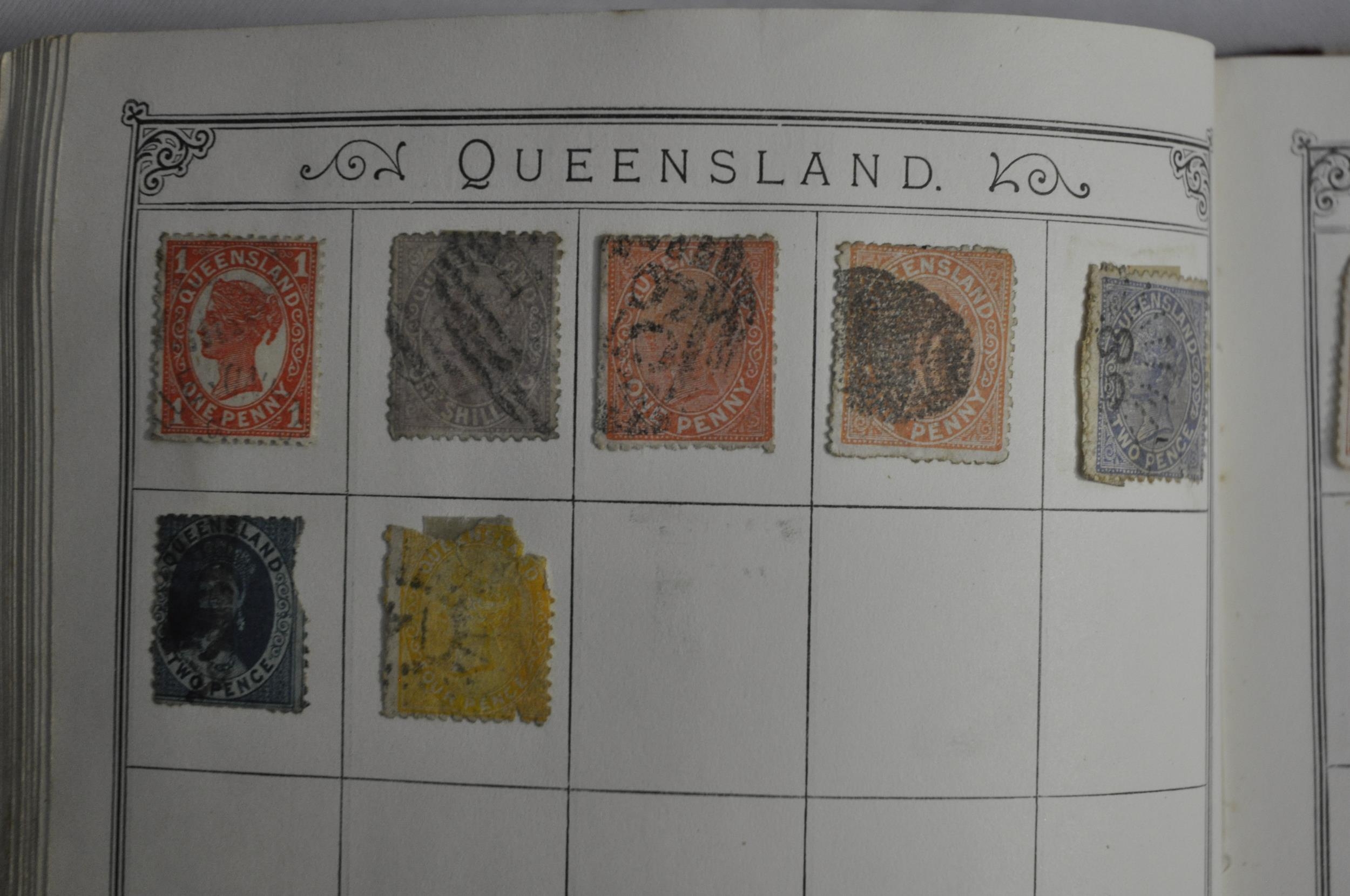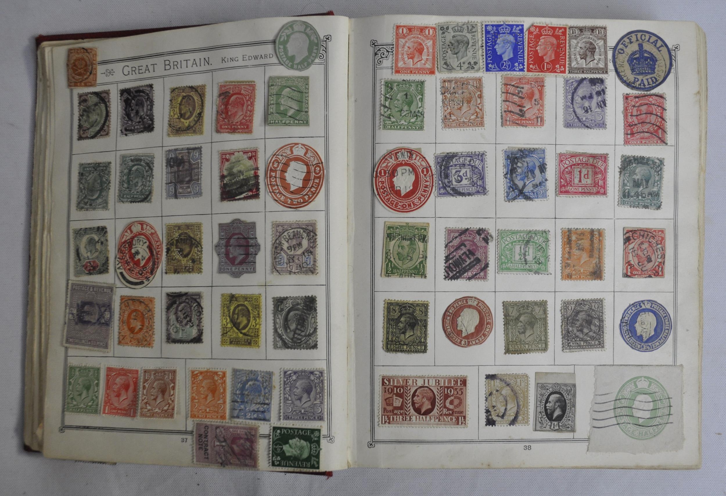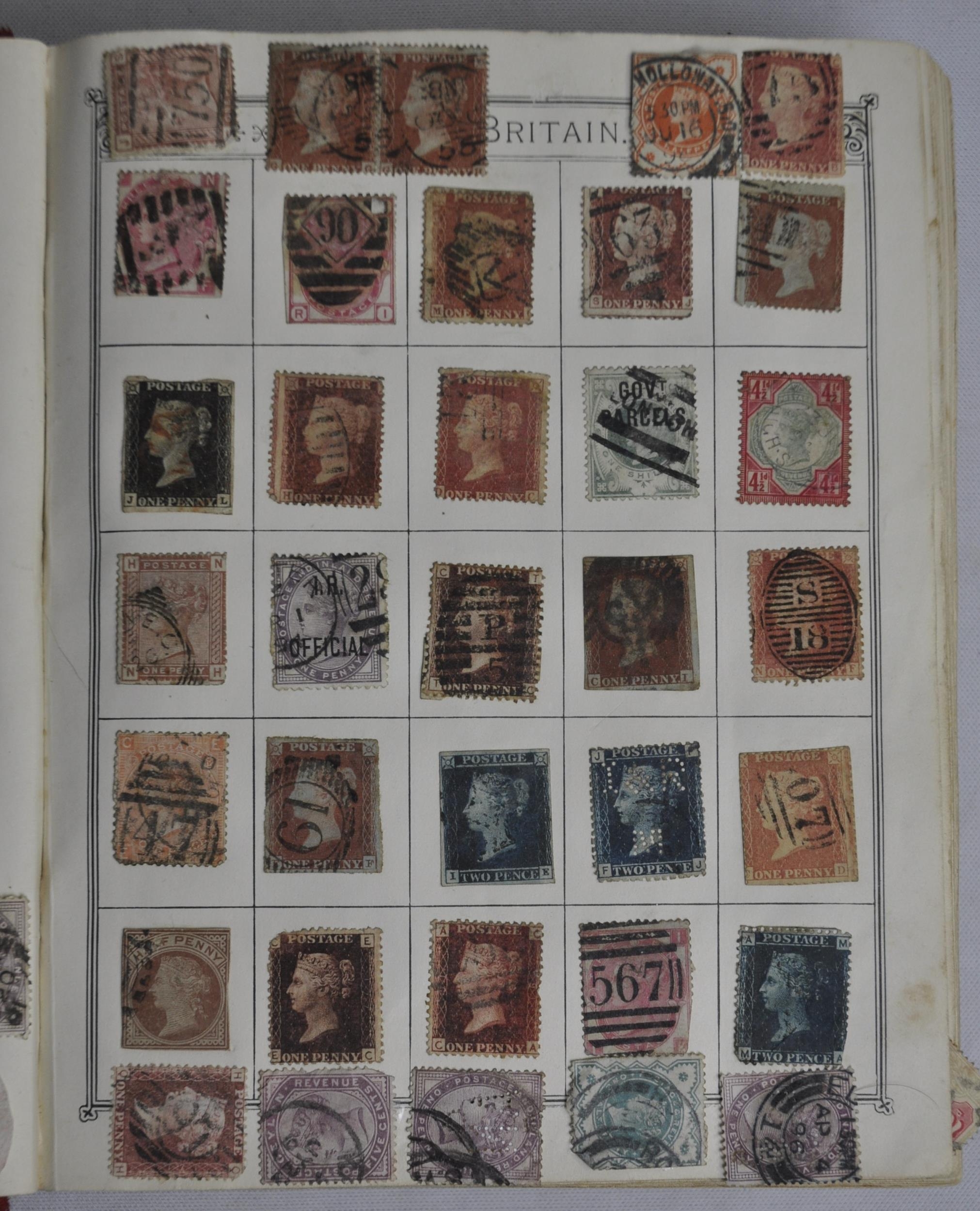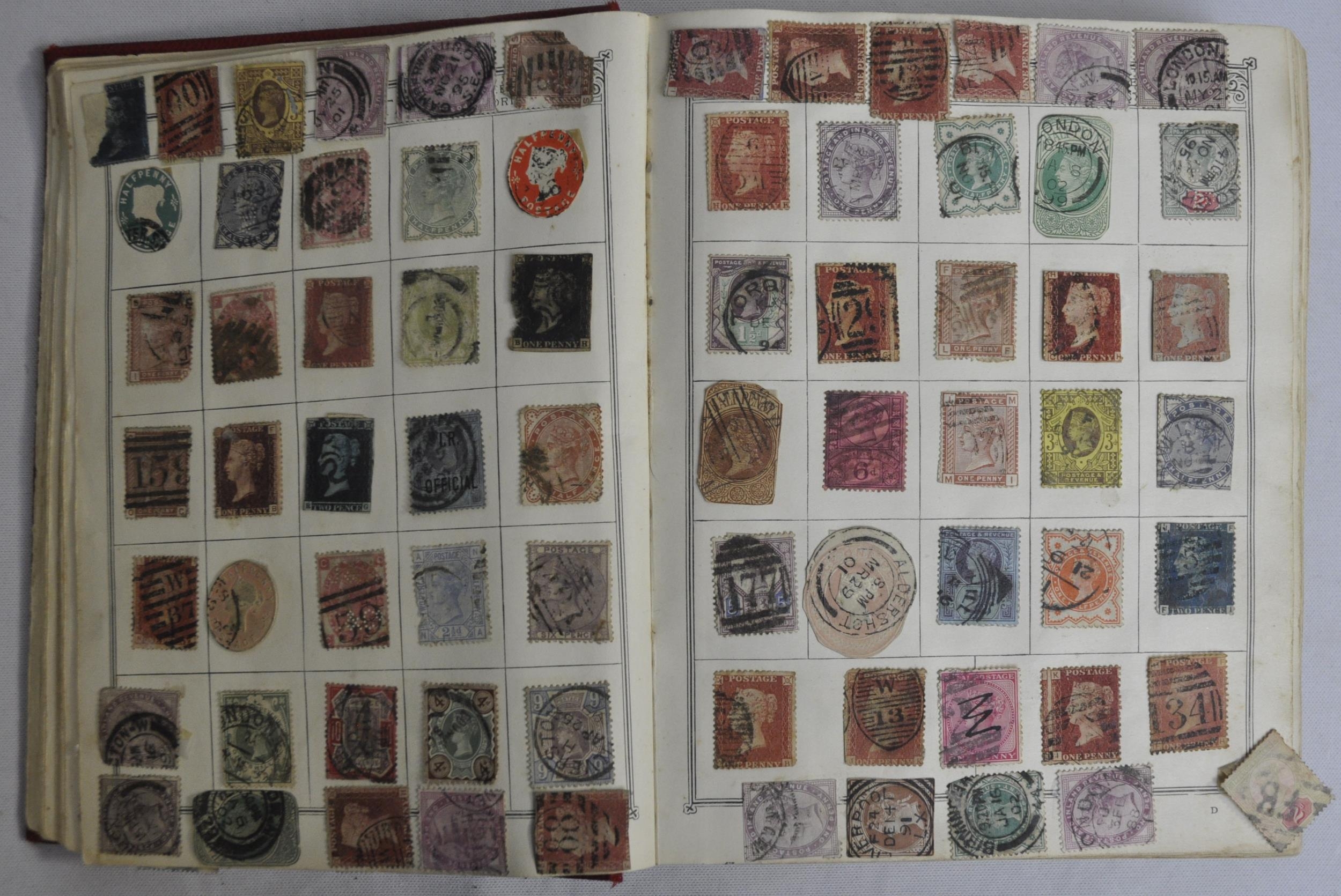 STAMP ALBUM AND STAMPS INCLUDING PENNY BLACK AND PENNY RED