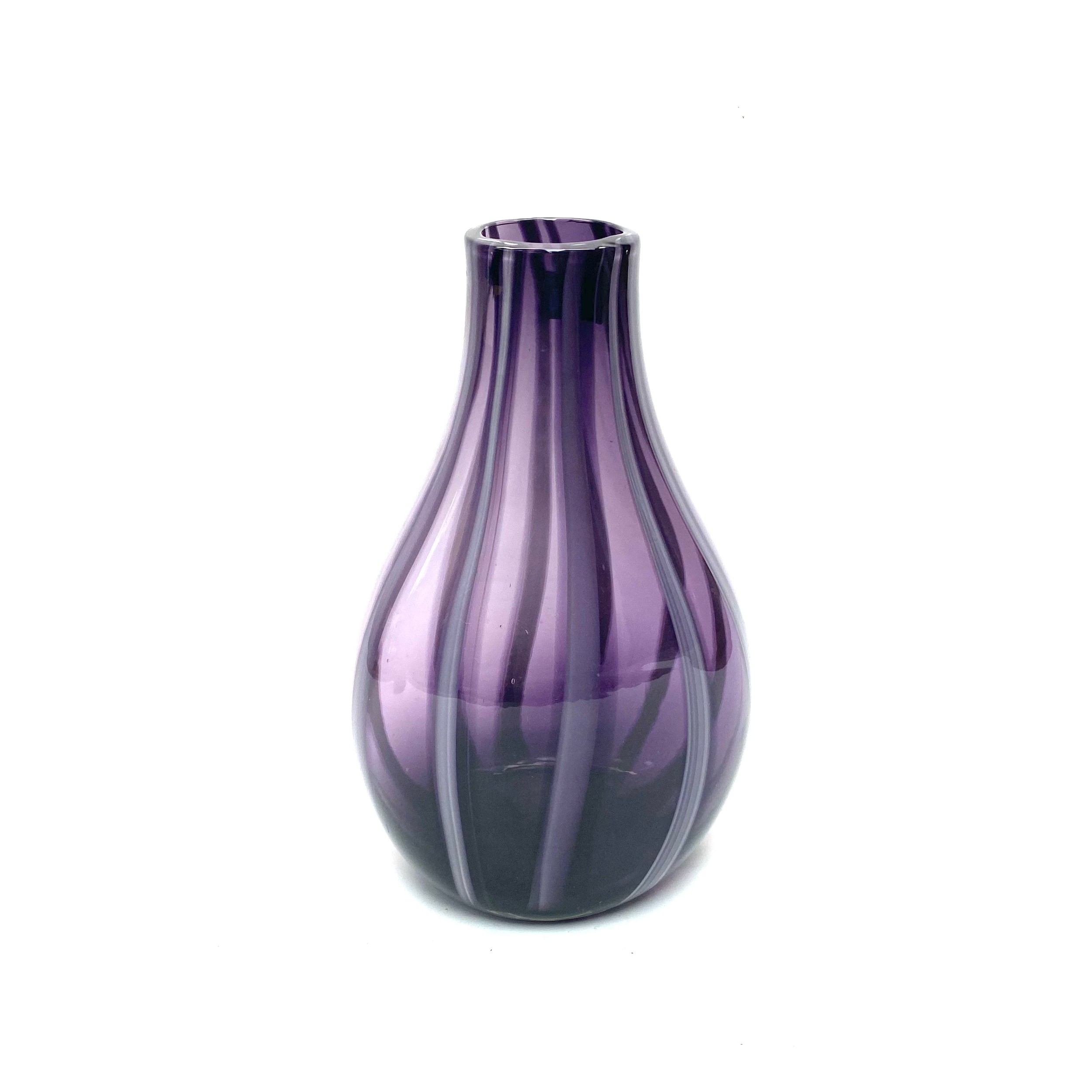 Vintage Murano style art glass purple and white wave teardrop vase; 36cm.
