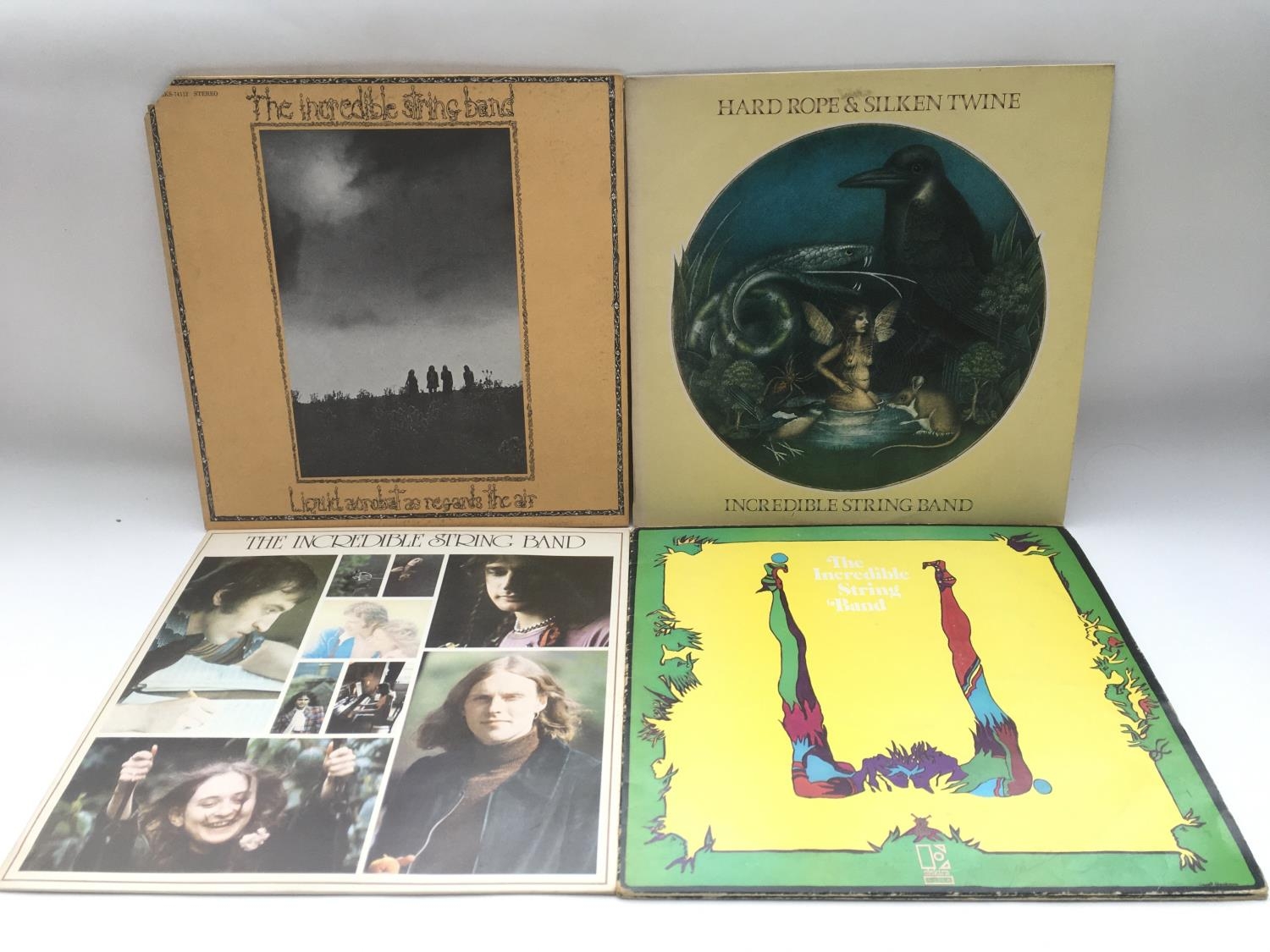 Four LPs by The Incredible String Band comprising 'Earthspan', 'U', 'Liquid Acrobat As Regards The Air' and 'Hard Rope & Silken Twine'.