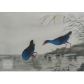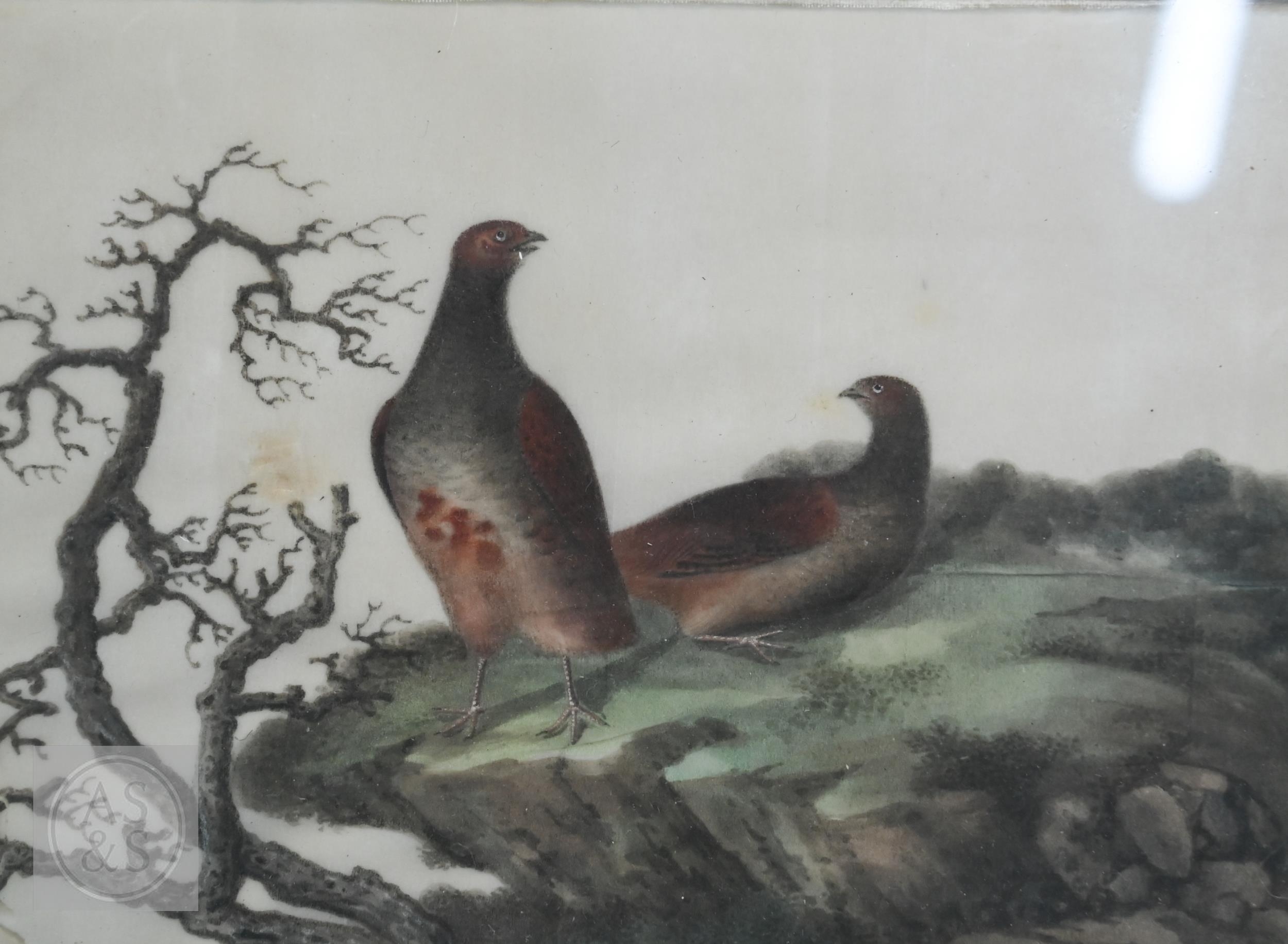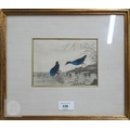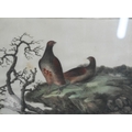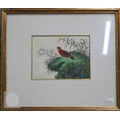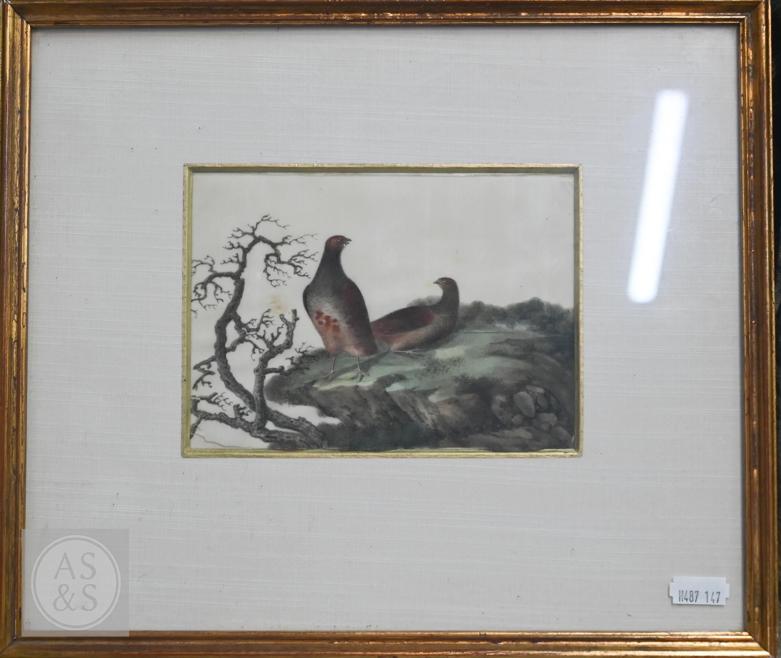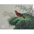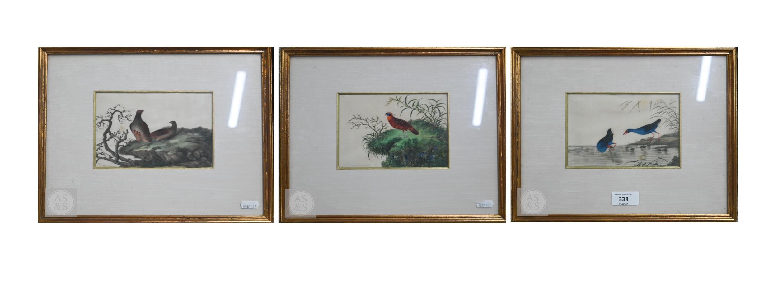 Three early 20th century Chinese export pith paintings of birds, late Qing or Republic period, mounted framed and glazed, image size - 16 cm x 12 cm (3)