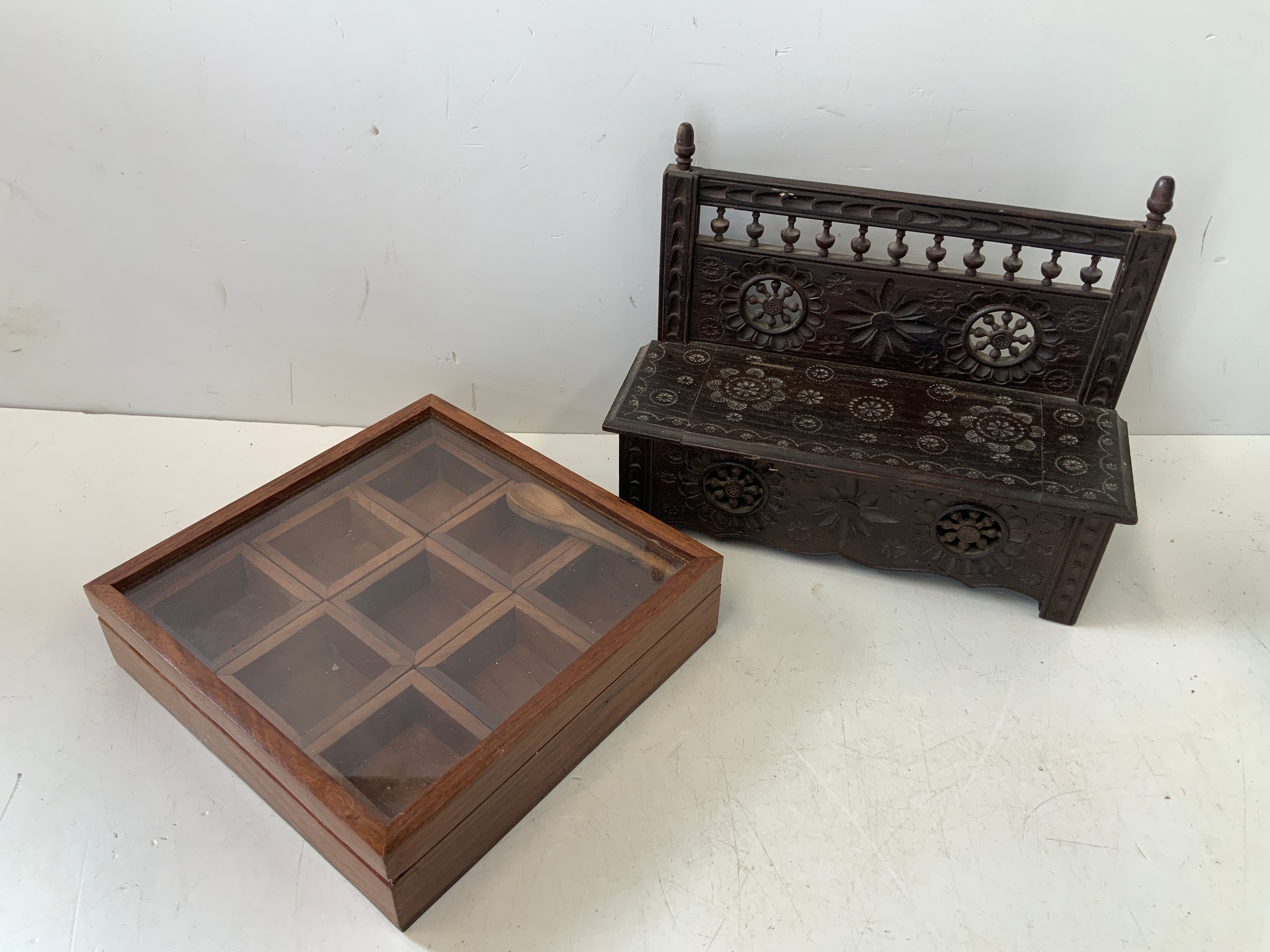 Miniature Carved Bench and Other