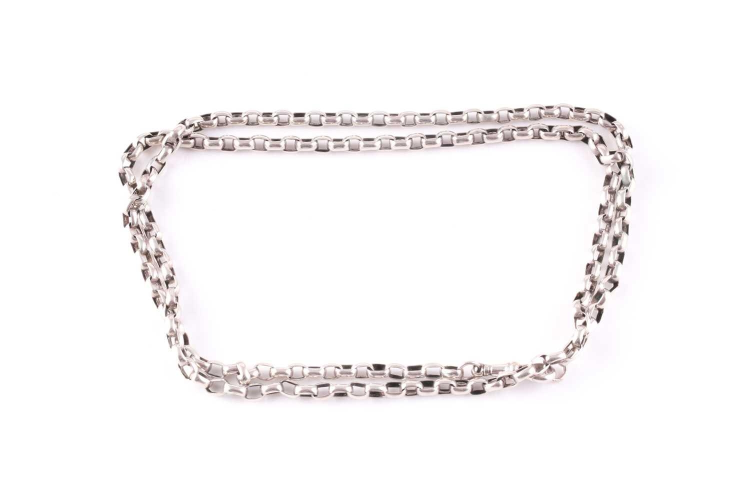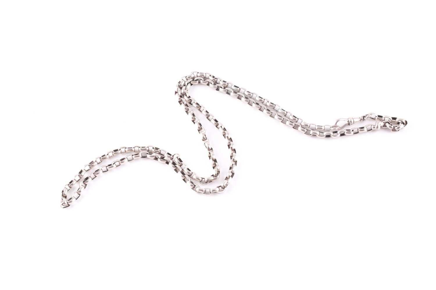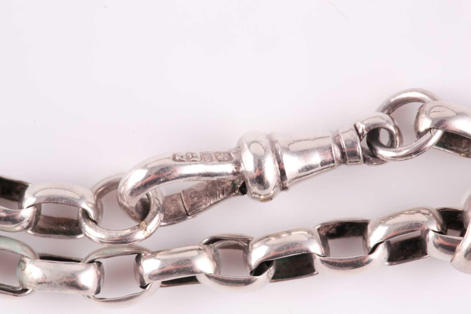An Edwardian silver belcher chain, Chester 1903, the cable links to a sprung clip connection; 81cm, 26.5 grams