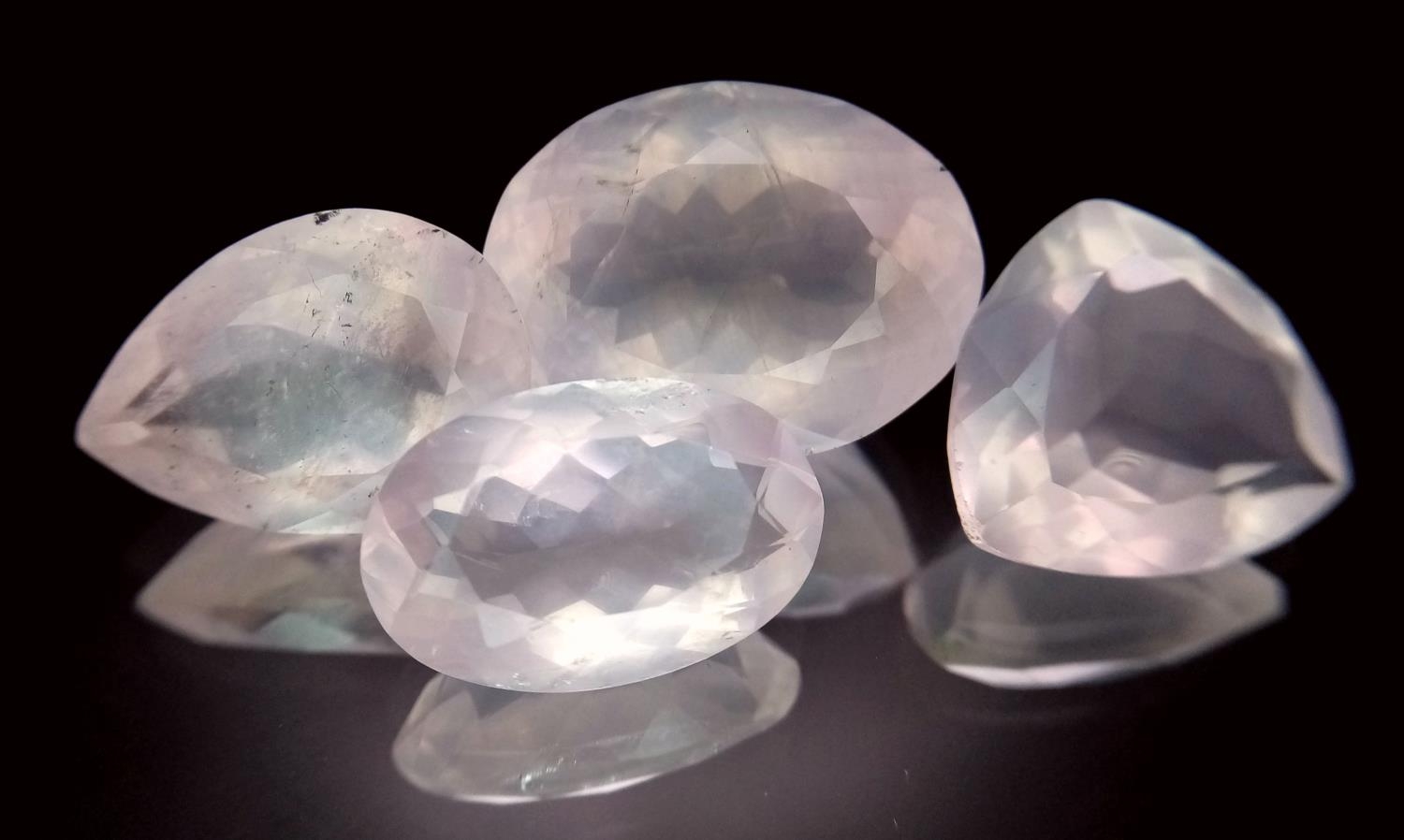 A Lot of 4 Pcs of 52.40ct Faceted Rose Quartz Gemstones , Mix Shapes.