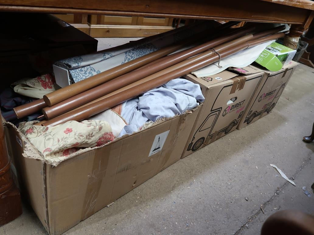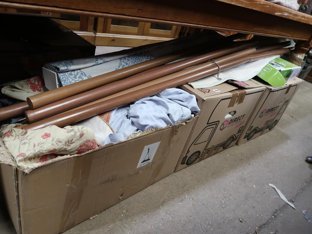 LARGE COLLECTION OF CURTAINS, POLES, BLINDS ETC