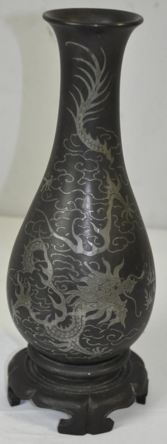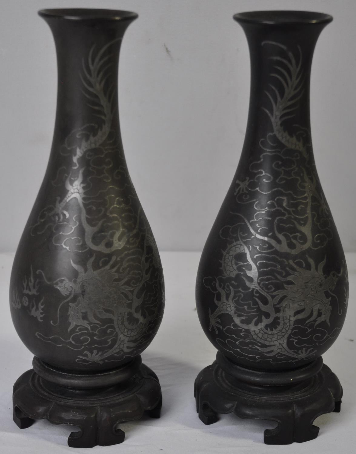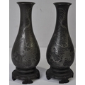 PAIR OF JAPANESE VASES LACQUERED AND INLAID WITH SILVER c1890