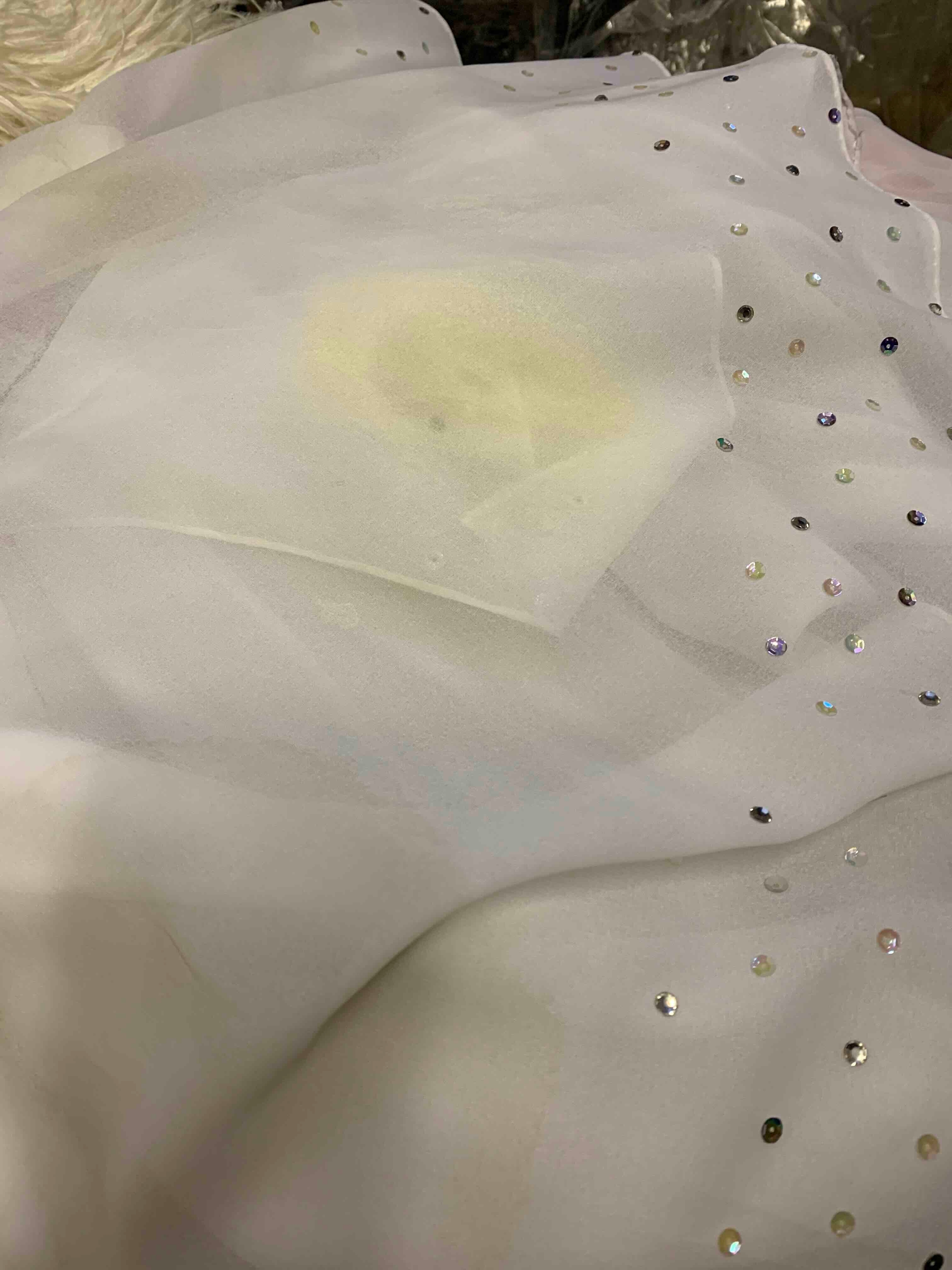 of chiffon effect fabric, embellished with diamanté, metal zip fastening to back, waist flat approximately 36cm