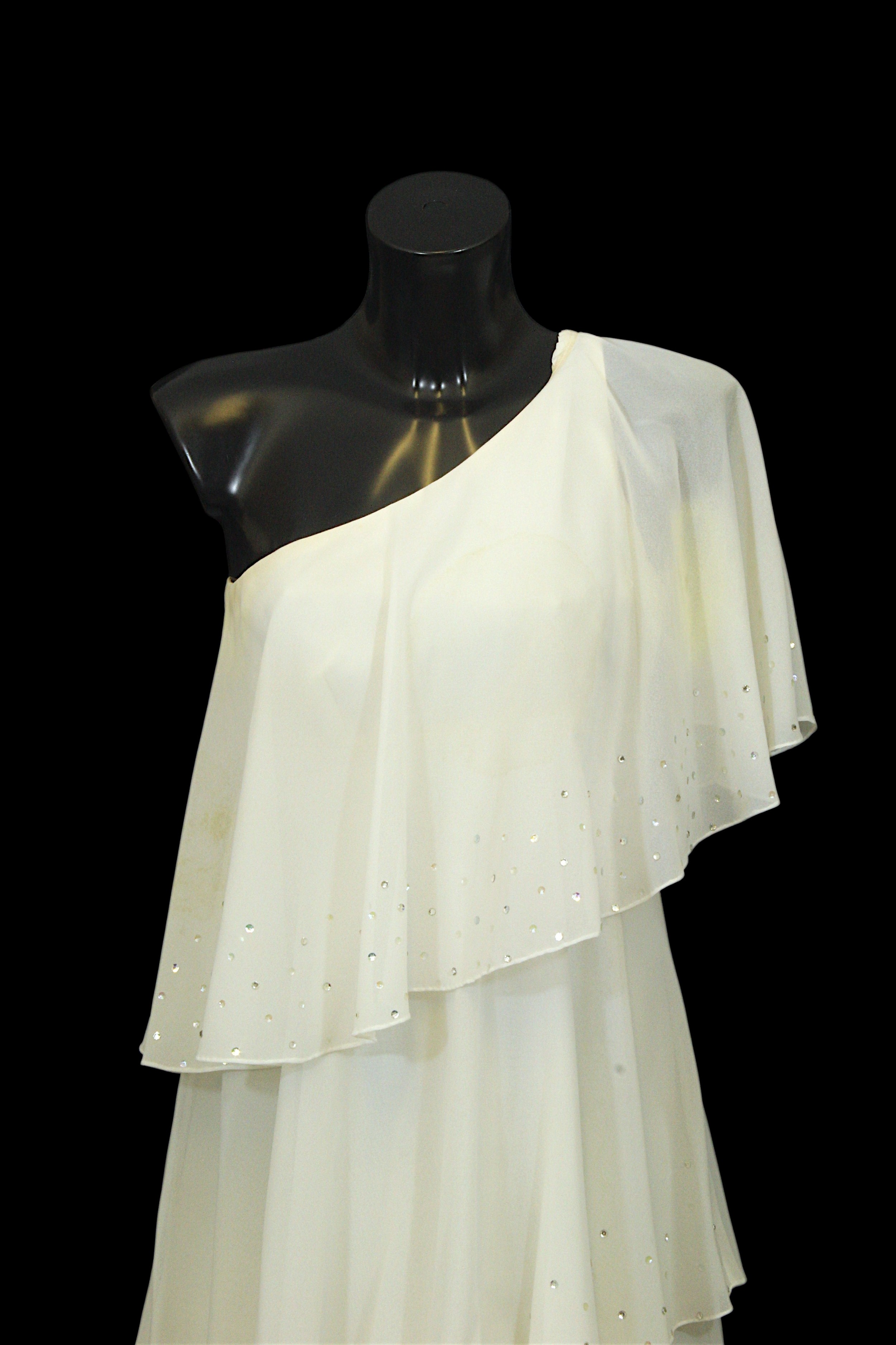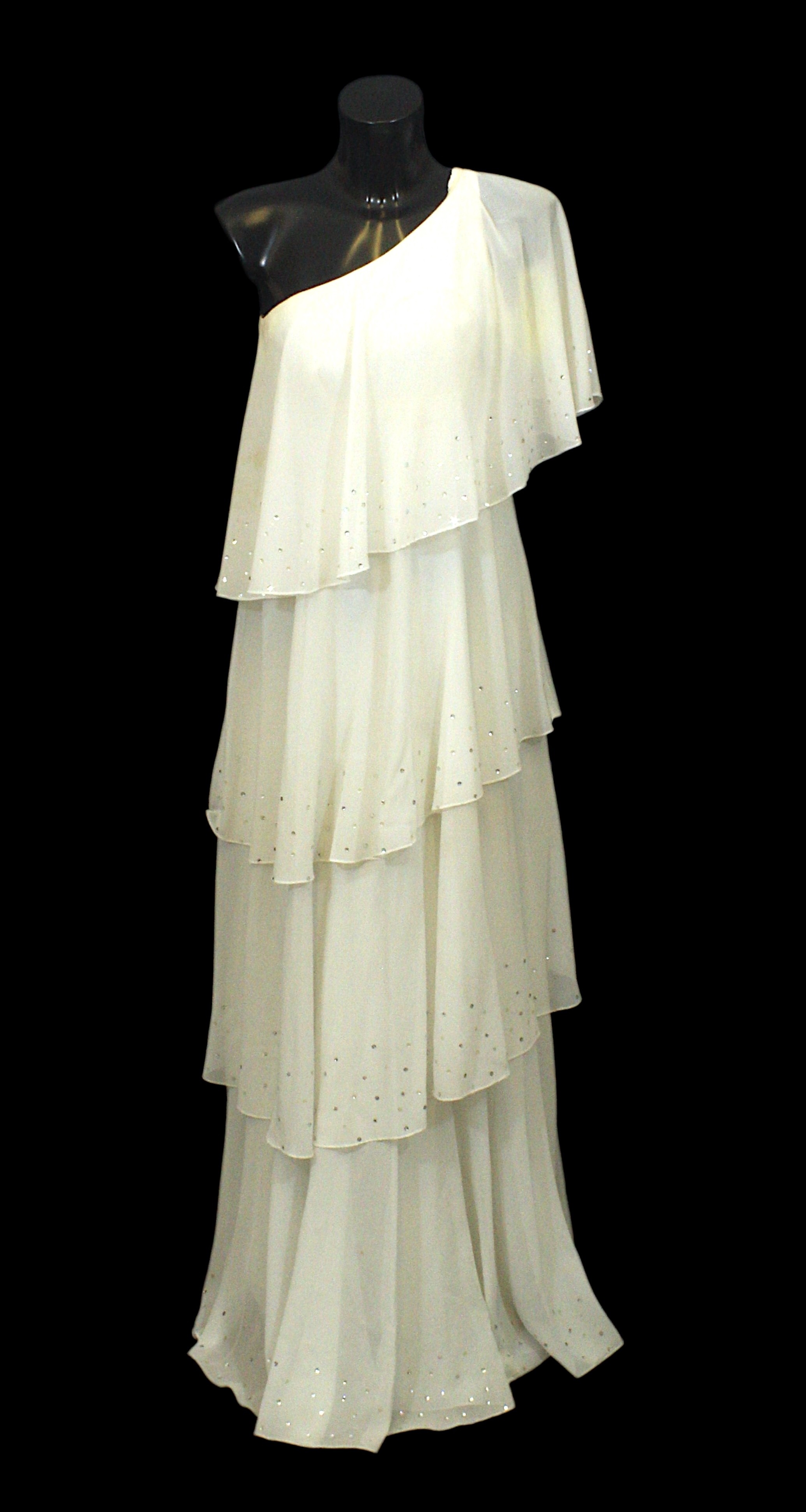 Vintage Fashion / Stage Wear: A white asymmetric maxi dress,
