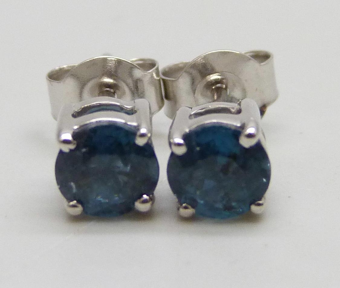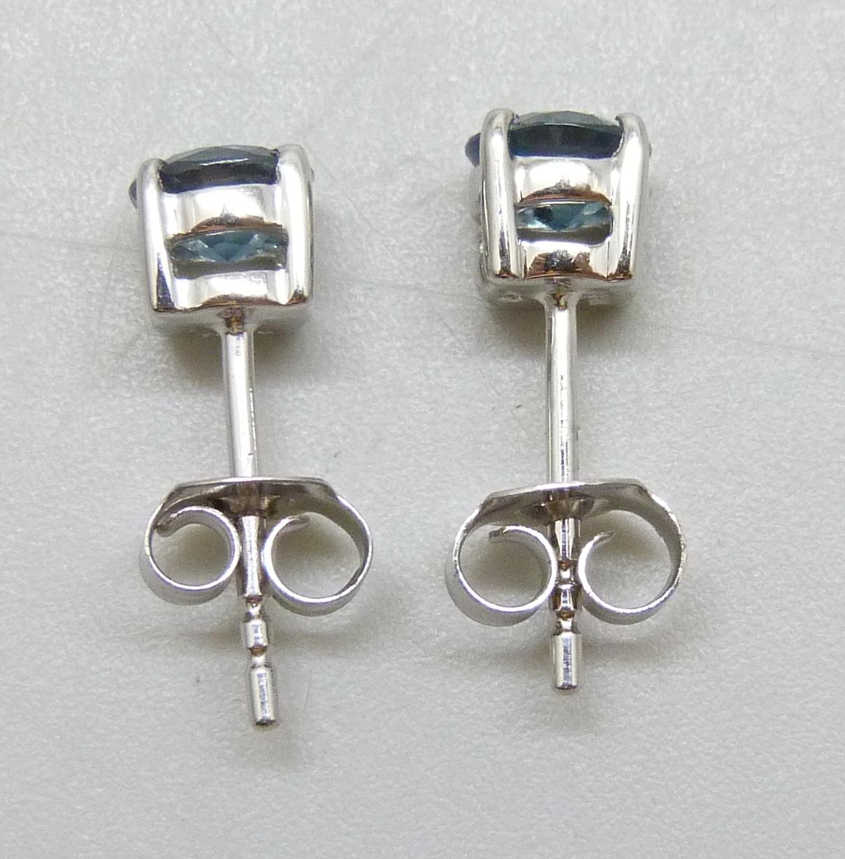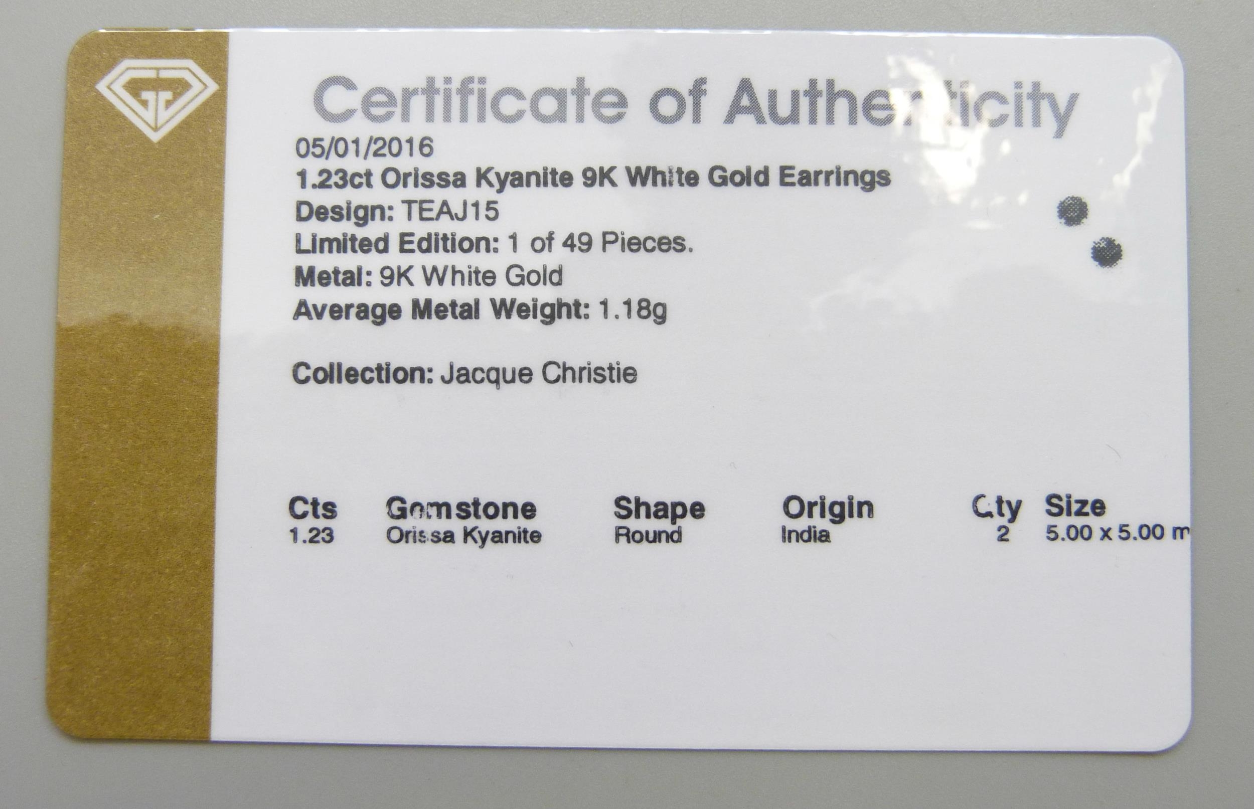 A pair of 9ct white gold Orissa kyanite 1.23ct round stud earrings, 1.2g total