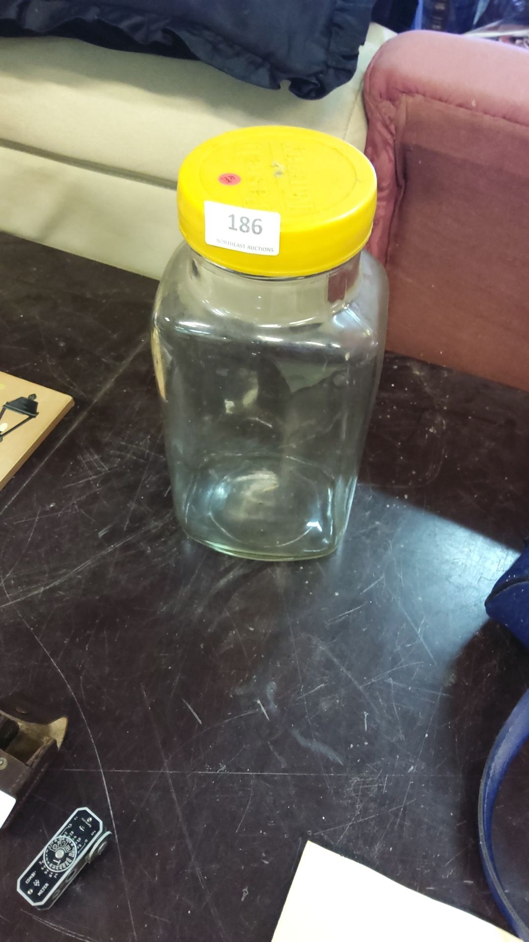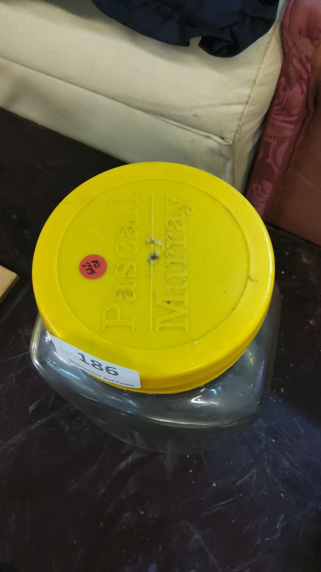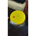 Pascal Murray clear glass sweetie jar with a yellow lid.