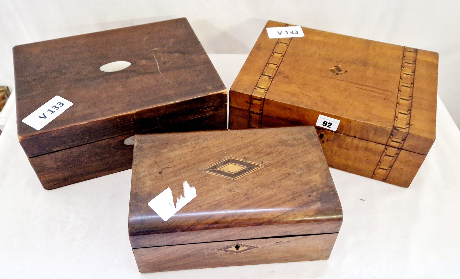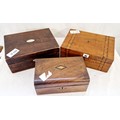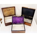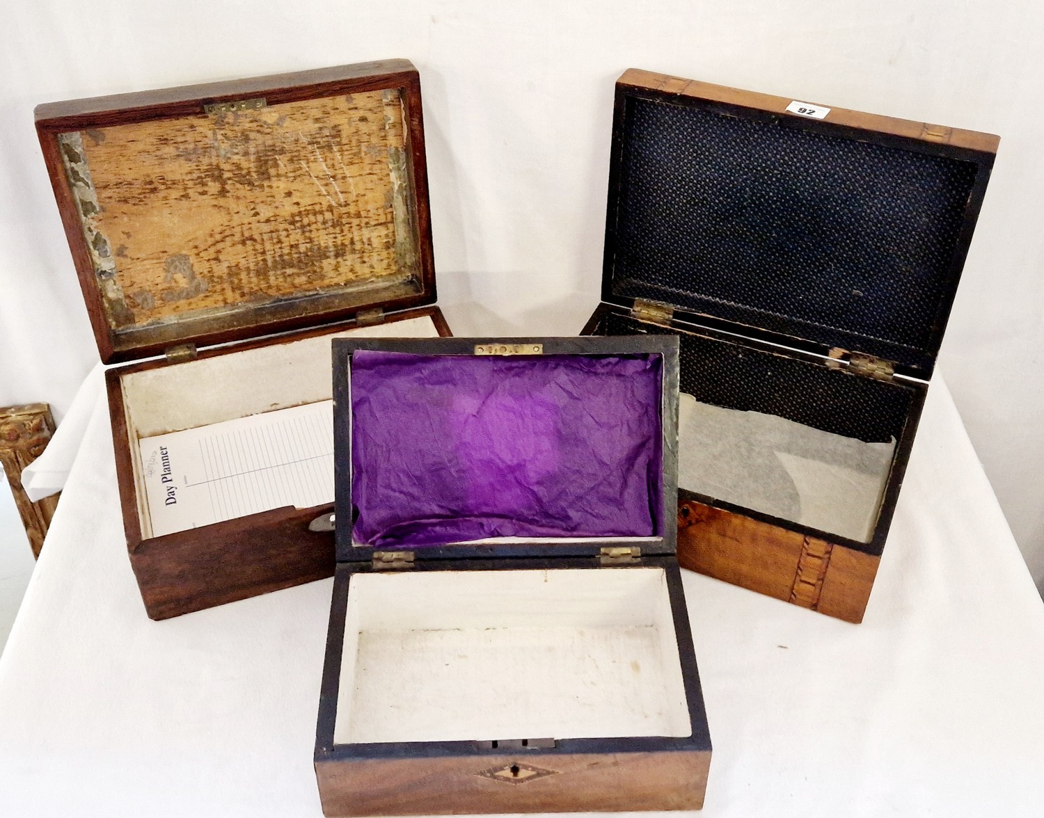 Two Victorian writing boxes and mahogany jewellery box, all with no interior