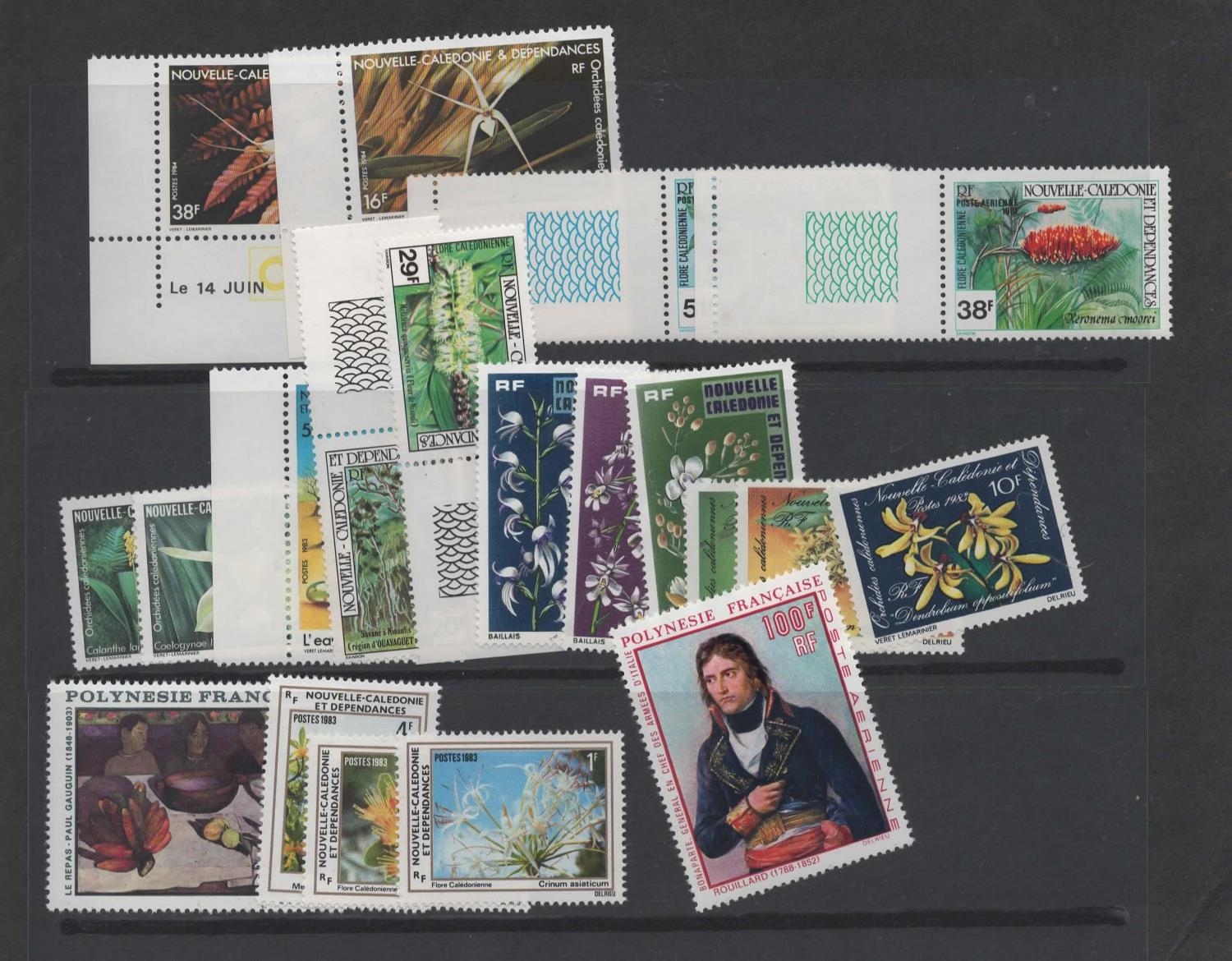 French Cols Polynesia incl 1909 100f Napoleon & New Caledonia all u/m photo (20) (S)