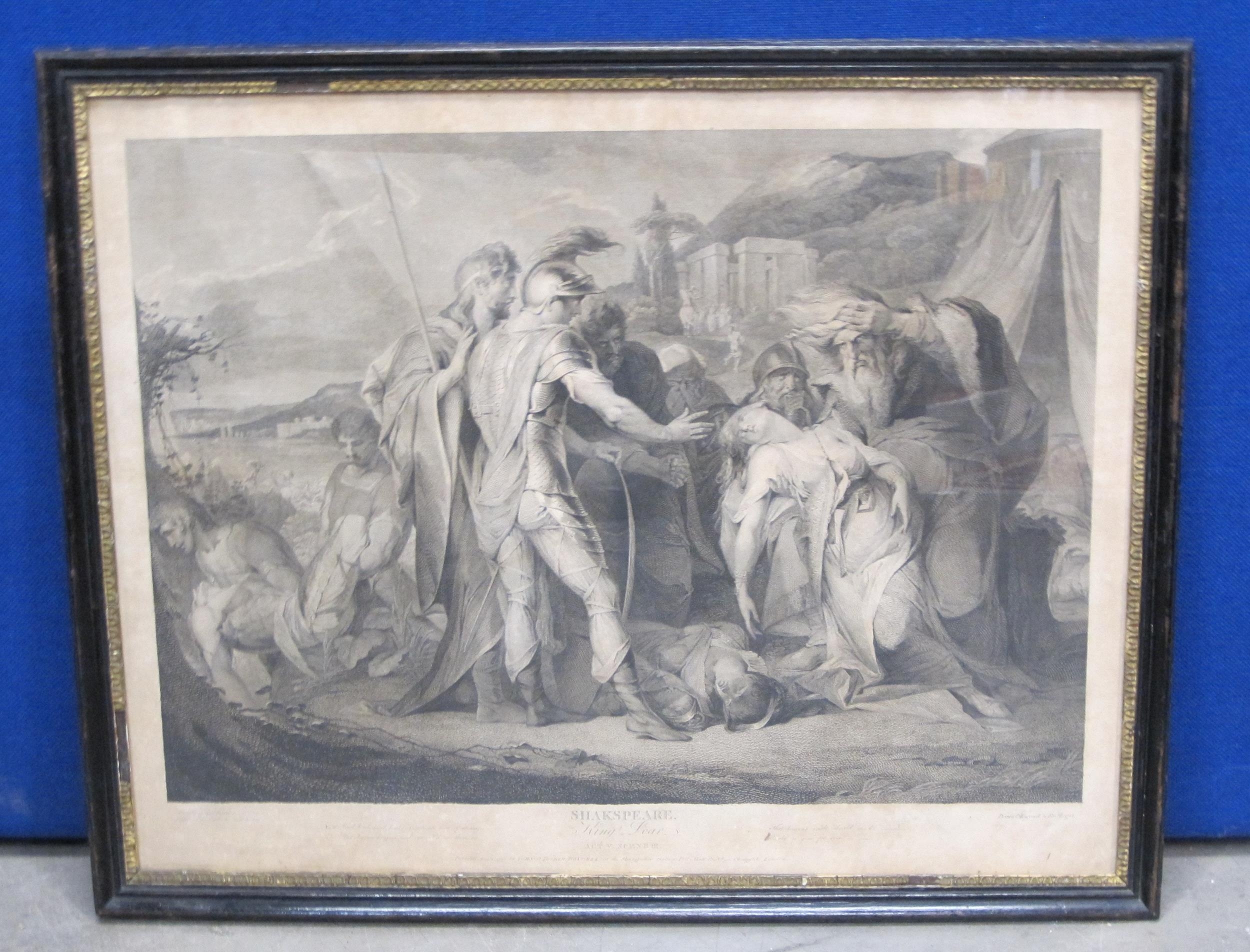 AFTER BENJAMIN WEST PRA. Shakespeare (King Lear, Act III, Scene IV), engraving by W. Sharp, 17½ x 23½in; together with eight other engravings of Shakespearian subjects after William Miller, Robert Smirke, Rev. Matthew Peters and others; nine (9)