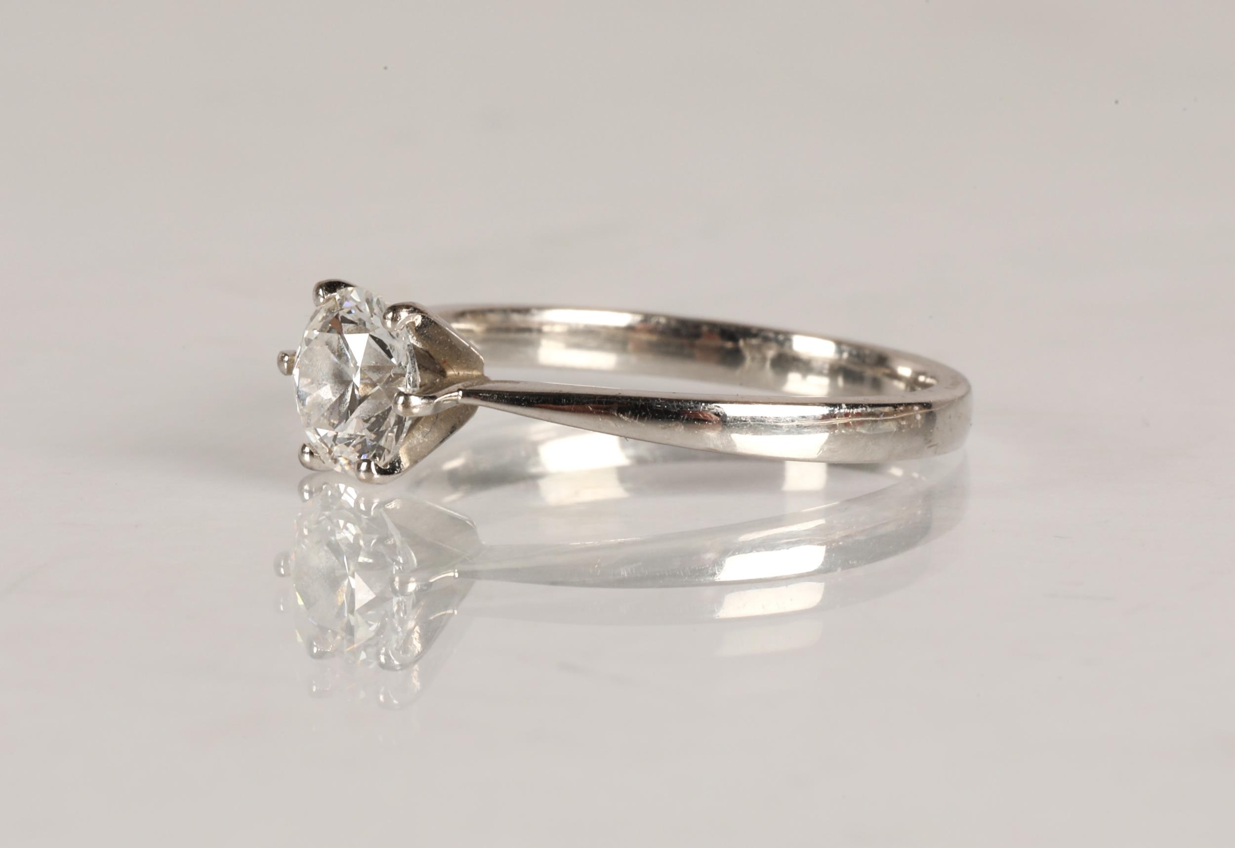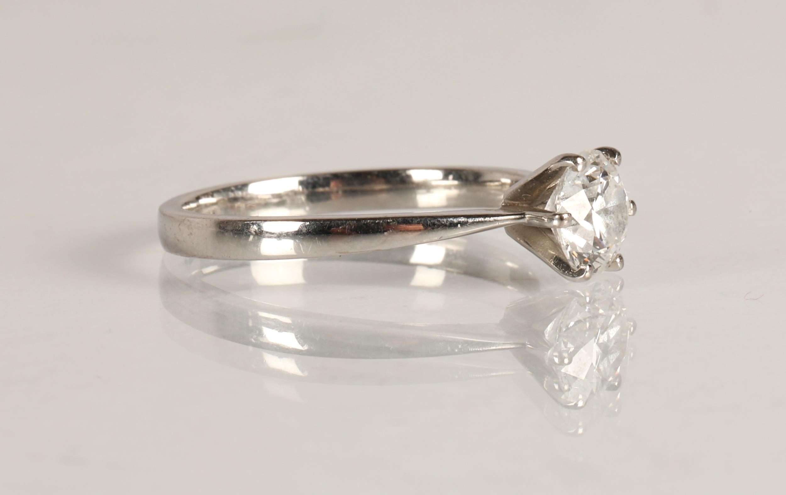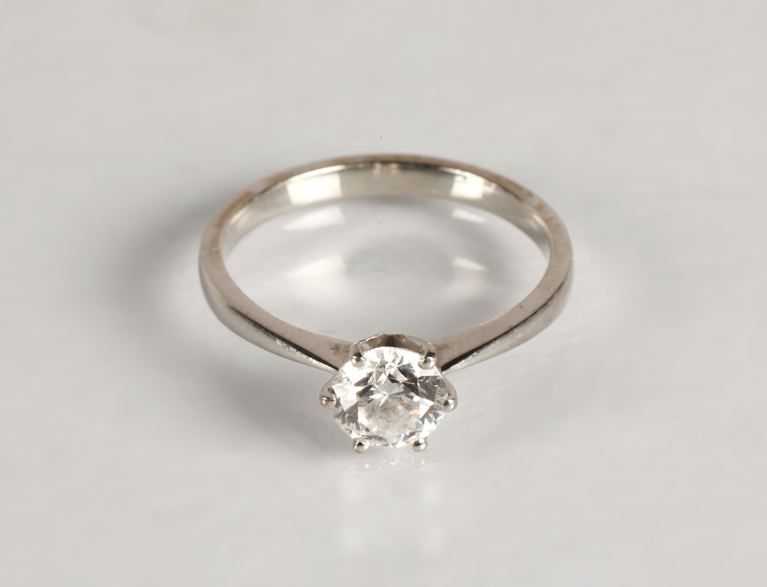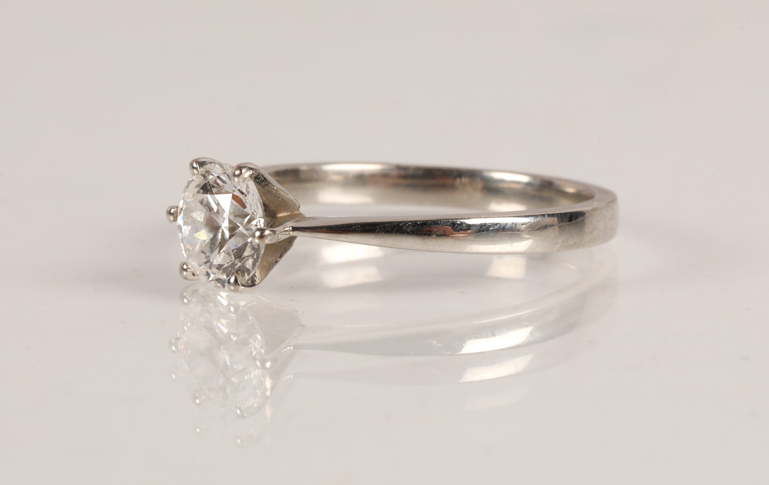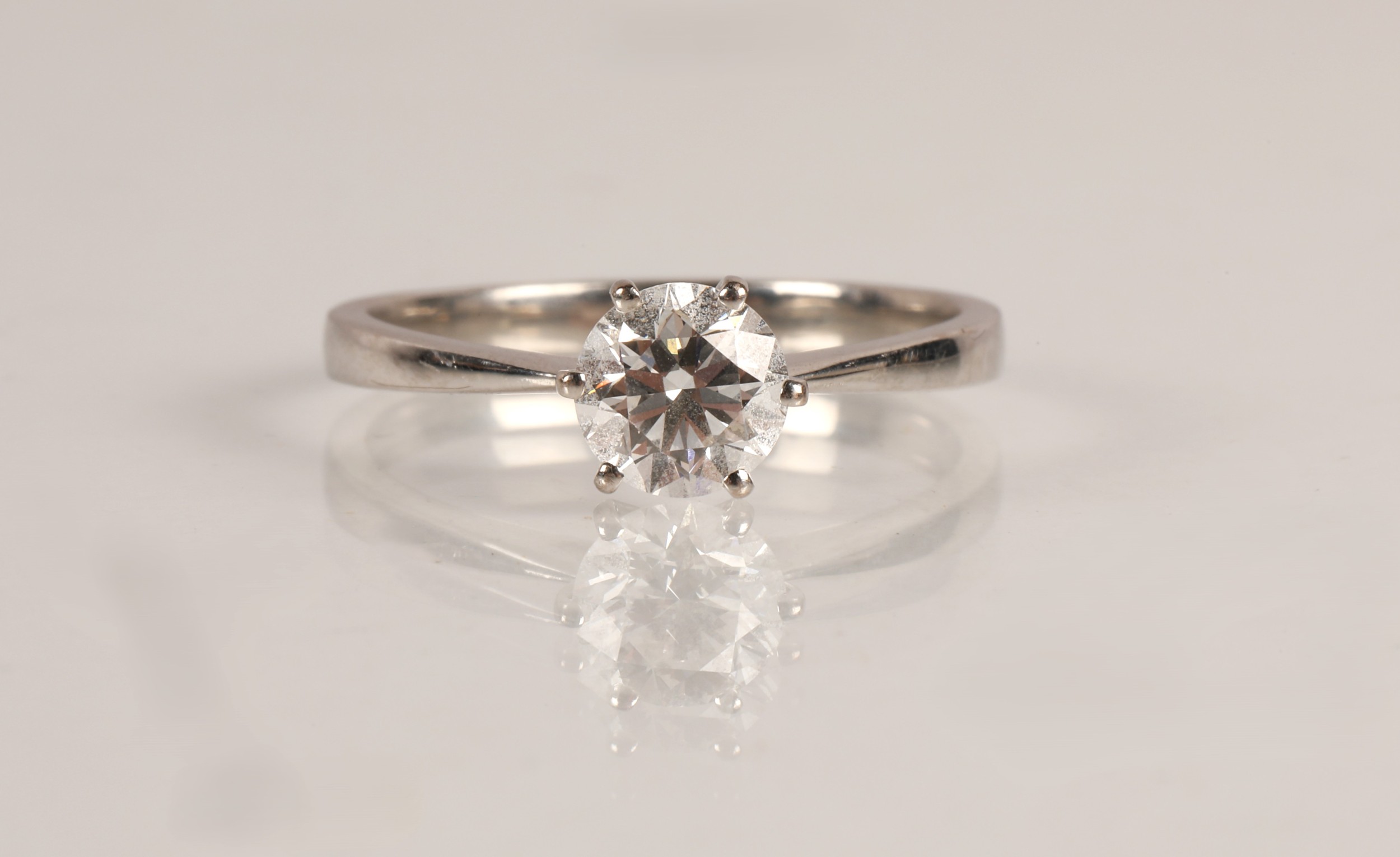 18ct white gold diamond solitaire engagement ring, lab grown diamond of approximately one carat. Ring size R, 3.5 grams