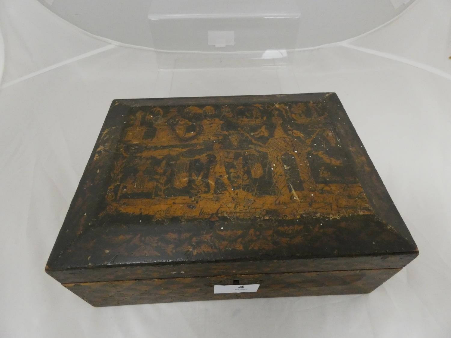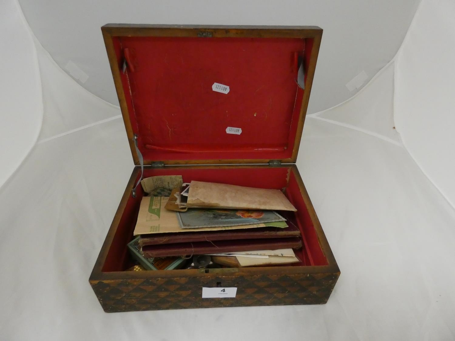 Oriental wooden box to include ephemera.