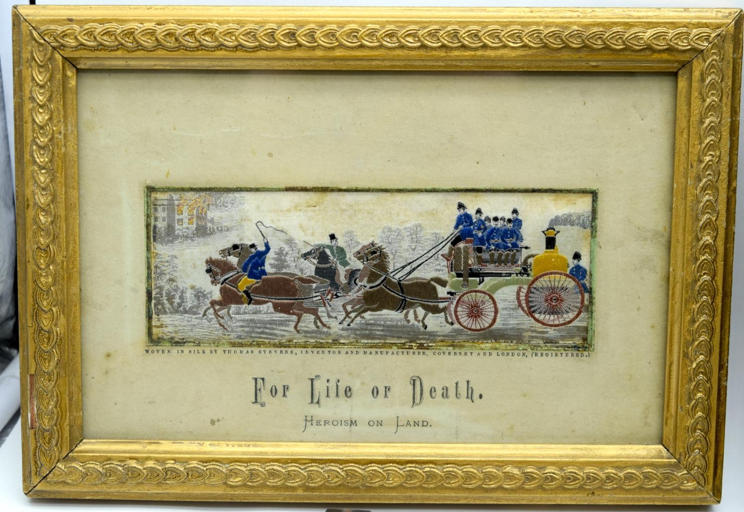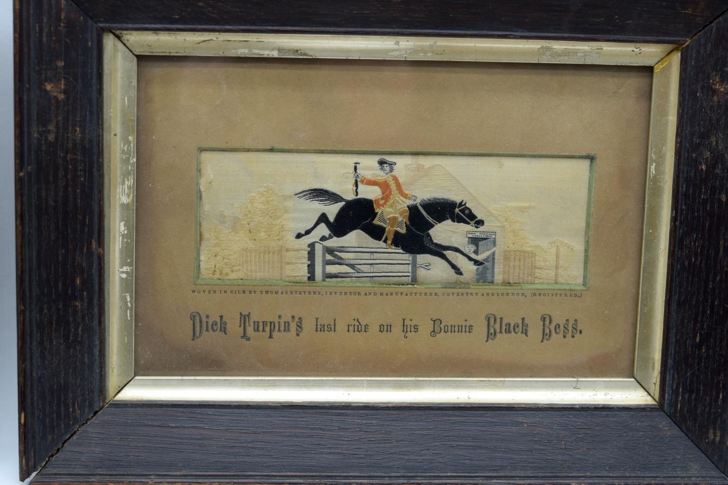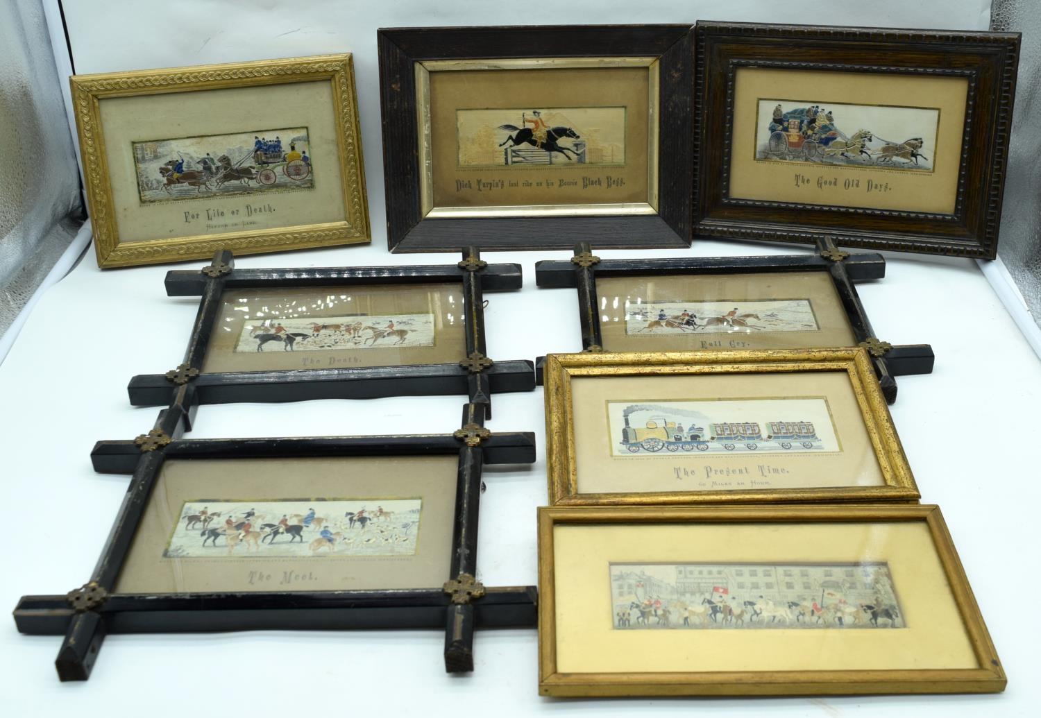 A collection of small Victorian Stevengraphs in woven silk by Thomas Stevens various subjects, hunting, Dick Turpin, Fire service etc 5 x 15cm (8).