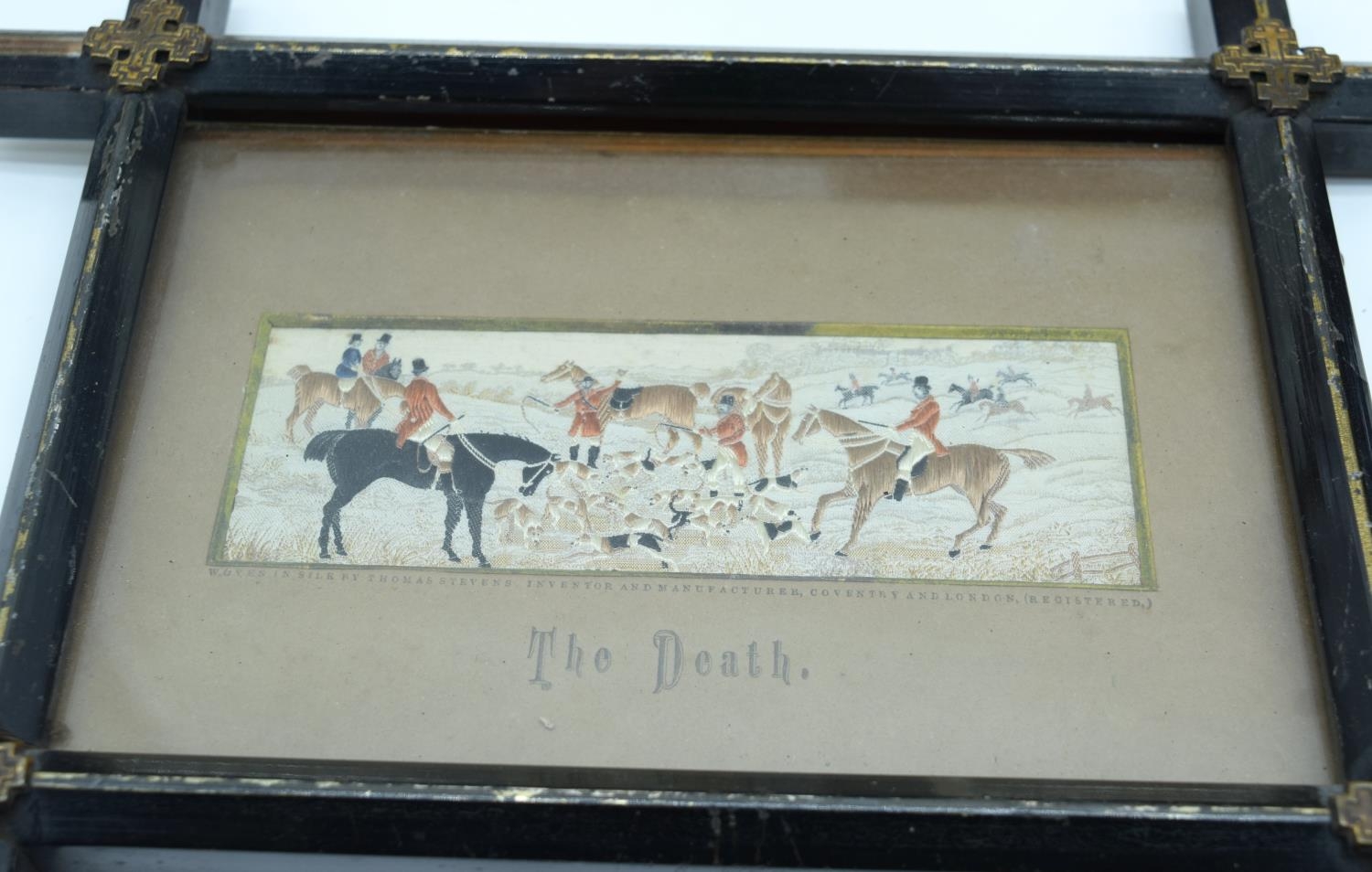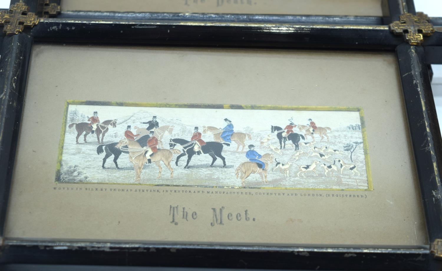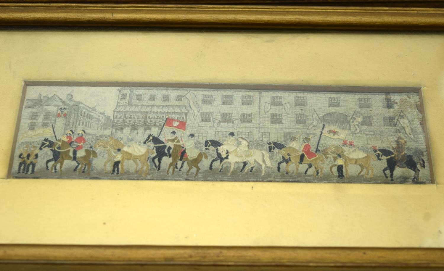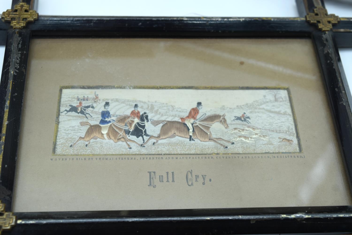 A collection of small Victorian Stevengraphs in woven silk by Thomas Stevens various subjects, hunting, Dick Turpin, Fire service etc 5 x 15cm (8).