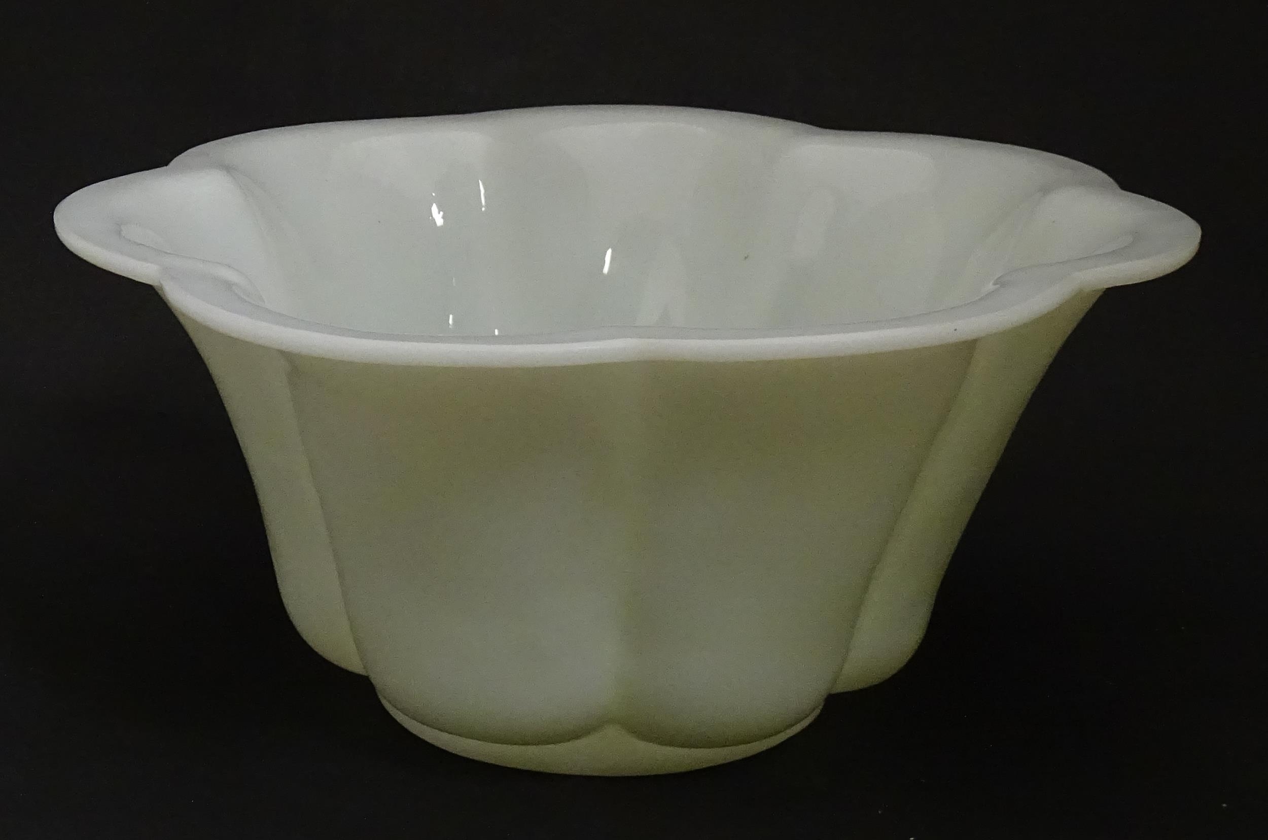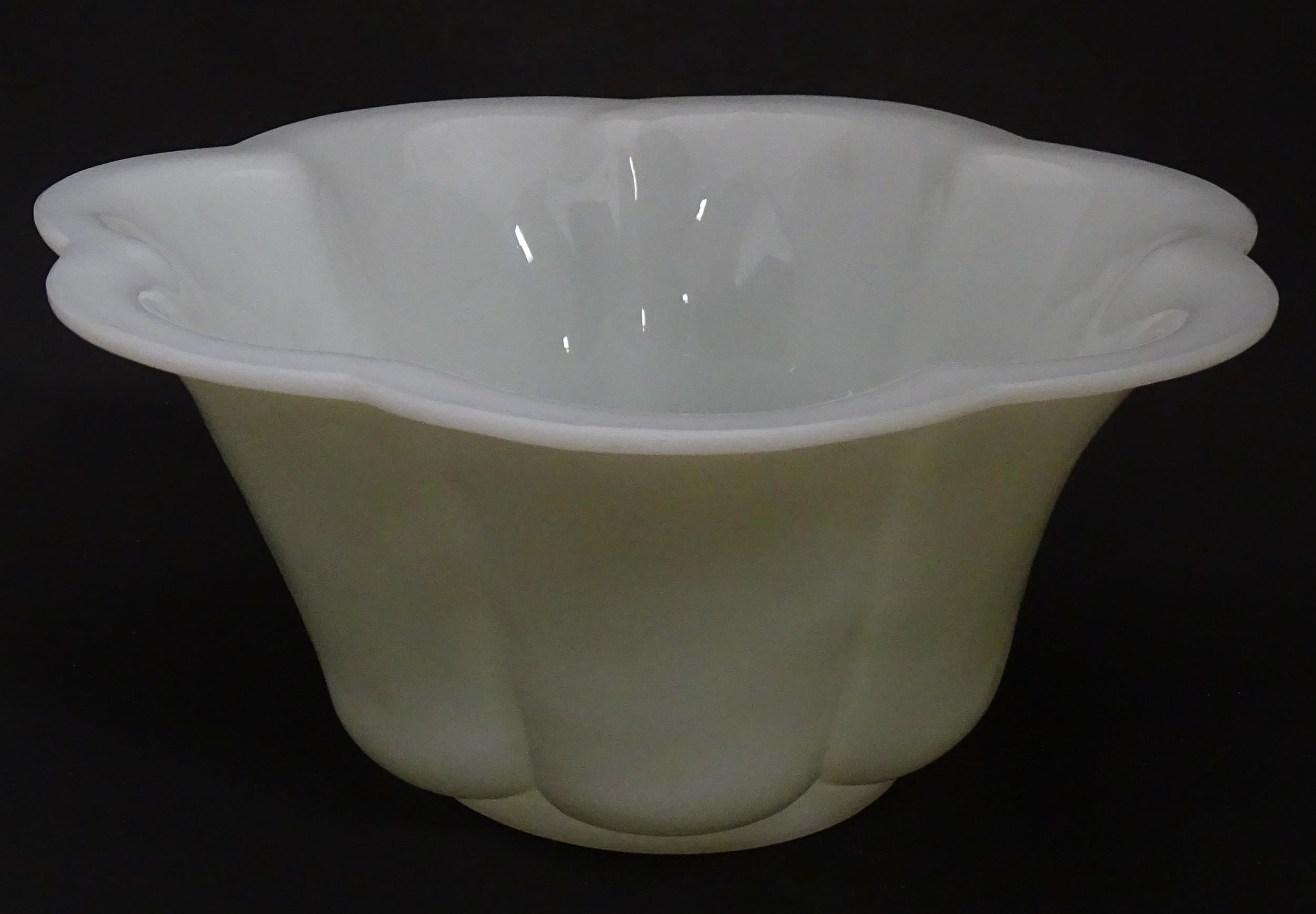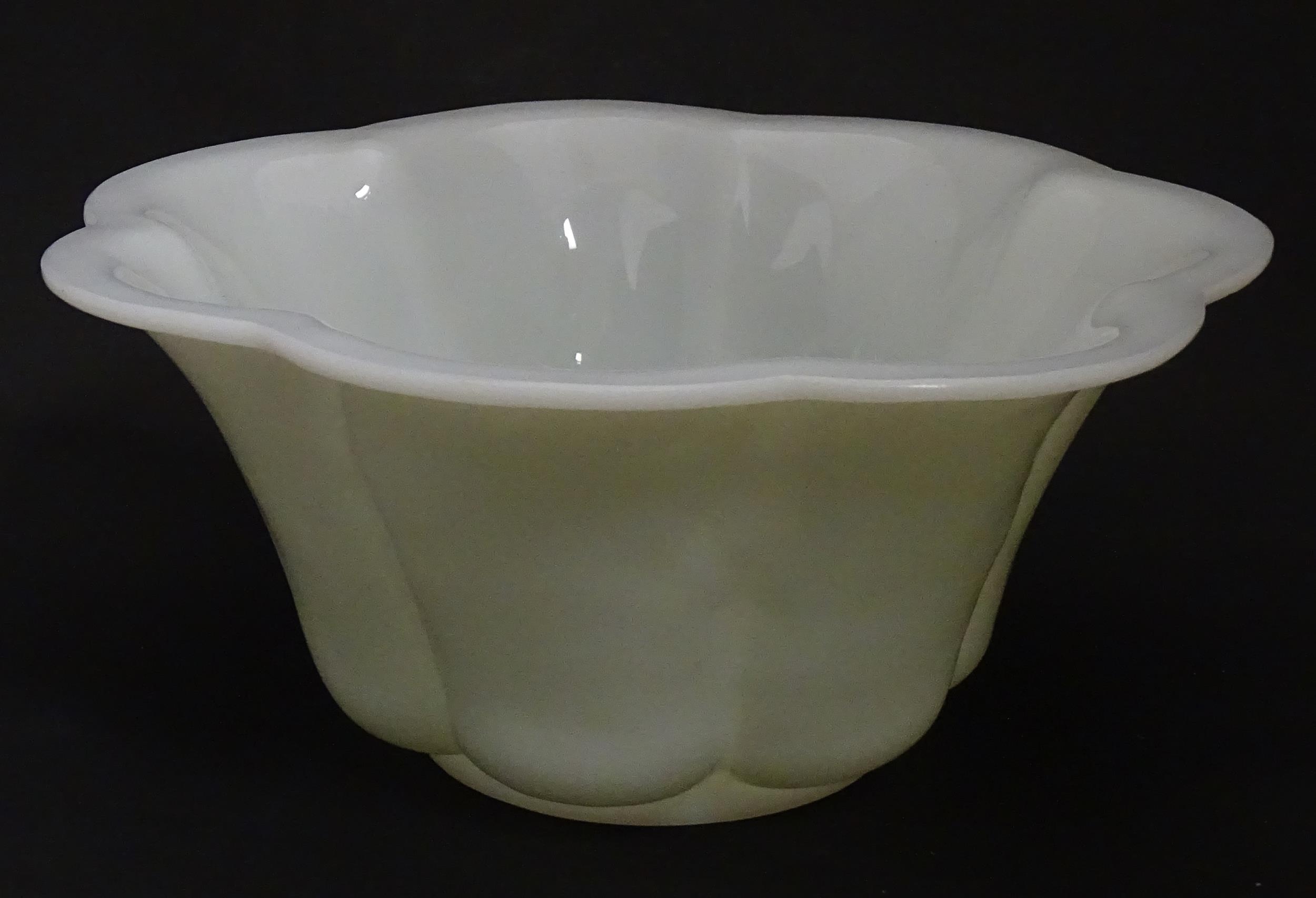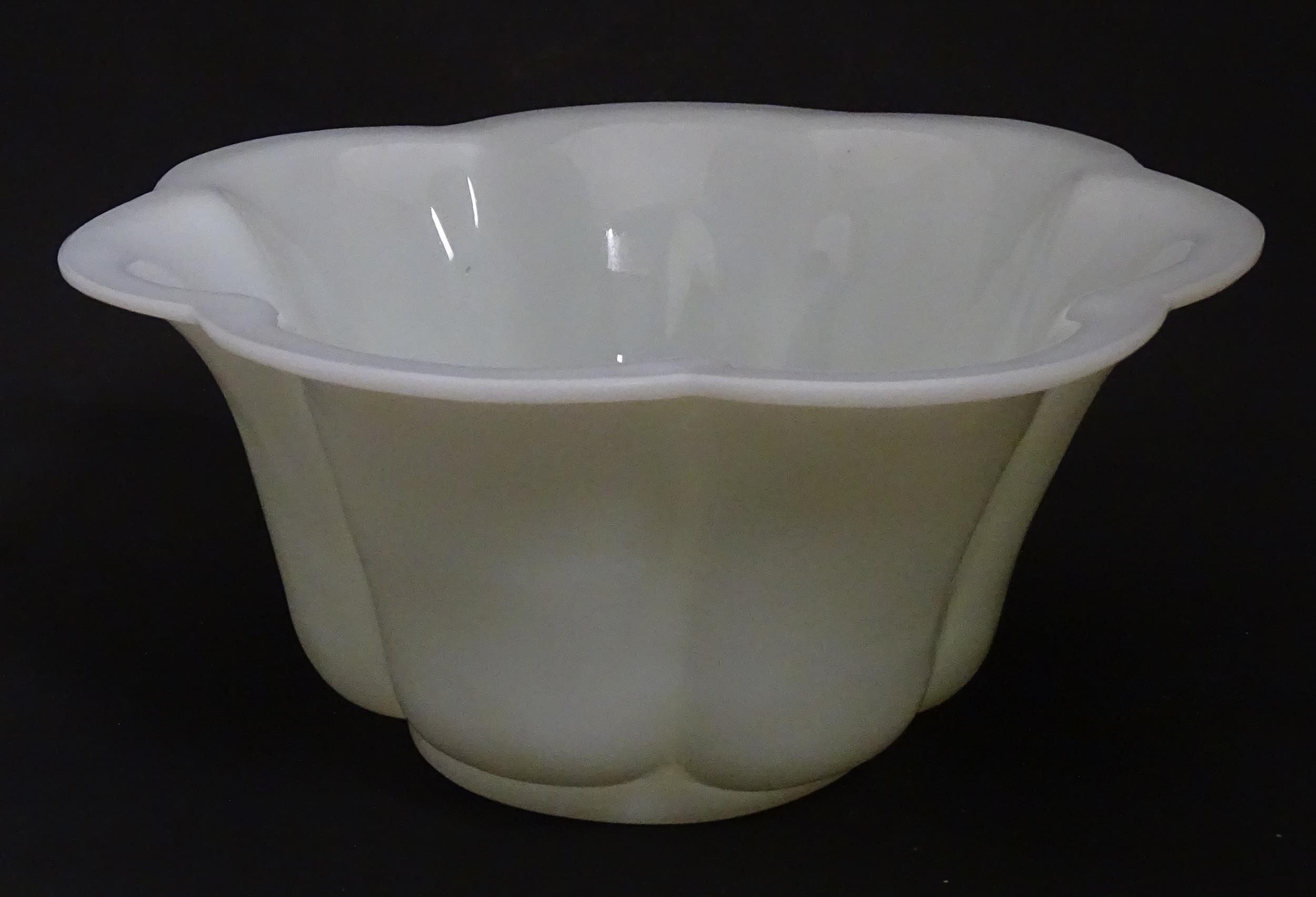 A Chinese Peking glass bowl of lobed flower form. Approx. 10 1/4" wide