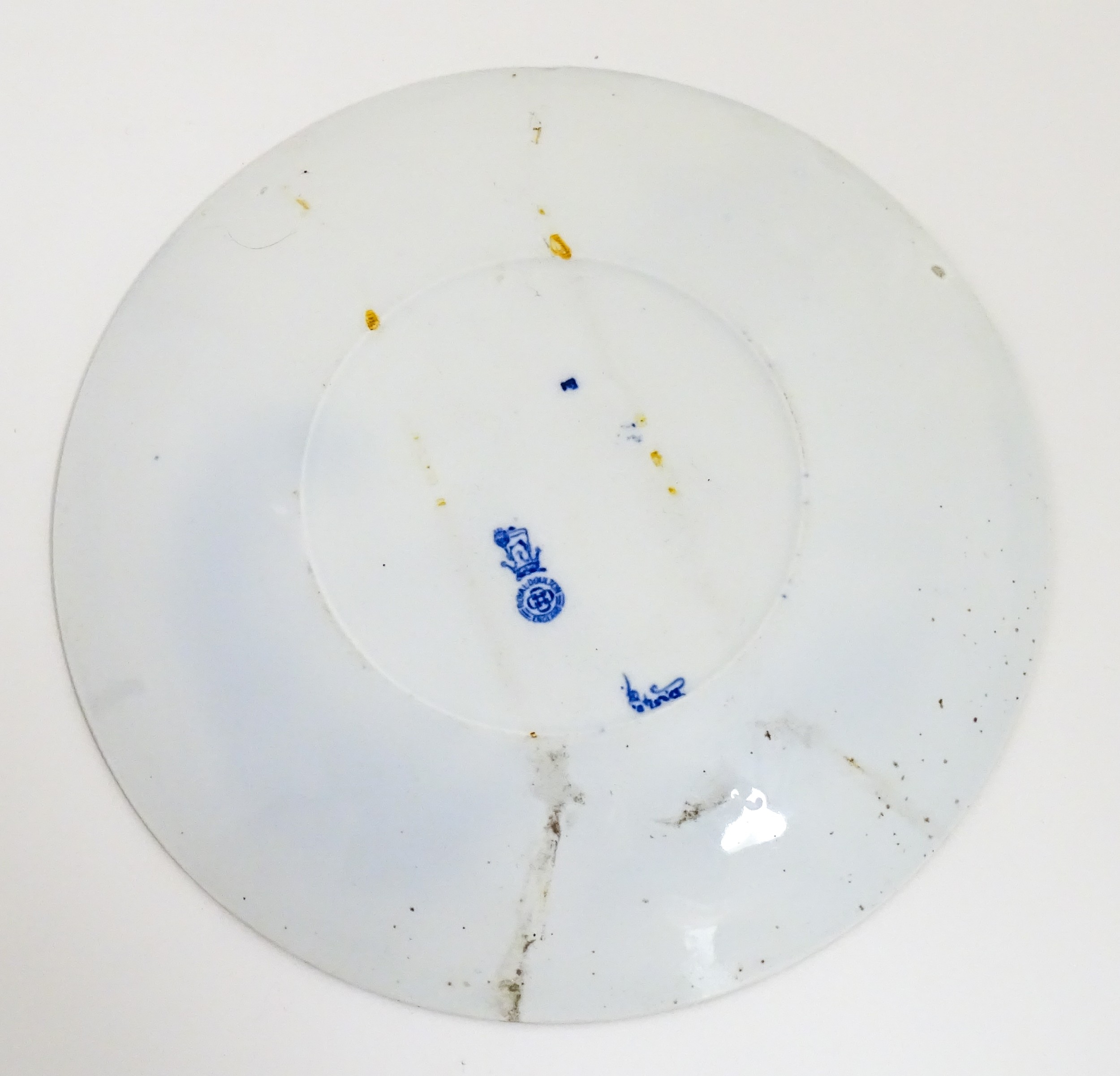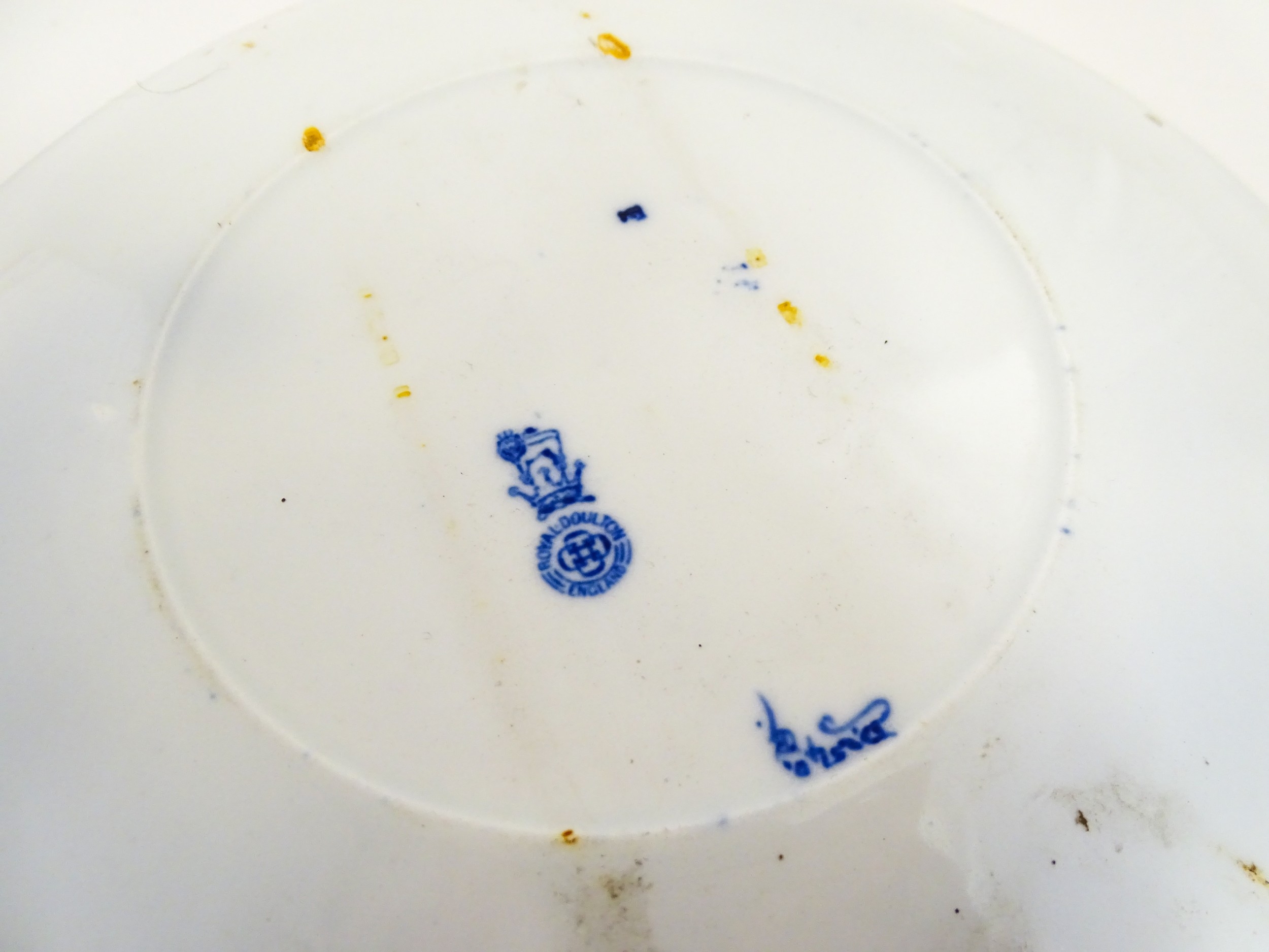 A Royal Doulton nursery rhyme plate decorated with the Pied Piper, designed by J. Ogden, c. 1906. Marked under. Approx. 9 1/4" diameter